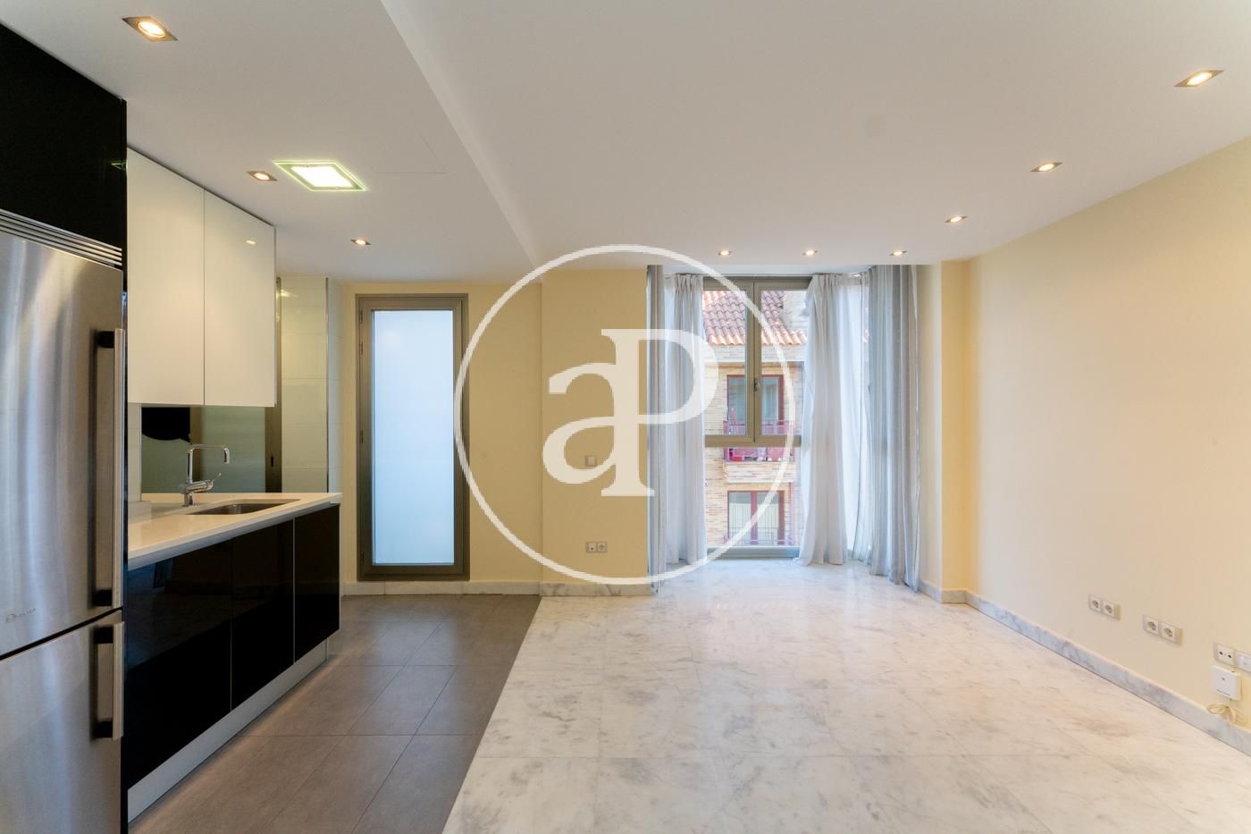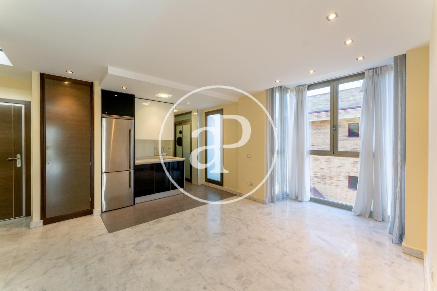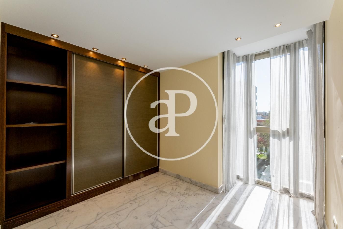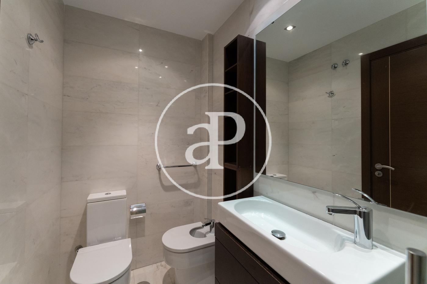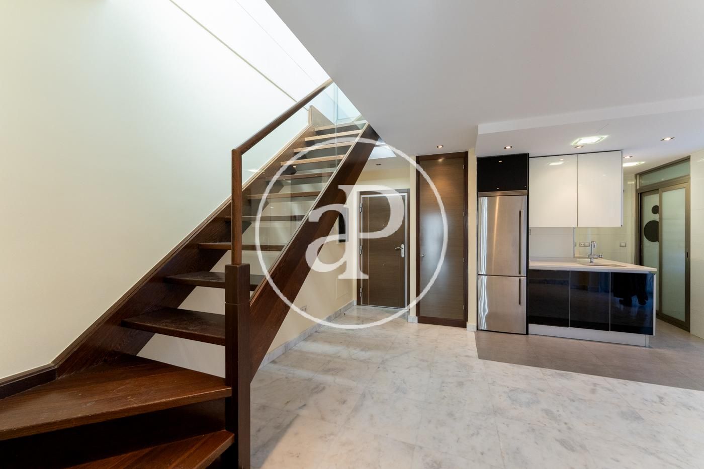 Ático reformado y soleado, totalmente exterior. Todos los metros de la vivienda son aprovechables. Consta de cocina moderna con electrodomésticos marca NEFF y encimera de Silestone, integrada en salón-comedor, zona de lavadora-tendedero, dormitorio principal con cuarto de baño en suite alicatado en mármol y ducha con hidromasaje y un dormitorio secundario para cama individual o despacho. Además consta de otro baño completo con ducha. En la parte superior dispone de una espectacular terraza privada de 40 metros con jacuzzi y solarium a la que se accede por el interior de la vivienda. Máximas calidades: Suelo de mármol en toda la vivienda, ventanas de aluminio anodizado, con rotura puente térmico y oscilo batientes con cristal climalit, calefacción individual por suelo radiante y Puerta principal acorazada. Incluye trastero y una plaza de garage