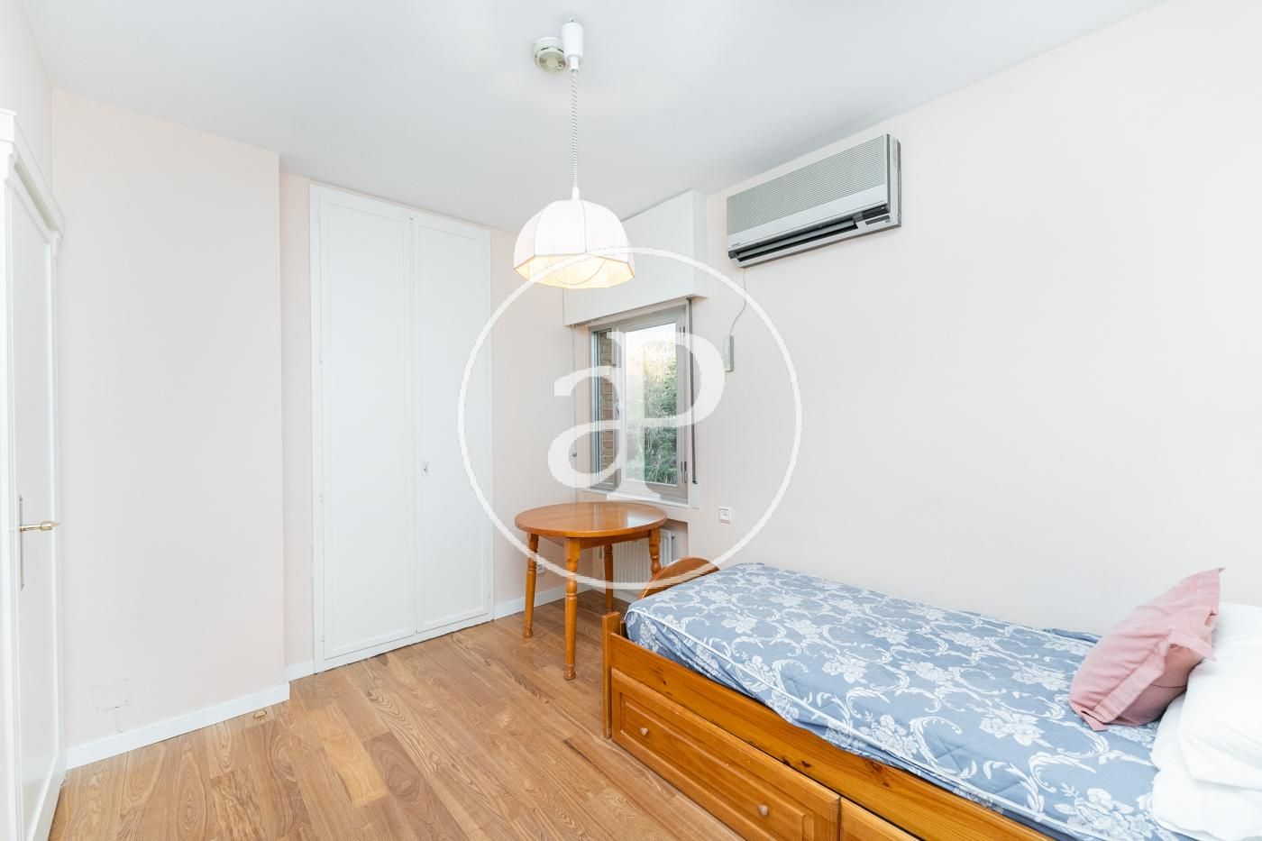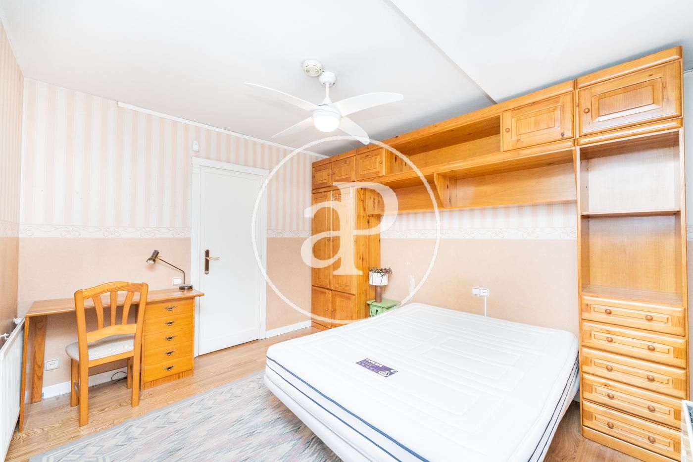 Vivienda en alquiler amueblada en Arturo Soria de 5 habitaciones, 4 baños(dos de ellos a estrenar). Calefaccion central y agua incluidas en el precio. La vivienda se divide en hall de entrada, 3 luminosos salones y 2 dos de ellos conectados, pasillo distribuidor con varios armarios empotrados y aseo de cortesía para invitados, amplia cocina independiente completamente equipada con placa, horno y nevera nuevos, zona de aguas y 2 cuartos a modo despensa. La zona de noche se encuentra con 5 habitaciones todas ellas exteriores con armarios empotrados, 2 de ellas con baño en suite y otros 2 baños a compartir. La vivienda consta con aire acondicionado por conductos en las estancias comunes y split individual en cada dormitorio. La vivienda consta de dos plazas de aparcamiento y de trastero.
