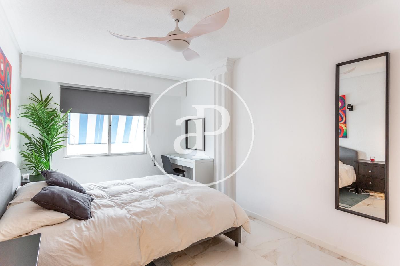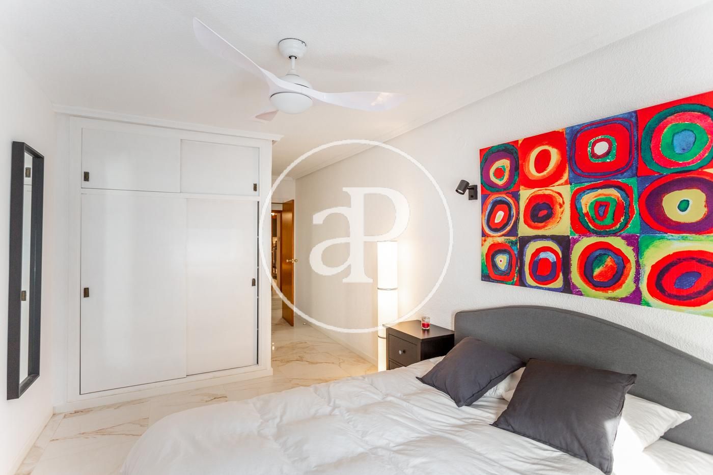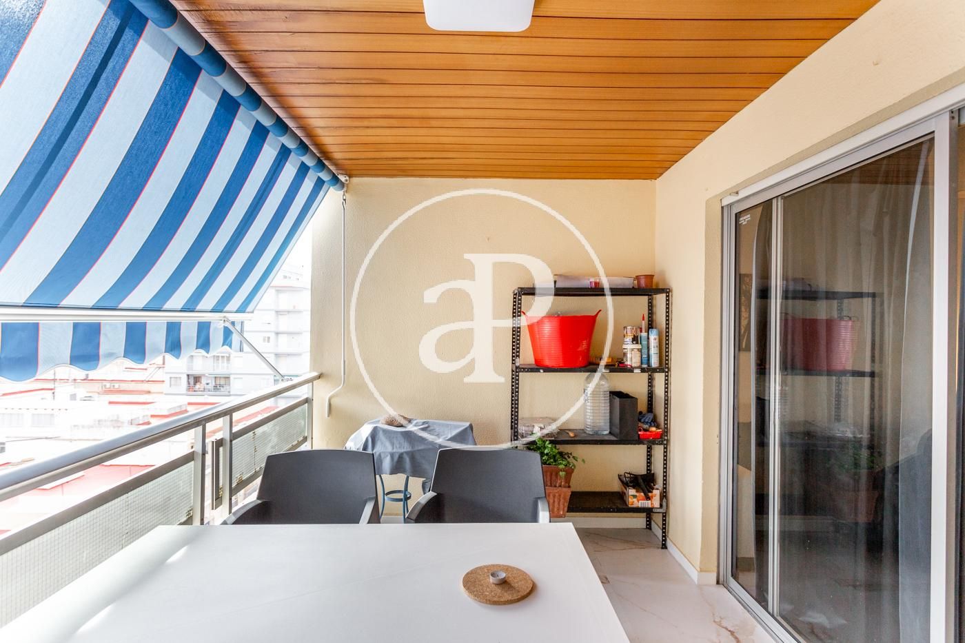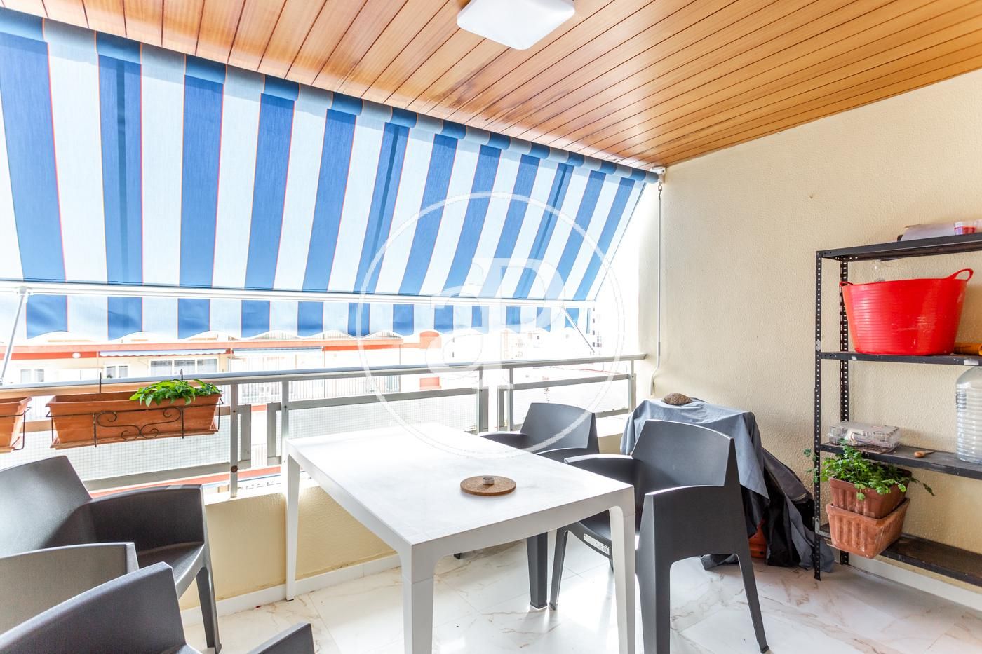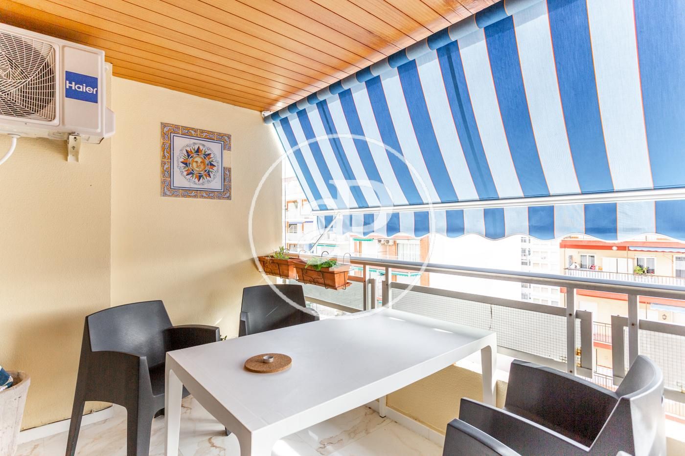 El piso cuenta con ventiladores de techo, suelos de mármol, toldos nuevos, armarios empotrados, cámara de seguridad, puerta blindada, etc.