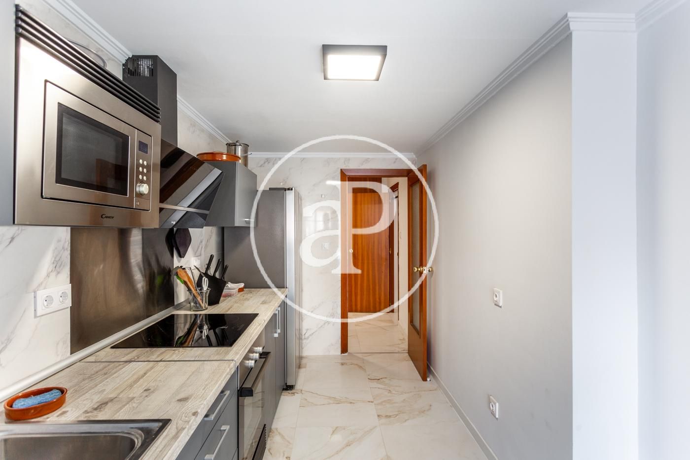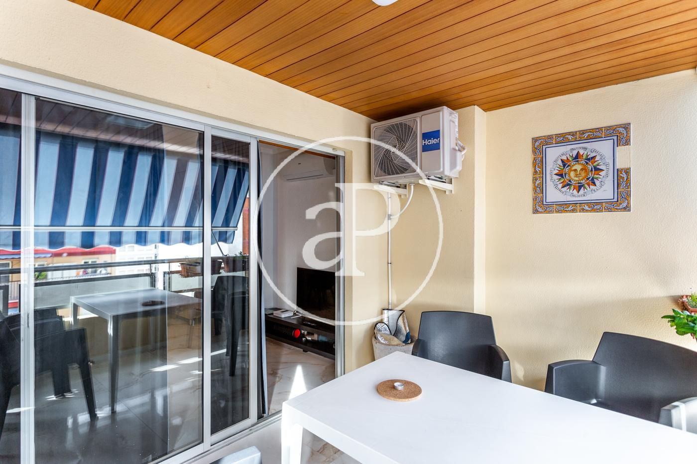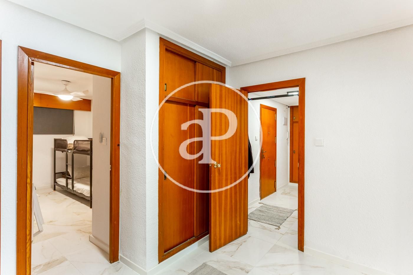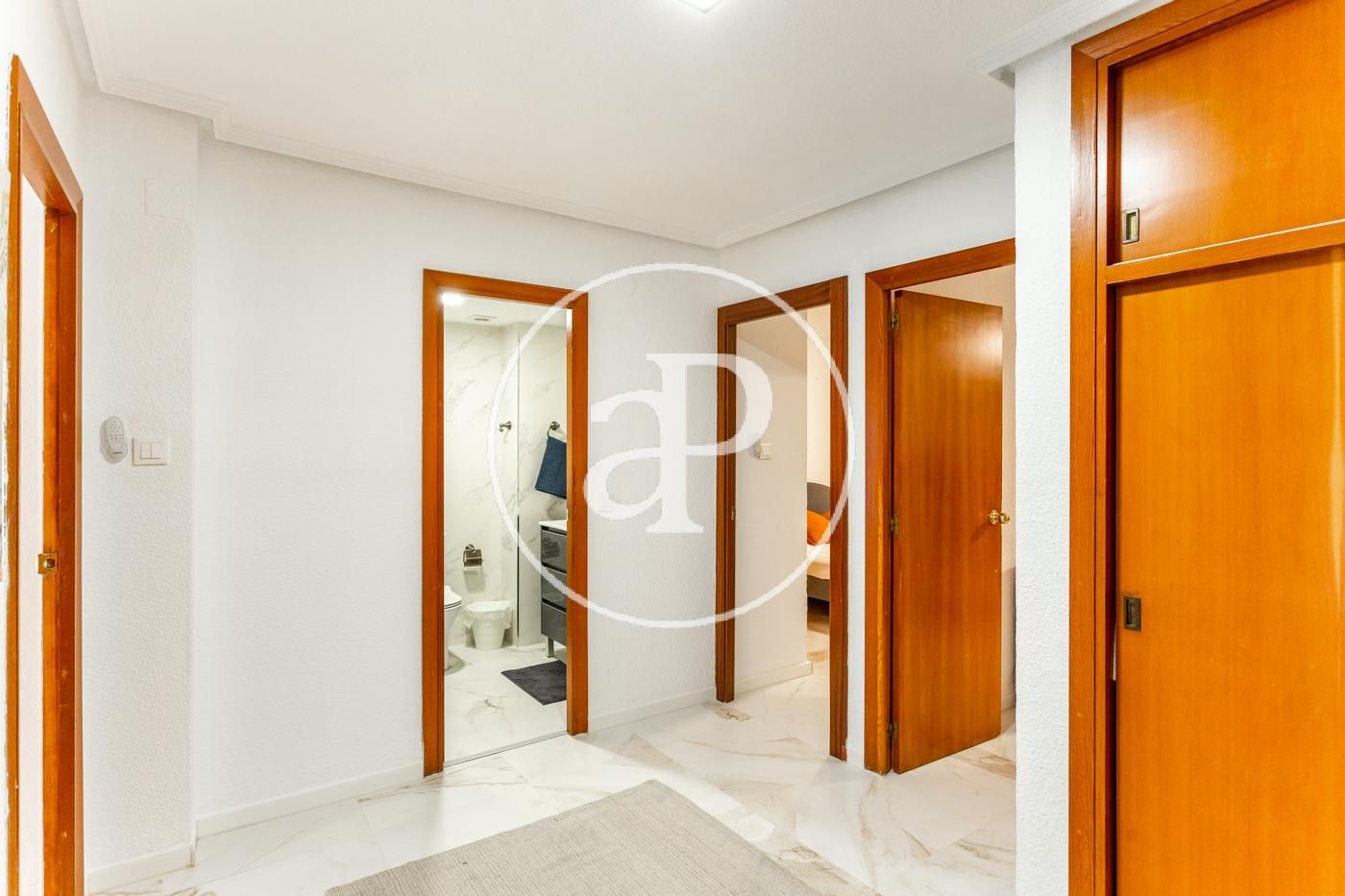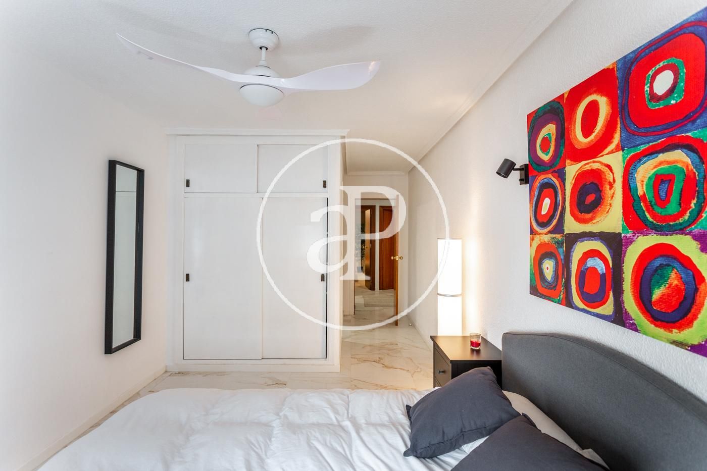 El piso cuenta con ventiladores de techo, suelos de mármol, toldos nuevos, armarios empotrados, cámara de seguridad, puerta blindada, etc.