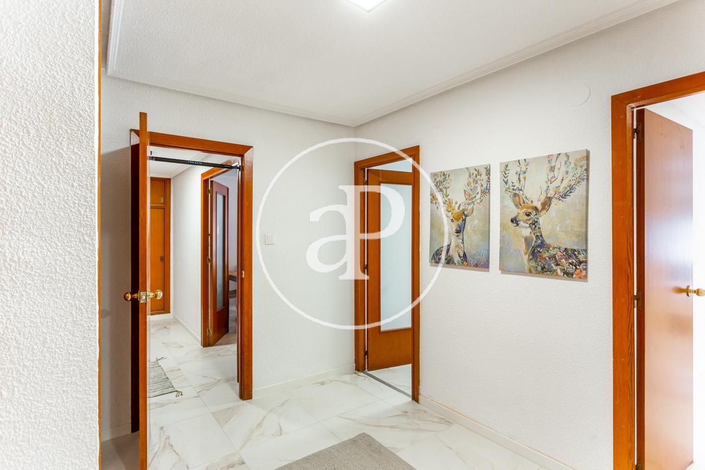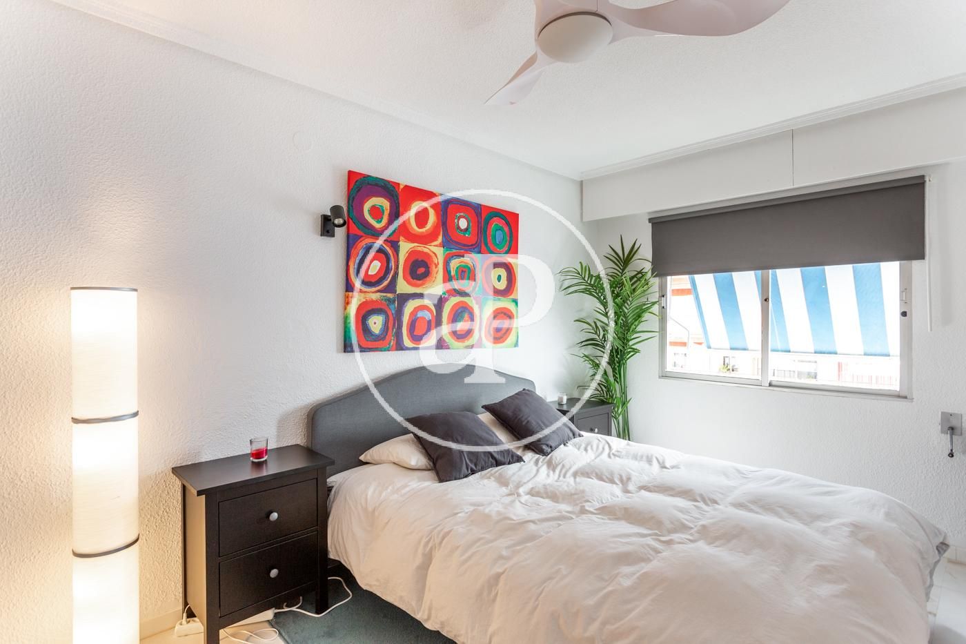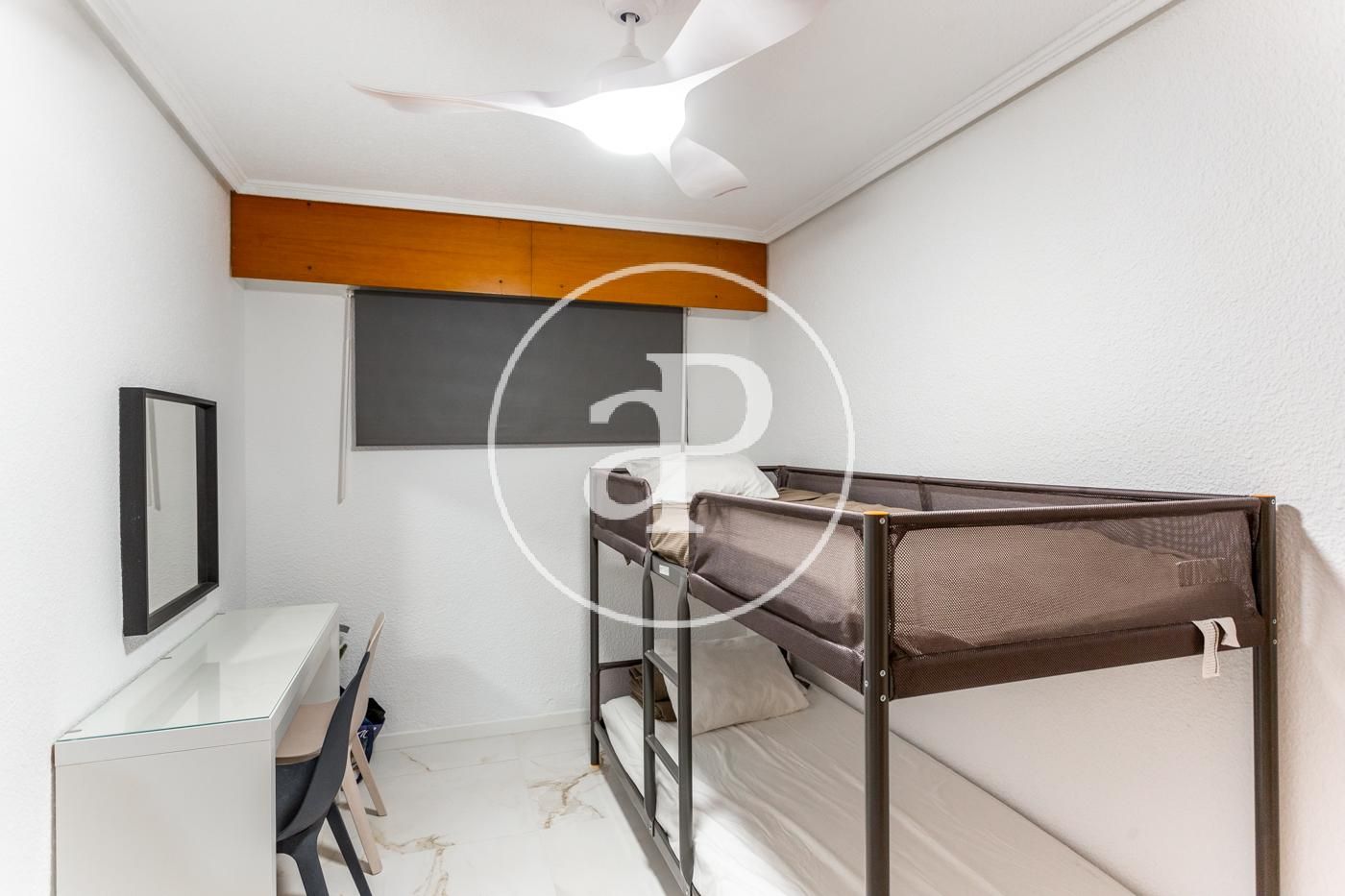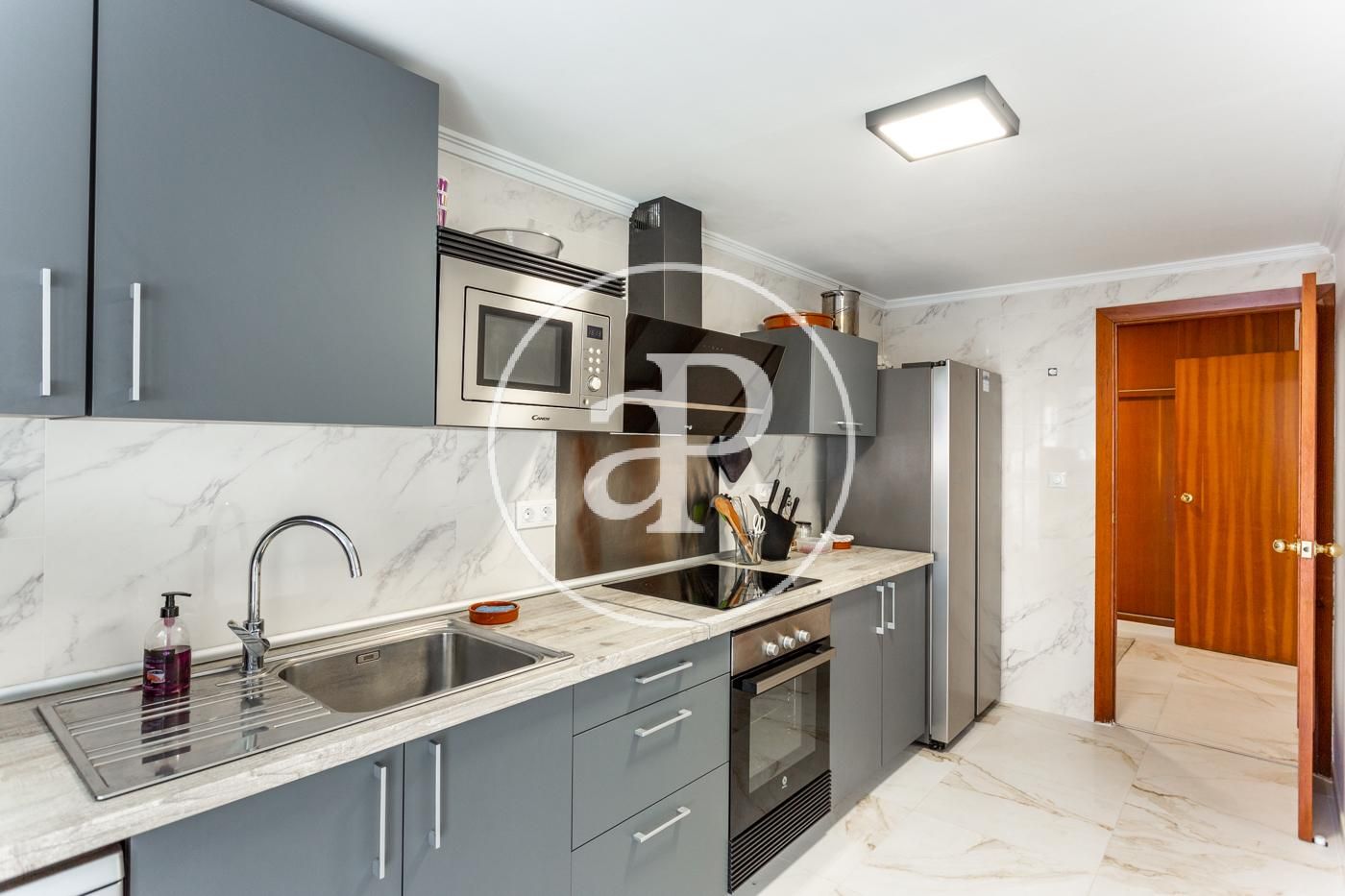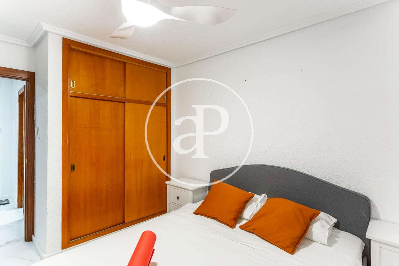 El piso cuenta con ventiladores de techo, suelos de mármol, toldos nuevos, armarios empotrados, cámara de seguridad, puerta blindada, etc.