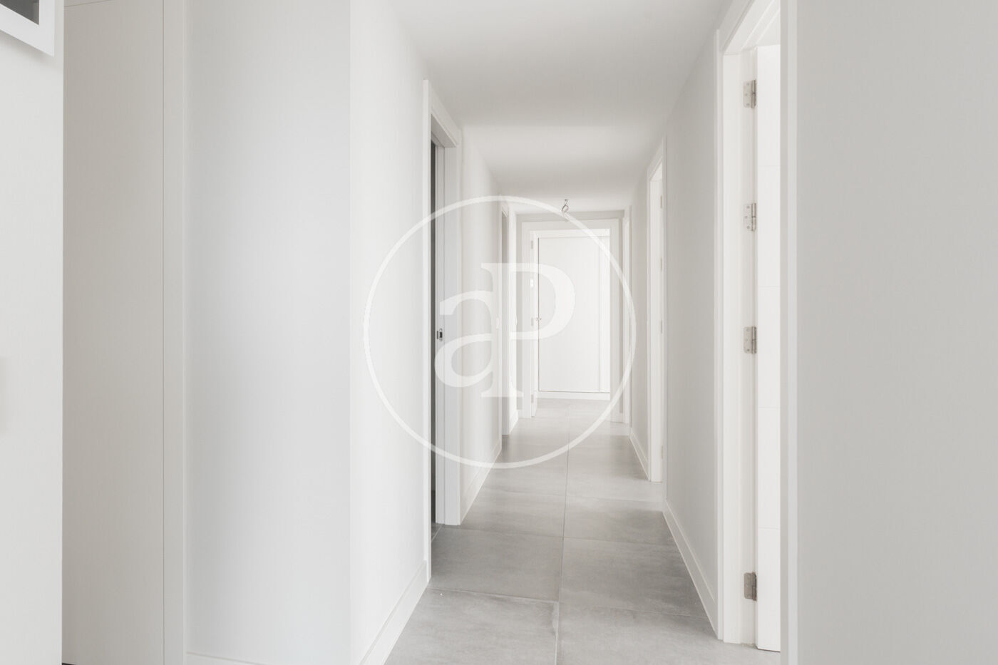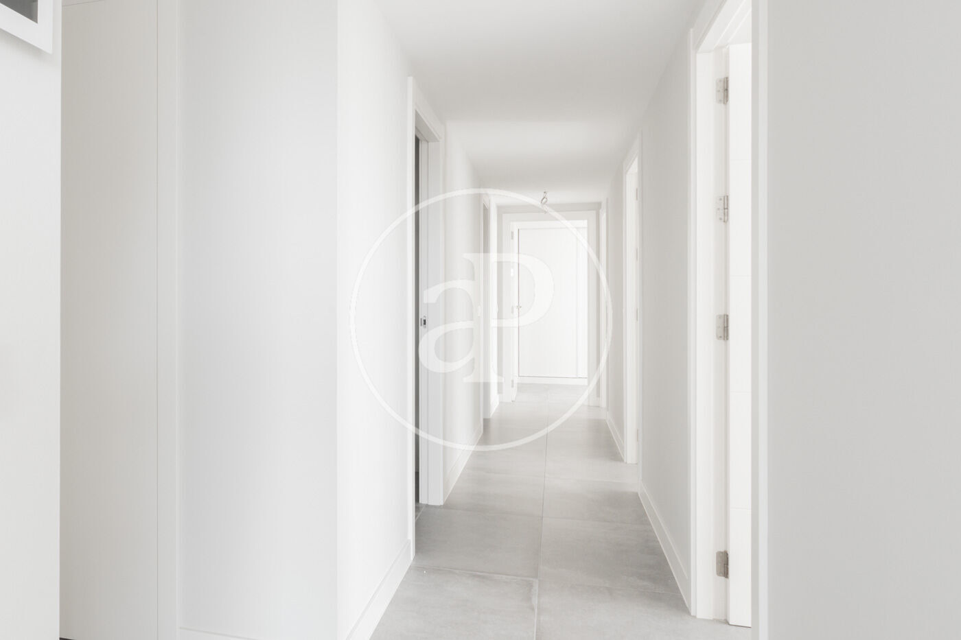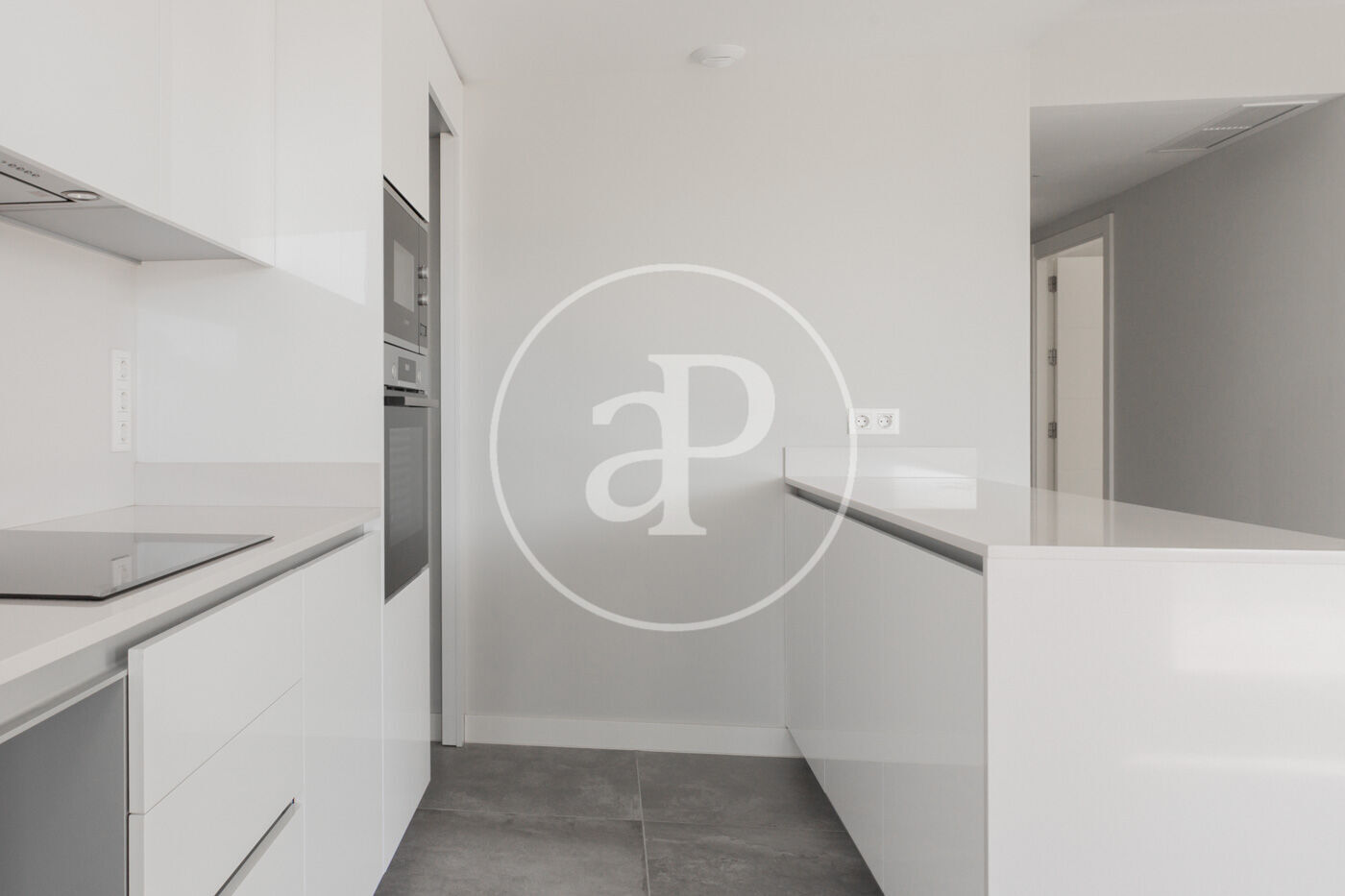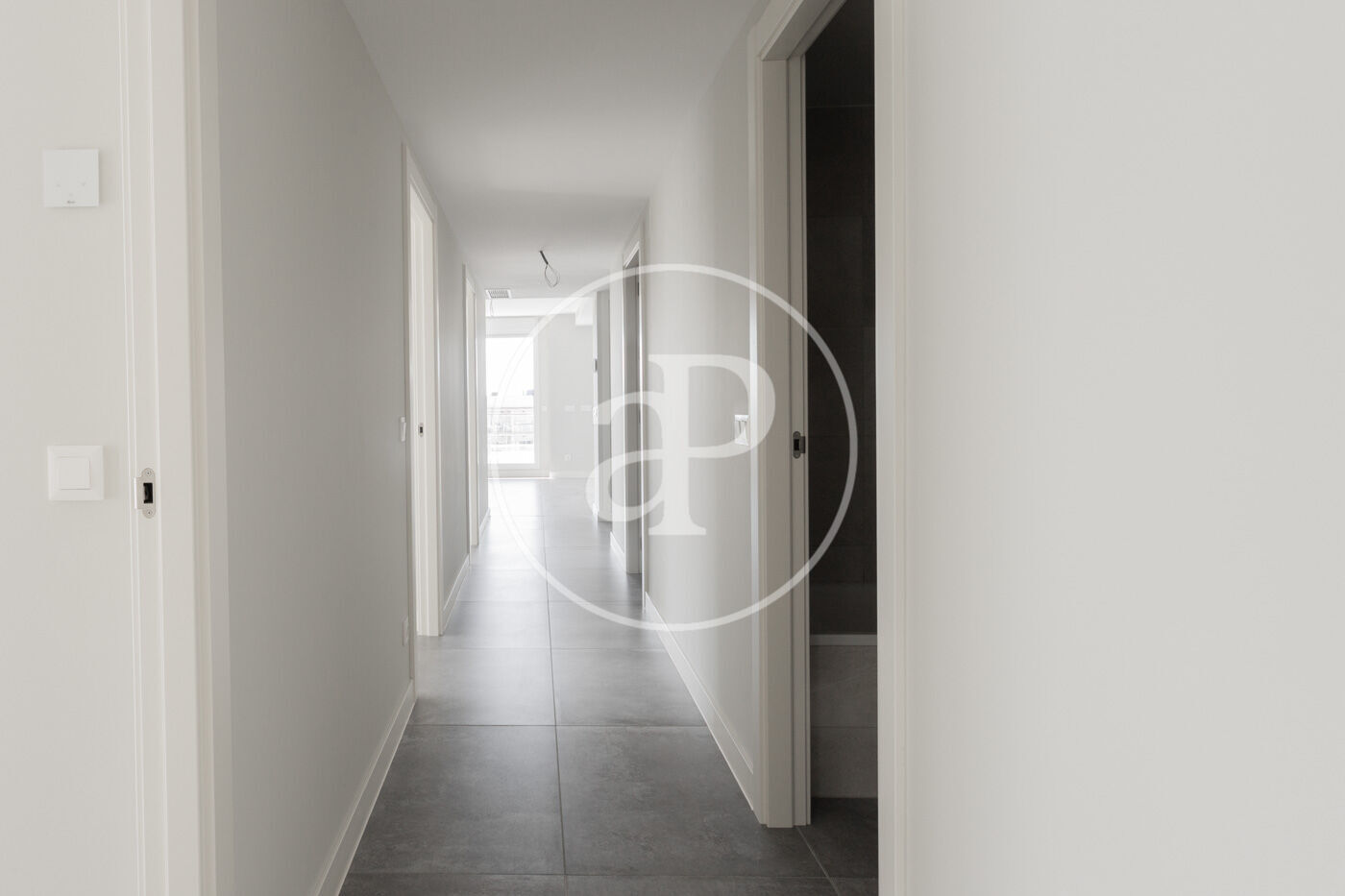aProperties freut sich, diese großzügige und helle Wohnung im Wohnkomplex Marina Alta im Stadtteil Sant Pau (Campanar), Valencia, vorstellen zu dürfen. Die Wohnung verfügt über 180 m² Wohnfläche (204 m² inklusive Gemeinschaftsflächen). Der quadratische und funktionale Grundriss trennt den Tages- und Nachtbereich auf praktische Weise, was Komfort und eine optimale Raumausnutzung gewährleistet. Im Tagesbereich befindet sich ein geräumiges und sehr helles Wohn-Esszimmer mit Zugang zu einer Terrasse mit Blick auf den Pool und die Gartenanlagen. Die separate Küche ist mit hochwertigen Elektrogeräten ausgestattet, verfügt über einen Essbereich und ein Gäste-WC. Vom Flur aus gelangt man in den Nachtbereich mit fünf Schlafzimmern, alle mit Einbauschränken, eines davon mit Balkon, sowie zwei voll ausgestatteten Badezimmern, eines davon en suite im Hauptschlafzimmer. Marmorböden, eine Klimaanlage mit Luftkanälen, eine Heizung über Erdgas-Radiatoren und massive Holzinnentüren sorgen für ein hohes Maß an Komfort. Im Preis enthalten sind ein großer Garagenstellplatz und ein Abstellraum, mit der Möglichkeit, einen zweiten Stellplatz zu erwerben. Das Gebäude bietet einen Concierge-Service, 24-Stunden-Videoüberwachung, einen Gemeinschaftspool, Grünflächen und einen Kinderspielplatz – ein komfortables und sicheres Wohnumfeld. Die Lage verfügt über eine hervorragende Anbindung an Metro und Bus, mit der Haltestelle Beniferri nur wenige Minuten entfernt. In der Umgebung befinden sich Supermärkte, Schulen, Restaurants, Apotheken, Kindergärten sowie das Arnau-de-Vilanova-Krankenhaus, das Kongresszentrum, das Casino Cirsa und große Grünflächen wie der Parc de la Cabecera und die Jardines del Turia. Es ist eine praktische, gut angebundene Lage mit allen notwendigen Dienstleistungen für den Alltag. Eine helle, geräumige und gut geschnittene Wohnung, ideal für Familien oder als Investition in einer etablierten Gegend von Valencia. Wenn Sie weitere Informationen wünschen oder einen Besichtigungstermin vereinbaren möchten, kontaktieren Sie uns bitte.