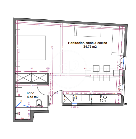 Wohnung möbliert von 44 m2 Im Großraum von El Born, Barcelona.