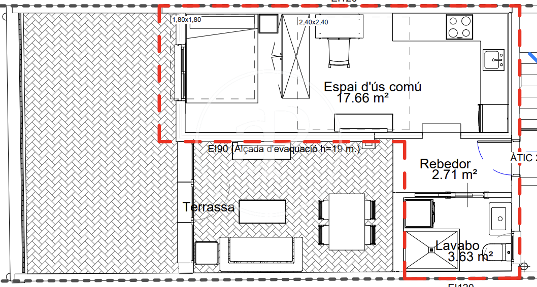 Penthauswohnung möbliert von 45 m2 mit Terrasse von 18m2 und Ausblicke Im Großraum von El Poble Sec, Barcelona.