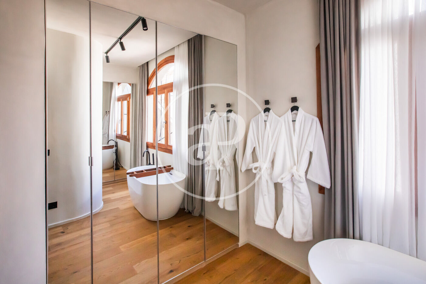 Zimmer, 1 Badezimmer, Klimaanlage, Einbauschränke, Balkon und Heizung.