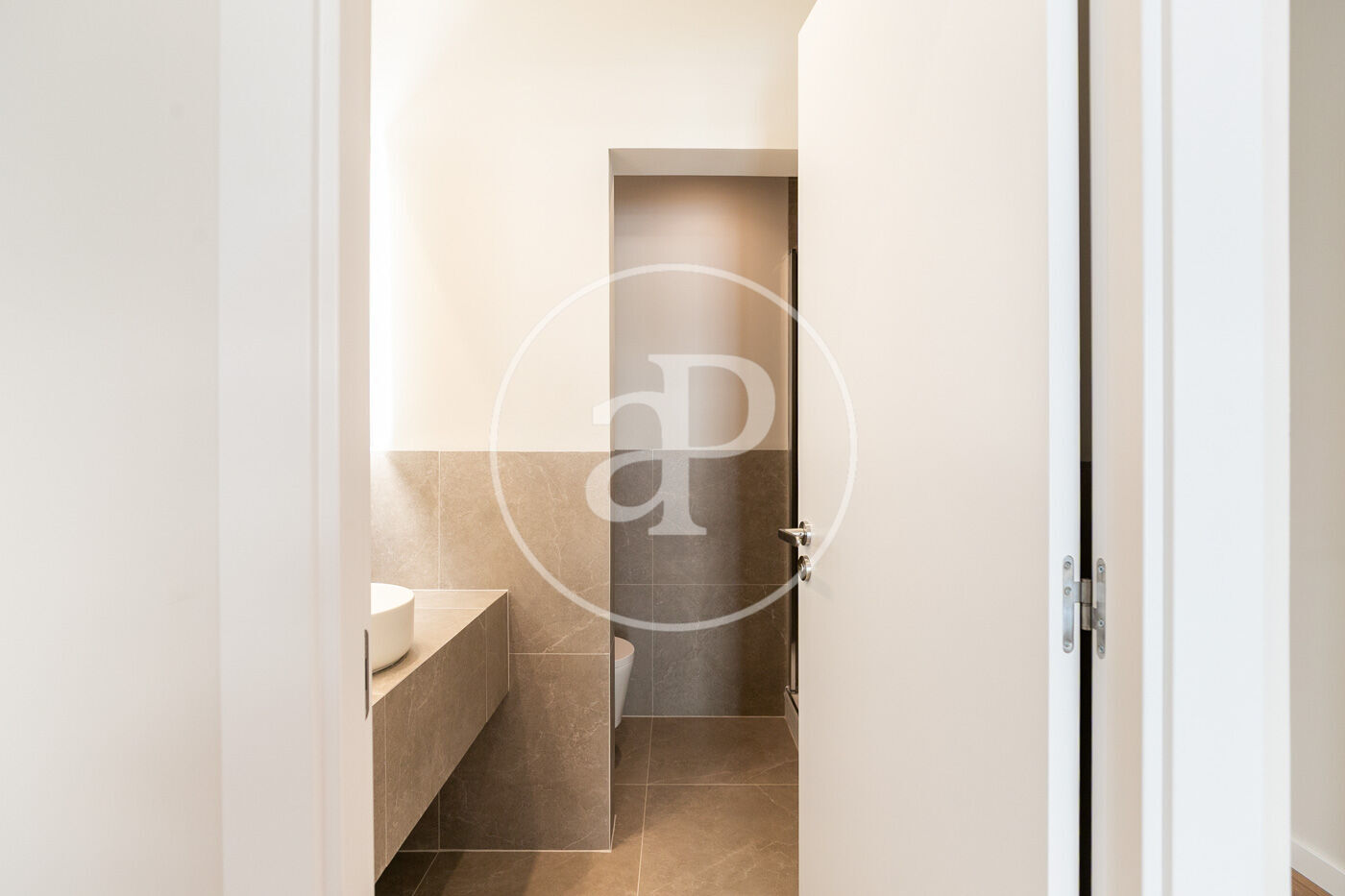 Verpassen Sie nicht diese spektakuläre, komplett renovierte Wohnung, gelegen in einem hohen Stockwerk eines klassischen Gebäudes im begehrten Stadtteil Eixample in Barcelona. Ein echtes Juwel, das zeitgenössisches Design perfekt mit dem zeitlosen Charakter der ursprünglichen Architektur der Gegend verbindet.