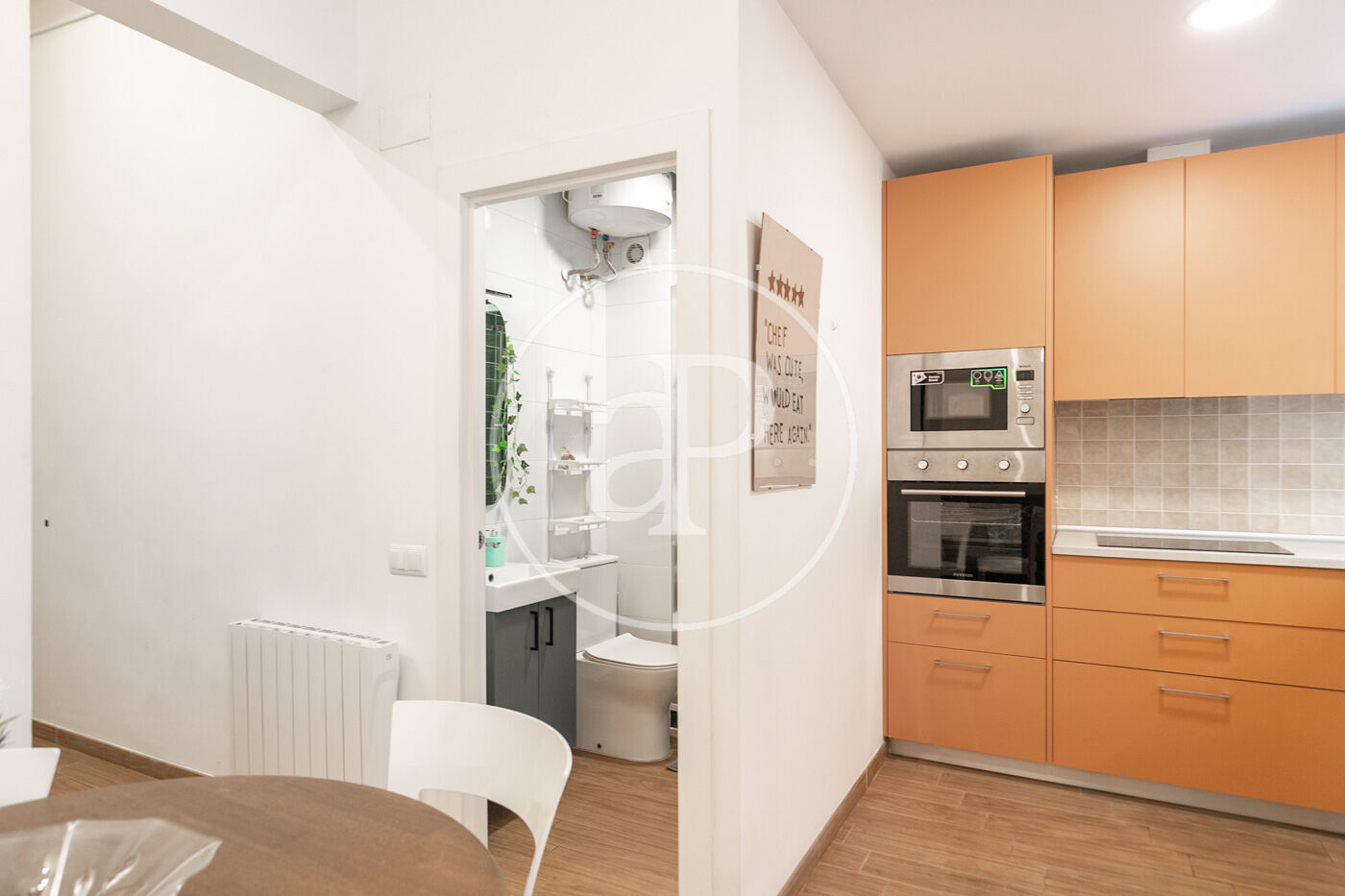Zimmer, 1 Badezimmer, Balkon und Heizung.