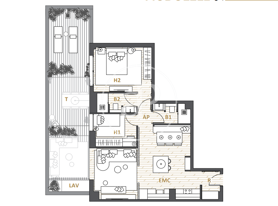 Bonito piso con terraza de 36m2 a estrenar con 2 habitaciones y 2 banos