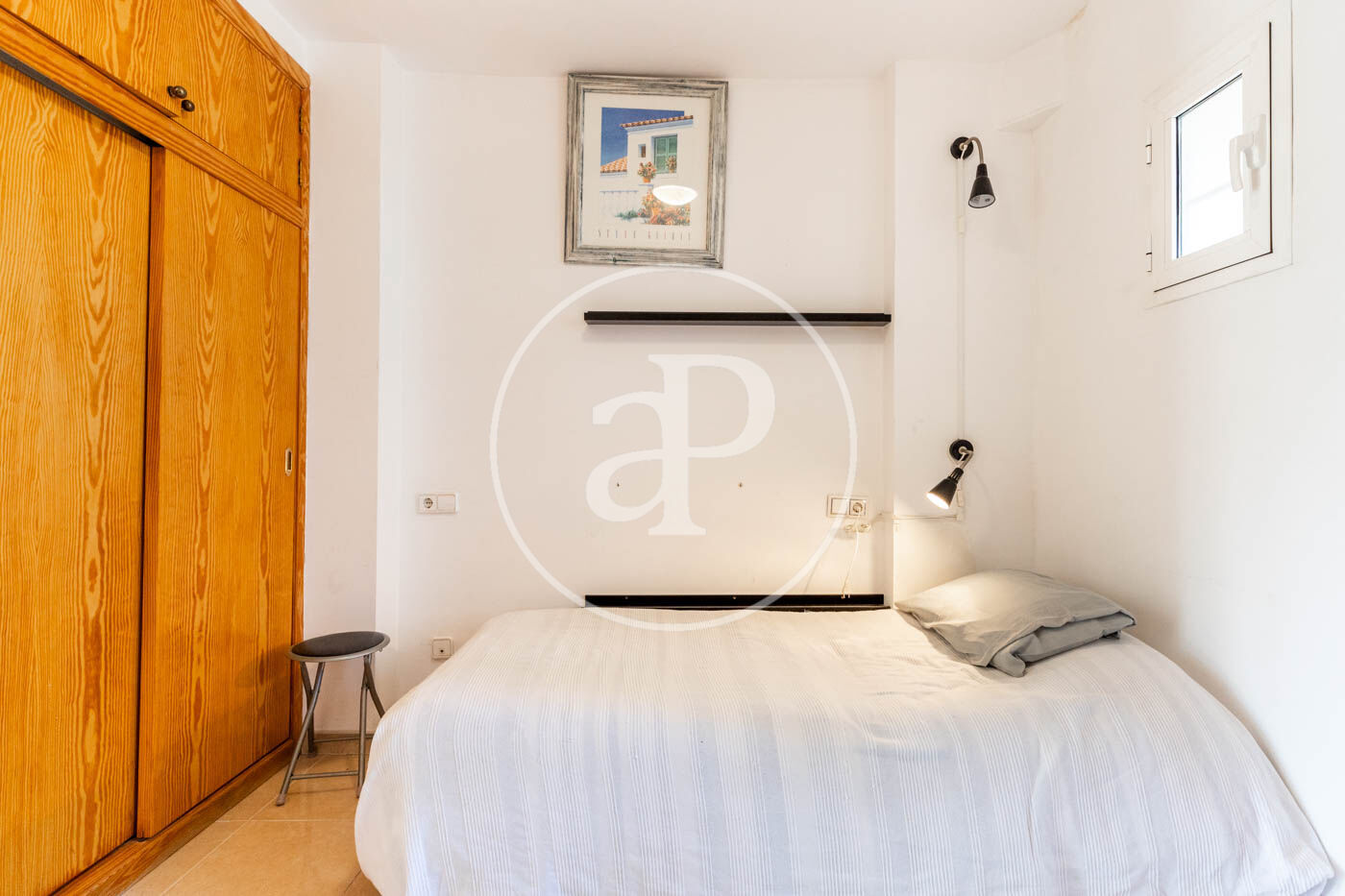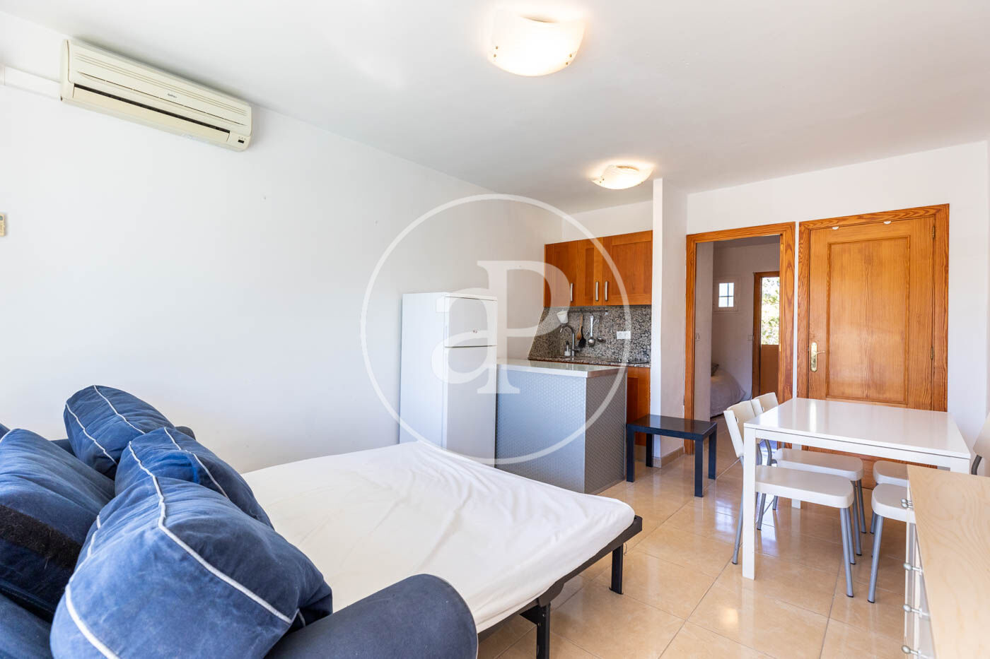Beim Betreten des Hauses haben wir Zugang zu einem Raum, in dem wir ein Einzelbett mit Einbauschrank und ein komplettes Bad mit Dusche finden. Das Wohn-Esszimmer ist sehr hell und geräumig und hat Zugang zu einer schönen Terrasse mit freiem Blick. Es verfügt über ein Schlafsofa für den Komfort der Mieter. Die offene Küche ist komplett eingerichtet und verfügt über eine Bar, die ideal für zwei Hocker ist. Im gleichen Wohnzimmer, in einem separaten Raum, befinden sich die Waschmaschine und der elektrische Boiler.