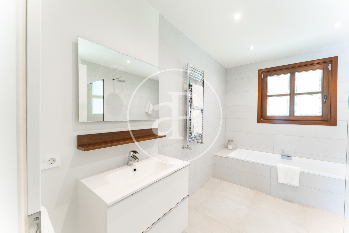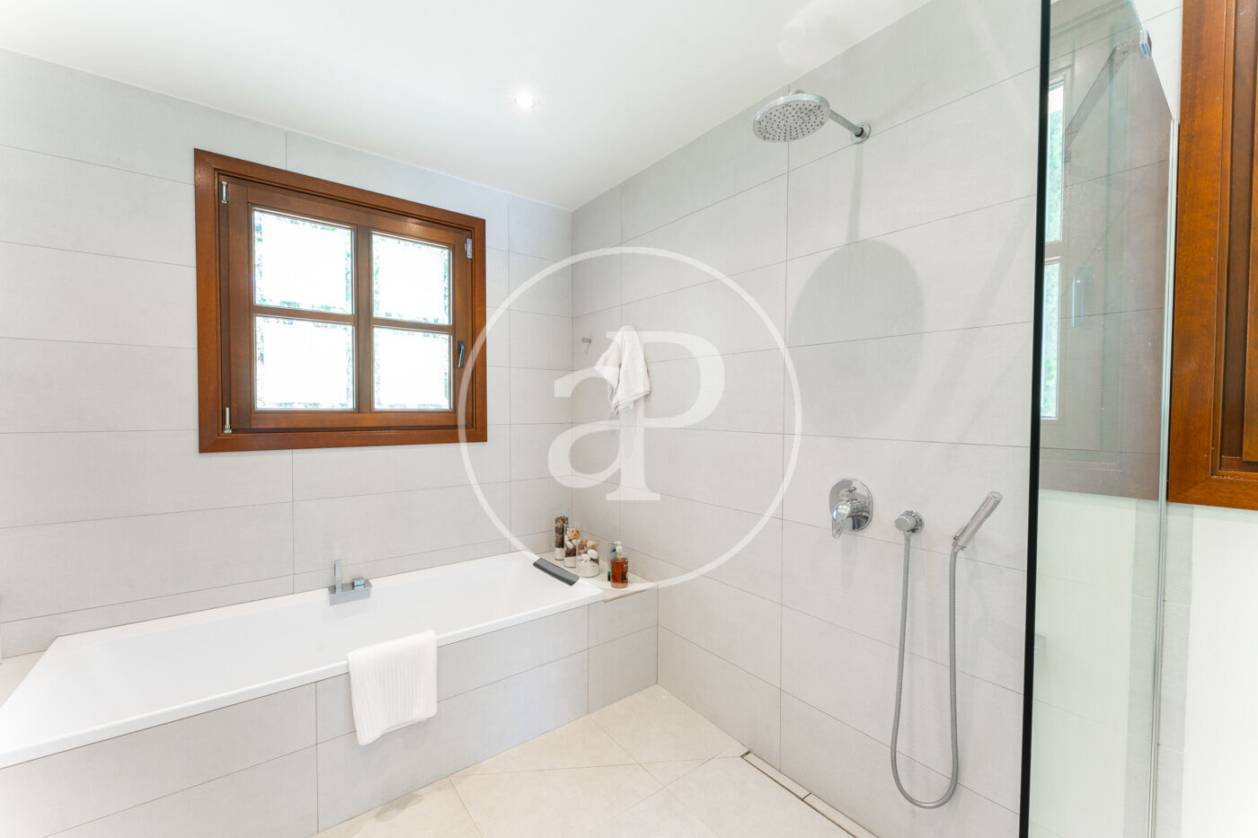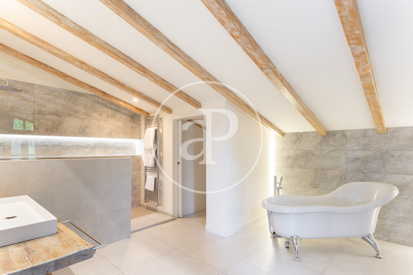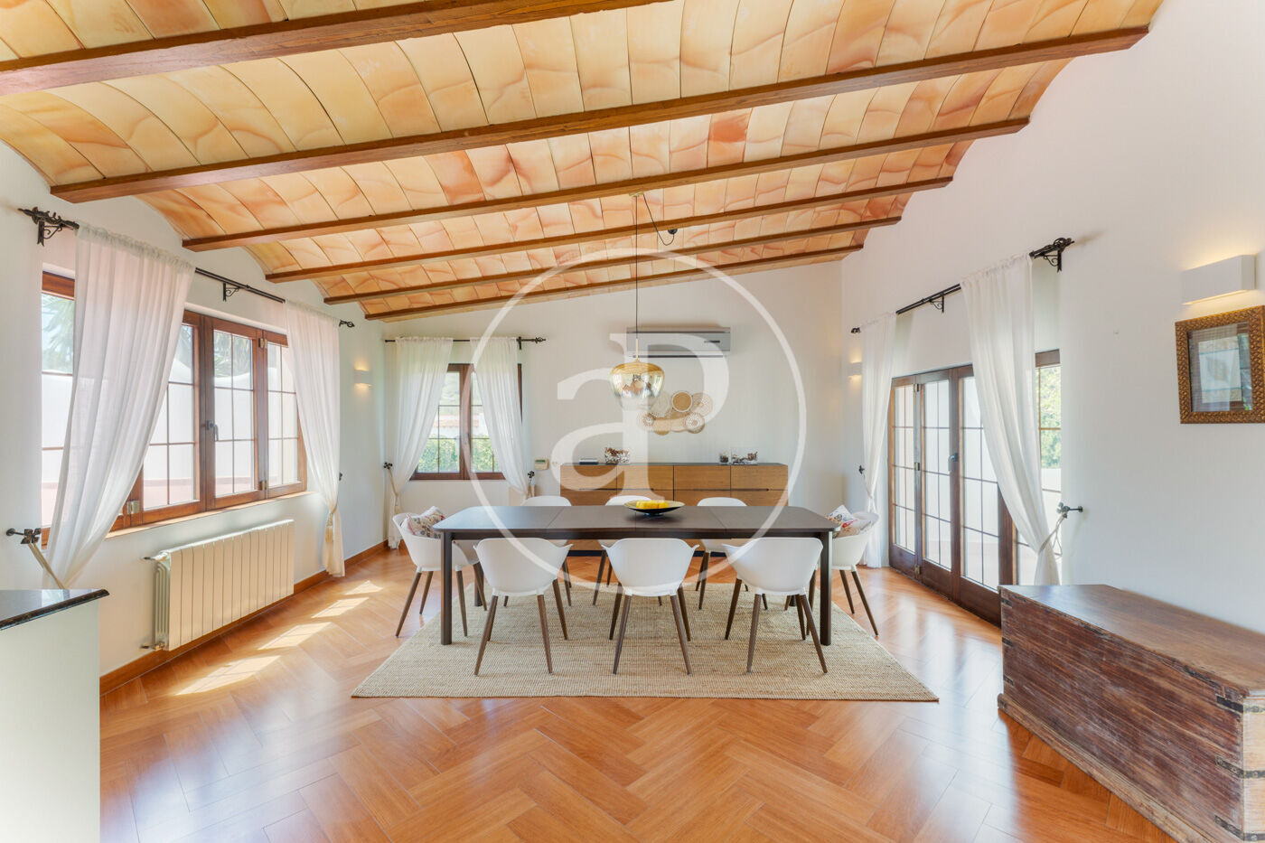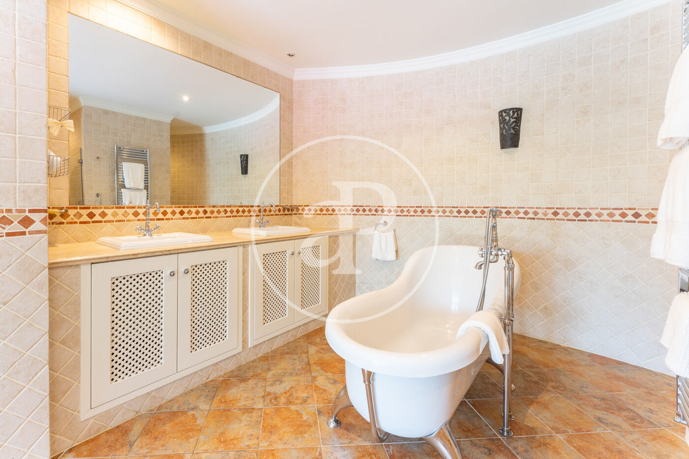 Treten Sie hinaus in Ihre persönliche Oase: ein 12 Meter langer, beheizter Swimmingpool und ein separater Whirlpool, umgeben von großzügigen Terrassen, mit Vorinstallation für eine komplette Außenküche, perfekt für Ihre Gäste. Eine private Garage sorgt für zusätzlichen Komfort, und das Haus ist komplett mit geschmackvollem Dekor ausgestattet.