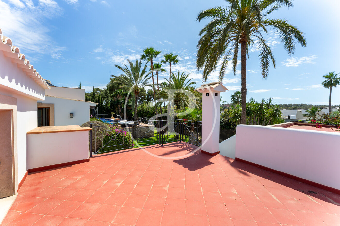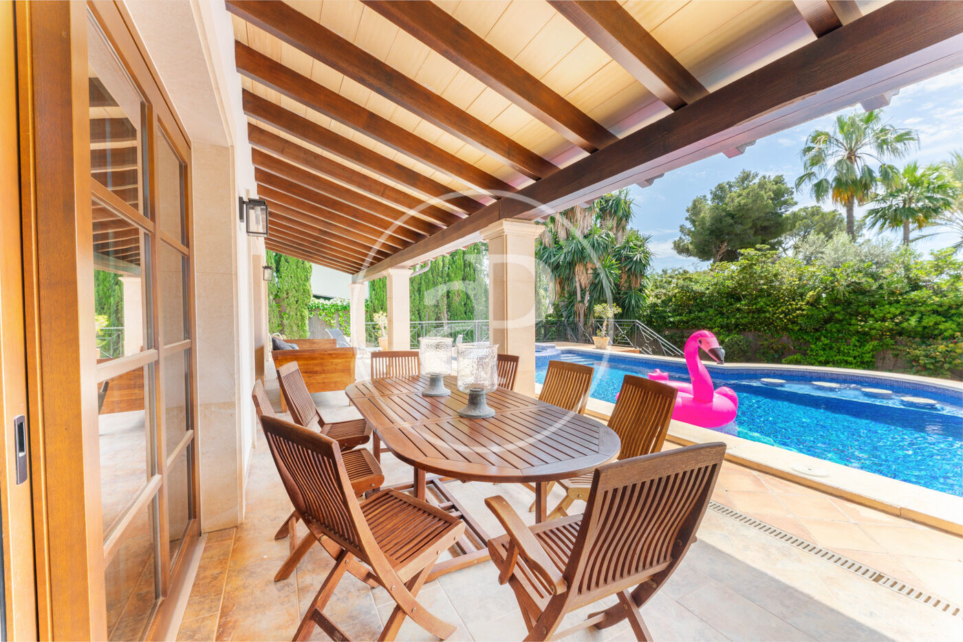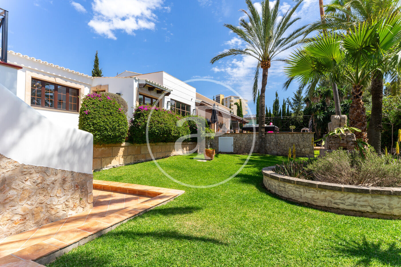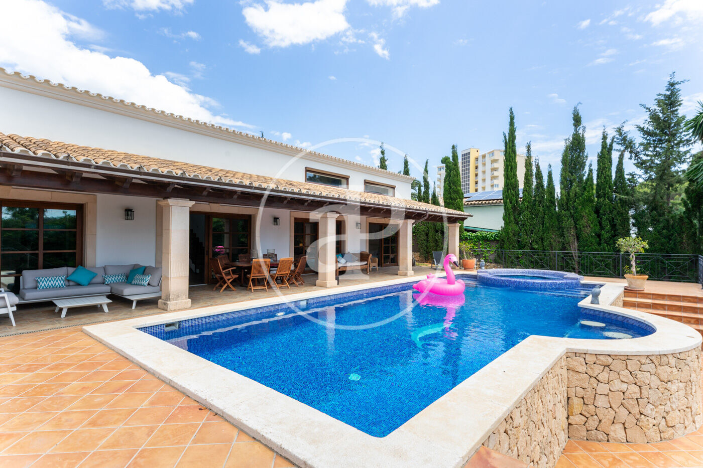 In der begehrten Küstenenklave Palmanova, die zur angesehenen Gemeinde Calvià gehört und nur wenige Minuten von Magaluf entfernt liegt, bietet dieses atemberaubende 751 Quadratmeter große Luxus-Familienhaus die perfekte Mischung aus Eleganz, Platz und modernem Komfort nur wenige Minuten vom Strand entfernt. Das 2008 renovierte Haus verfügt über fünf geräumige Schlafzimmer mit eigenem Bad, von denen jedes sorgfältig auf Privatsphäre und Entspannung ausgelegt ist. Das Hauptgeschoss verfügt über großzügige Wohnbereiche, darunter eine lichtdurchflutete, offene Küche und ein Essbereich sowie ein separates, formelles Wohnzimmer mit hohen Decken, die ein Gefühl von Erhabenheit vermitteln.