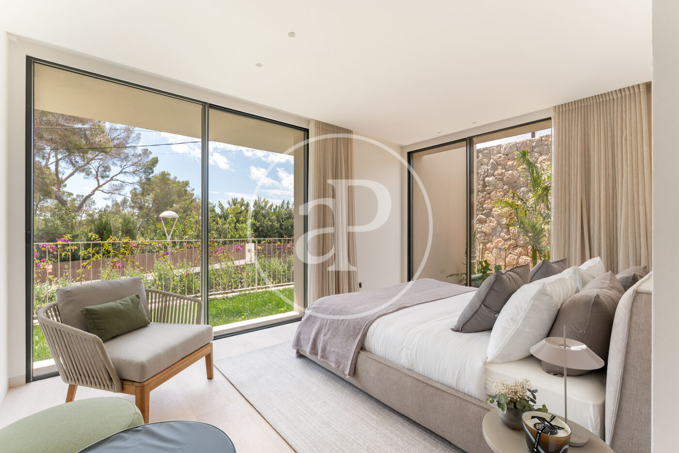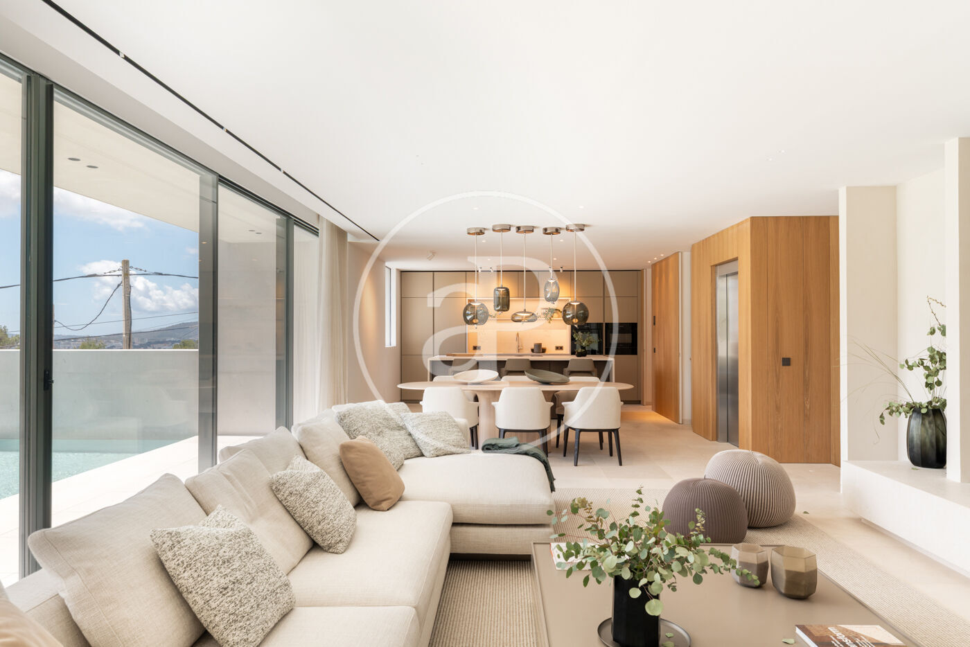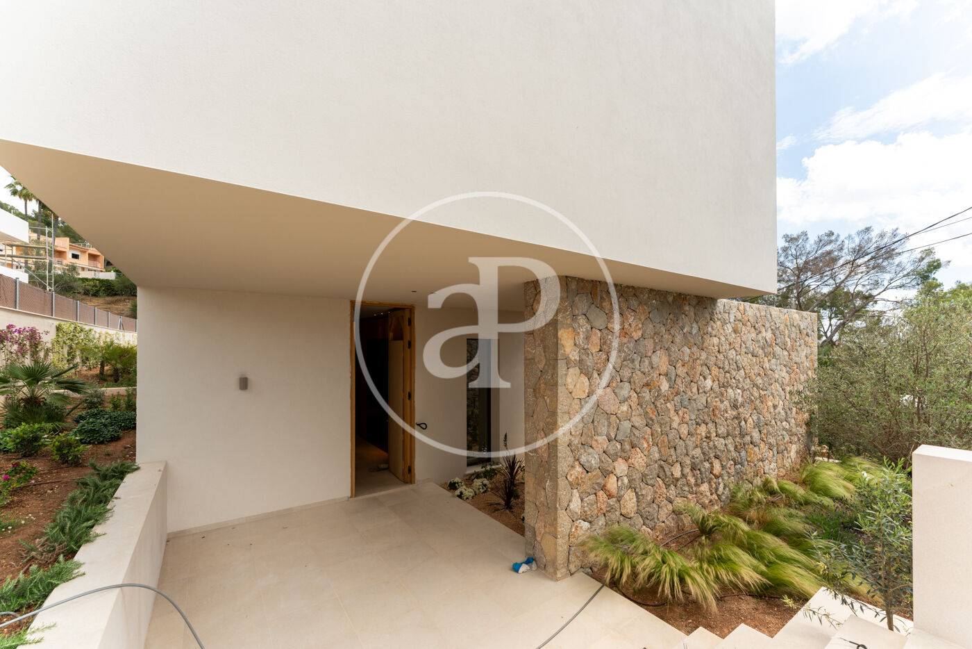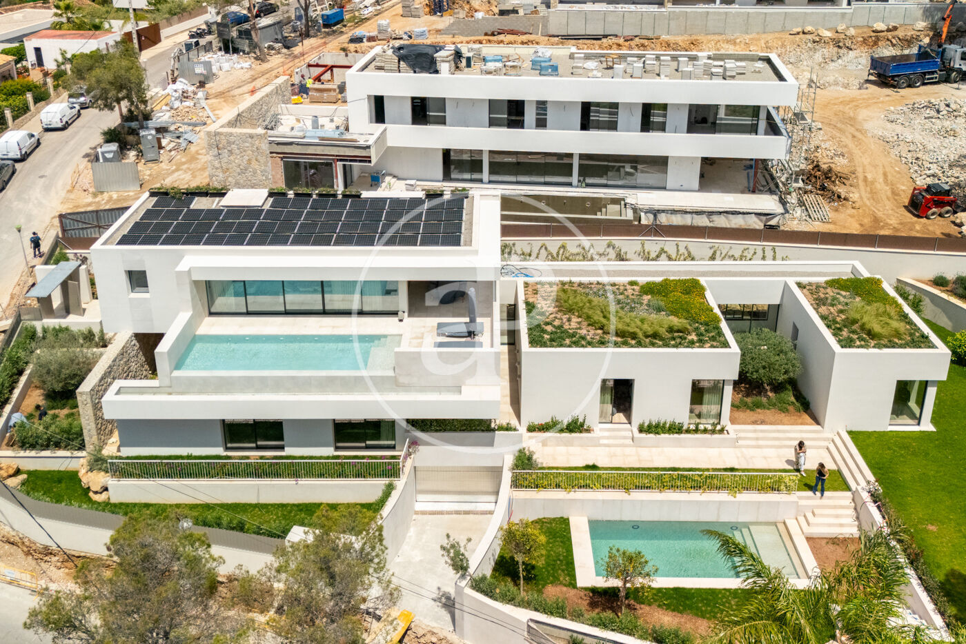 Diese beeindruckende, neu gebaute Designer-Villa befindet sich in der exklusivsten und begehrtesten Wohngegend von Portals im Südwesten Mallorcas. Die freistehende Immobilie bietet 600 qm Wohnfläche, einen traumhaften Blick auf das Meer, einen wunderschön angelegten Garten und zwei spektakuläre Swimmingpools sowie einen stilvollen Chill-out-Bereich.