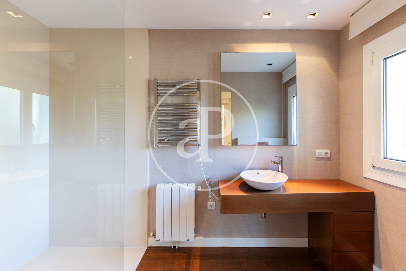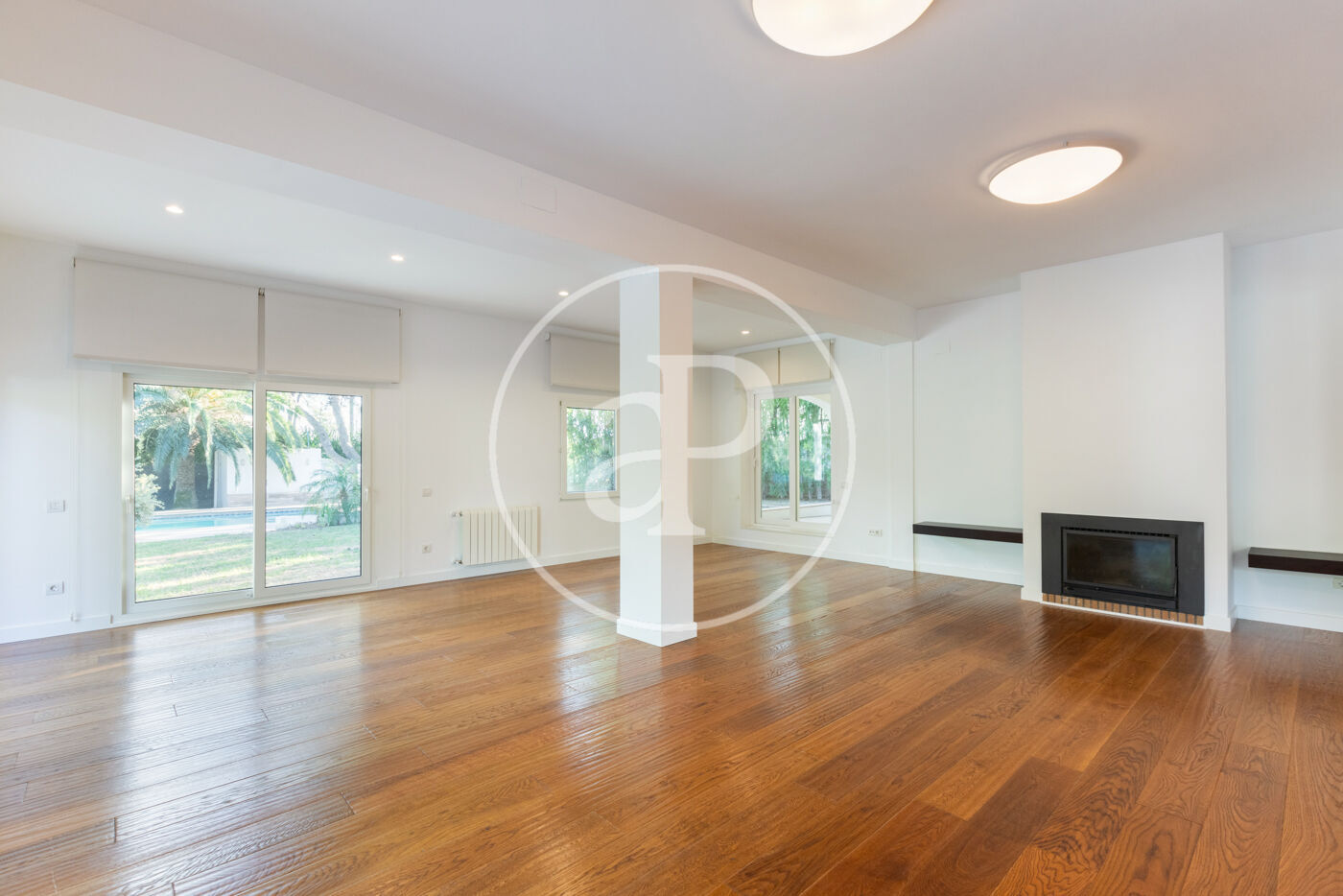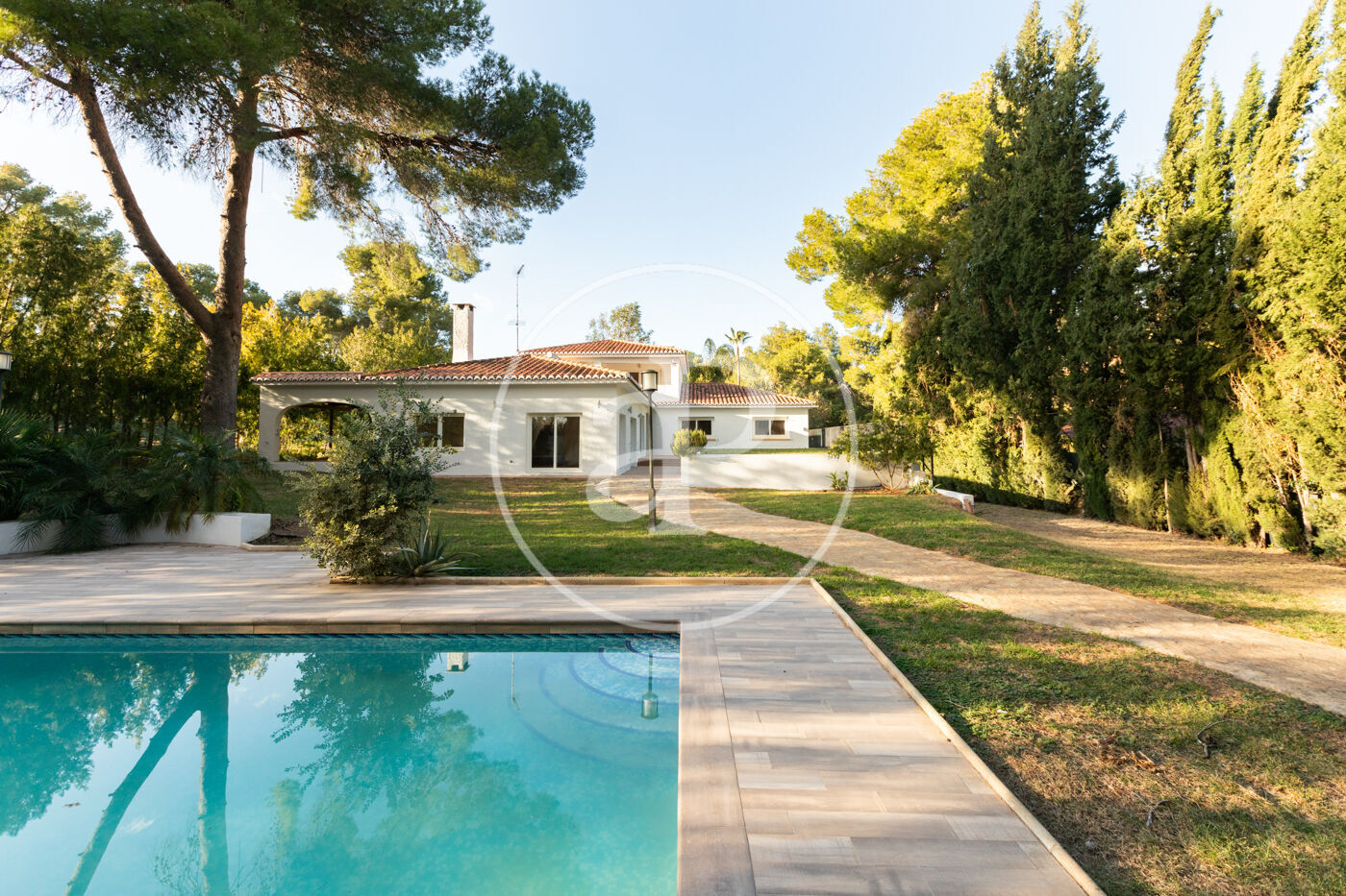 Die Immobilie hat 5 Zimmer, 3 Bäder, Pool, Kamin, 2 Parkplätze, Klimaanlage, Einbauschränke, Waschküche, Garten, Heizung und Abstellraum.