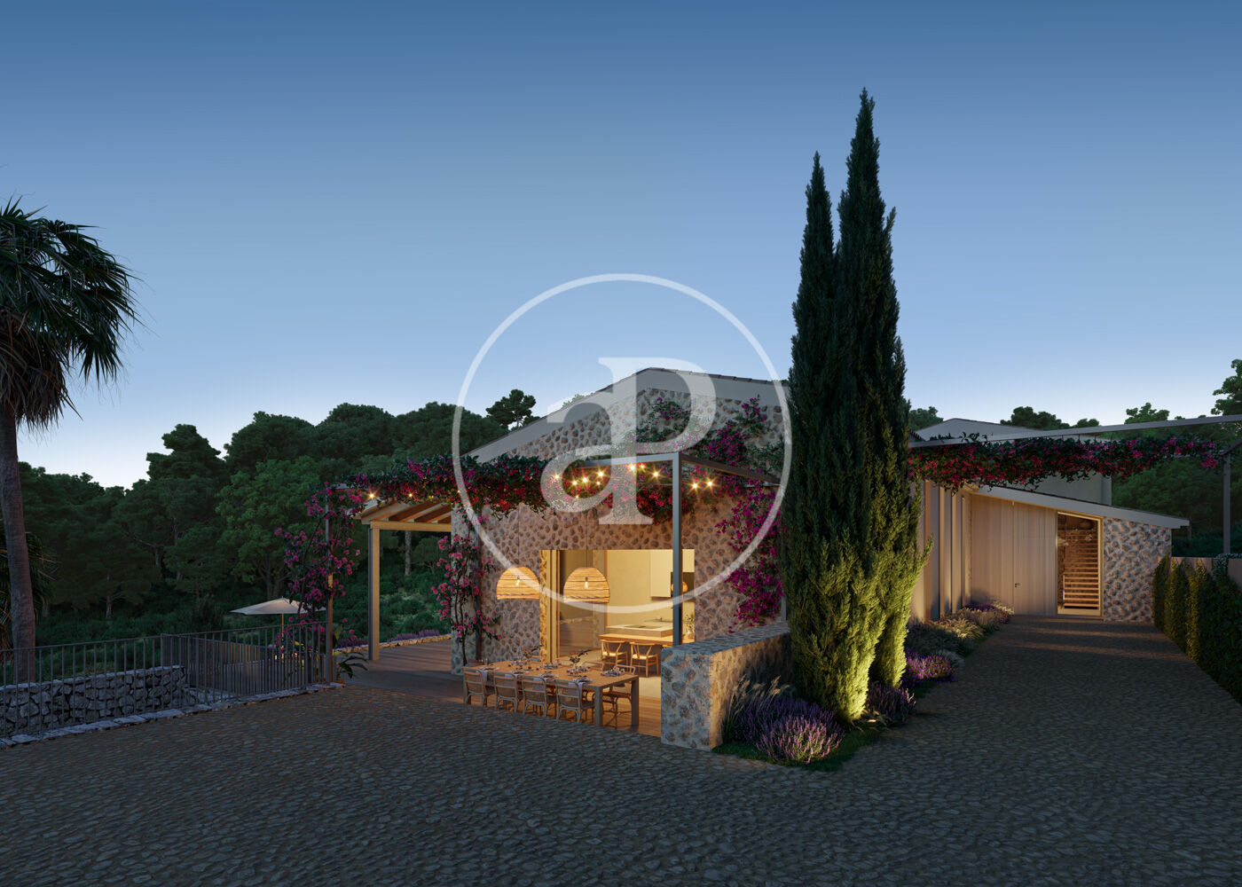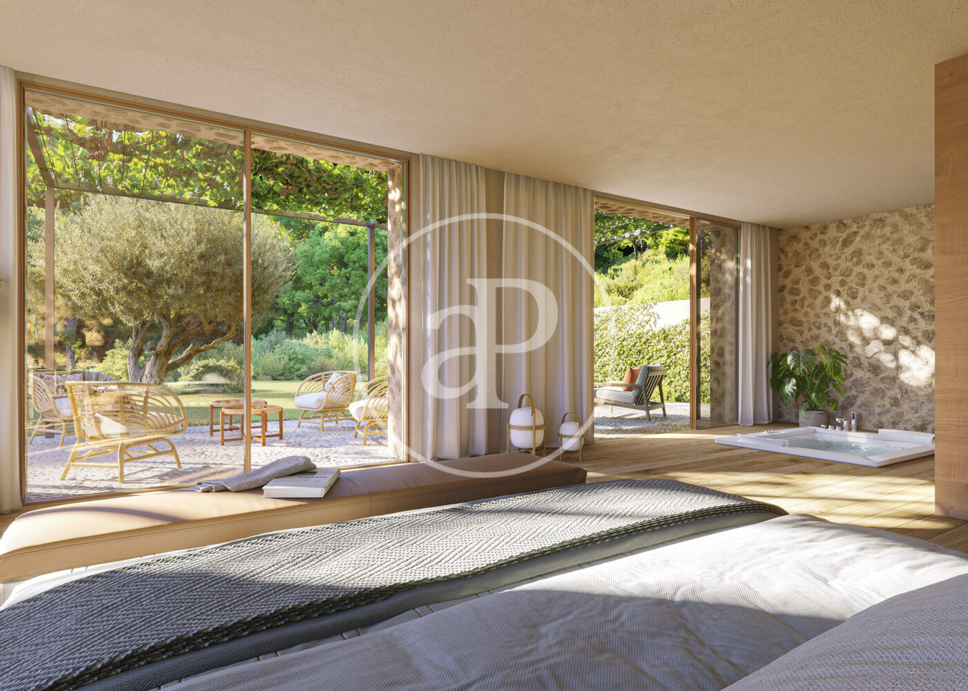 Quartet" ist ein Projekt mit vier individuellen, freistehenden Häusern in den Ausläufern der Serra de Tramuntana, Mallorcas UNESCO-geschützter Gebirgskette mit malerischen Dörfern und spektakulären Landschaften.