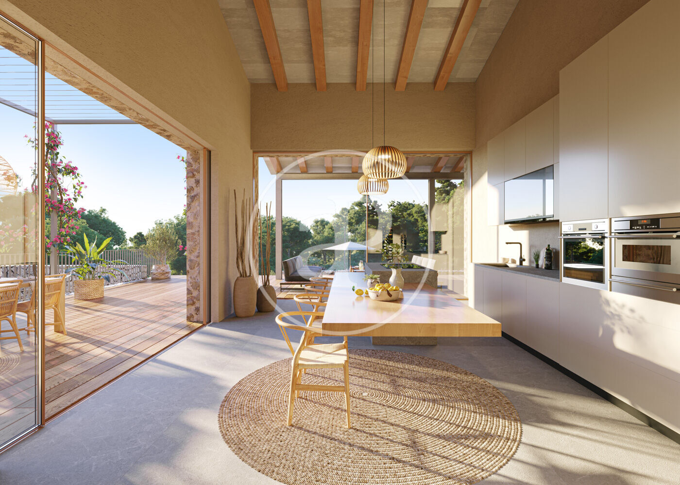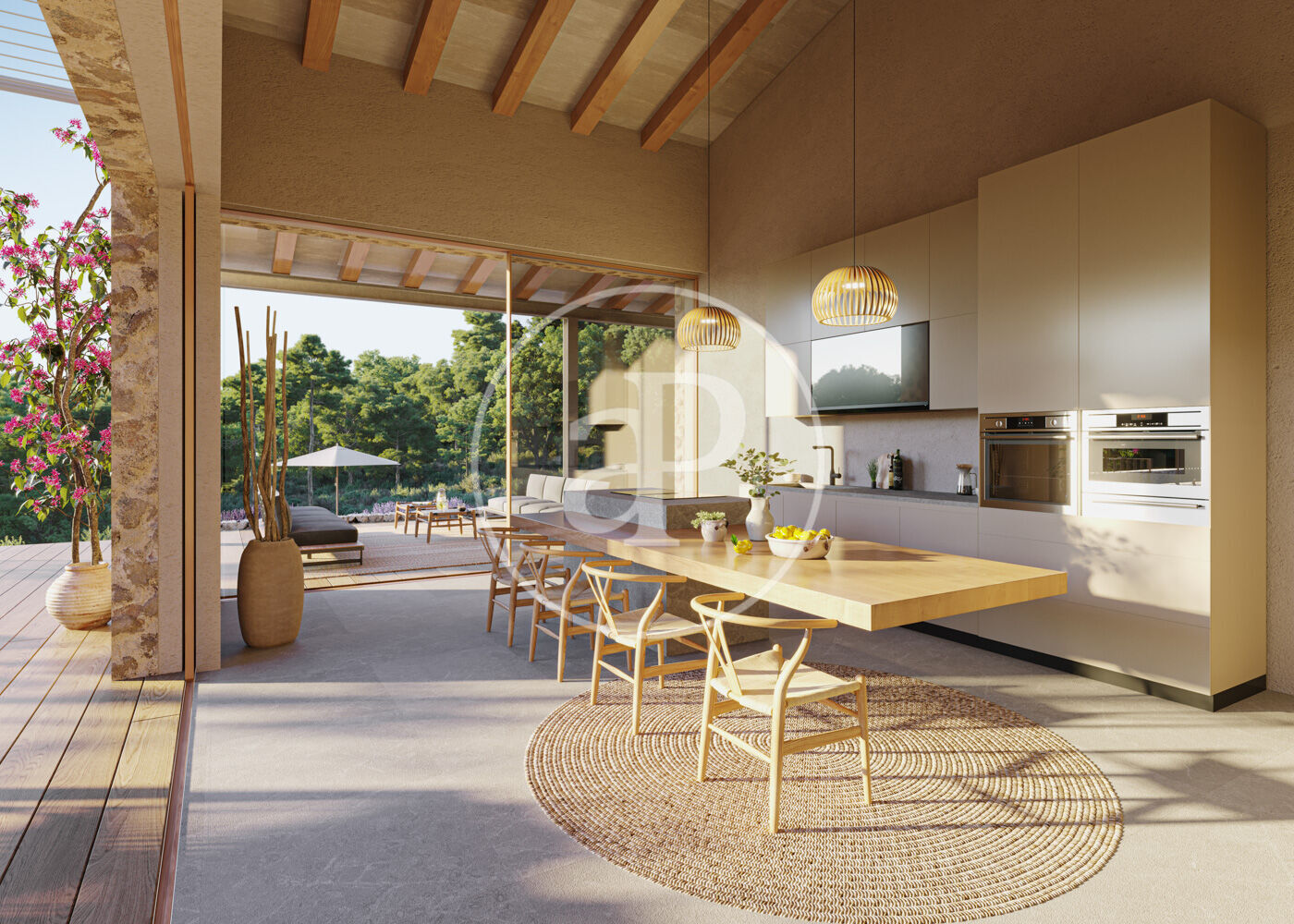Die Verbindung des Hauses mit der Natur schafft ein Gefühl der Ruhe und des Friedens, ein privilegierter Aussichtspunkt über eine einzigartige Gegend Mallorcas. Das Design durchbricht die traditionellen Grenzen zwischen Außen und Innen. Die Verwendung edler und lokaler Materialien verleiht dem Haus ein starkes Gefühl der Zugehörigkeit. Die kluge Mischung aus Licht und Schatten im Haus macht das Essen im Freien zum Vergnügen.