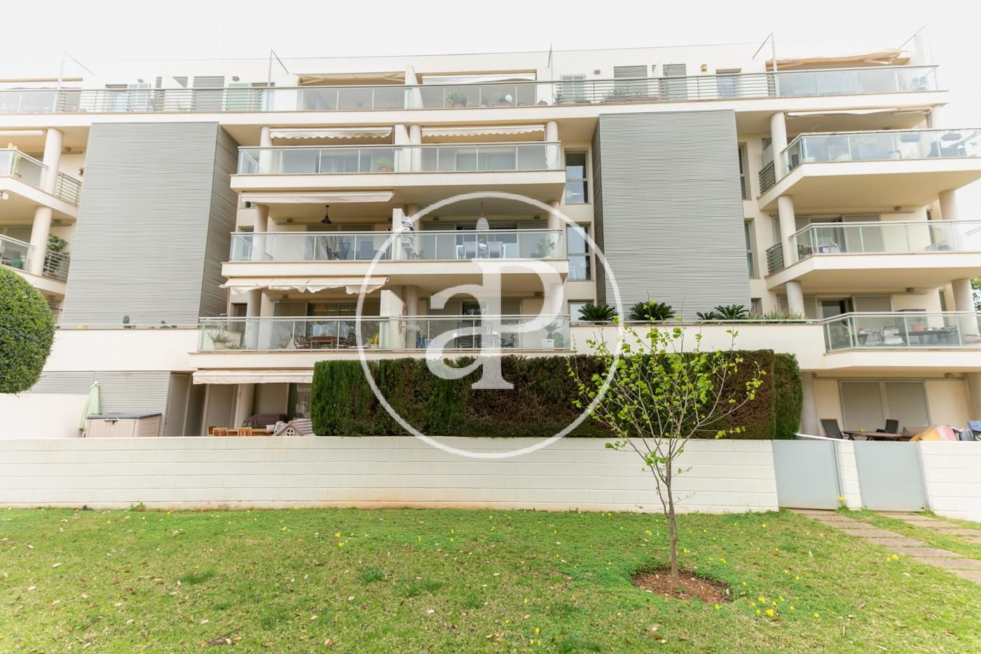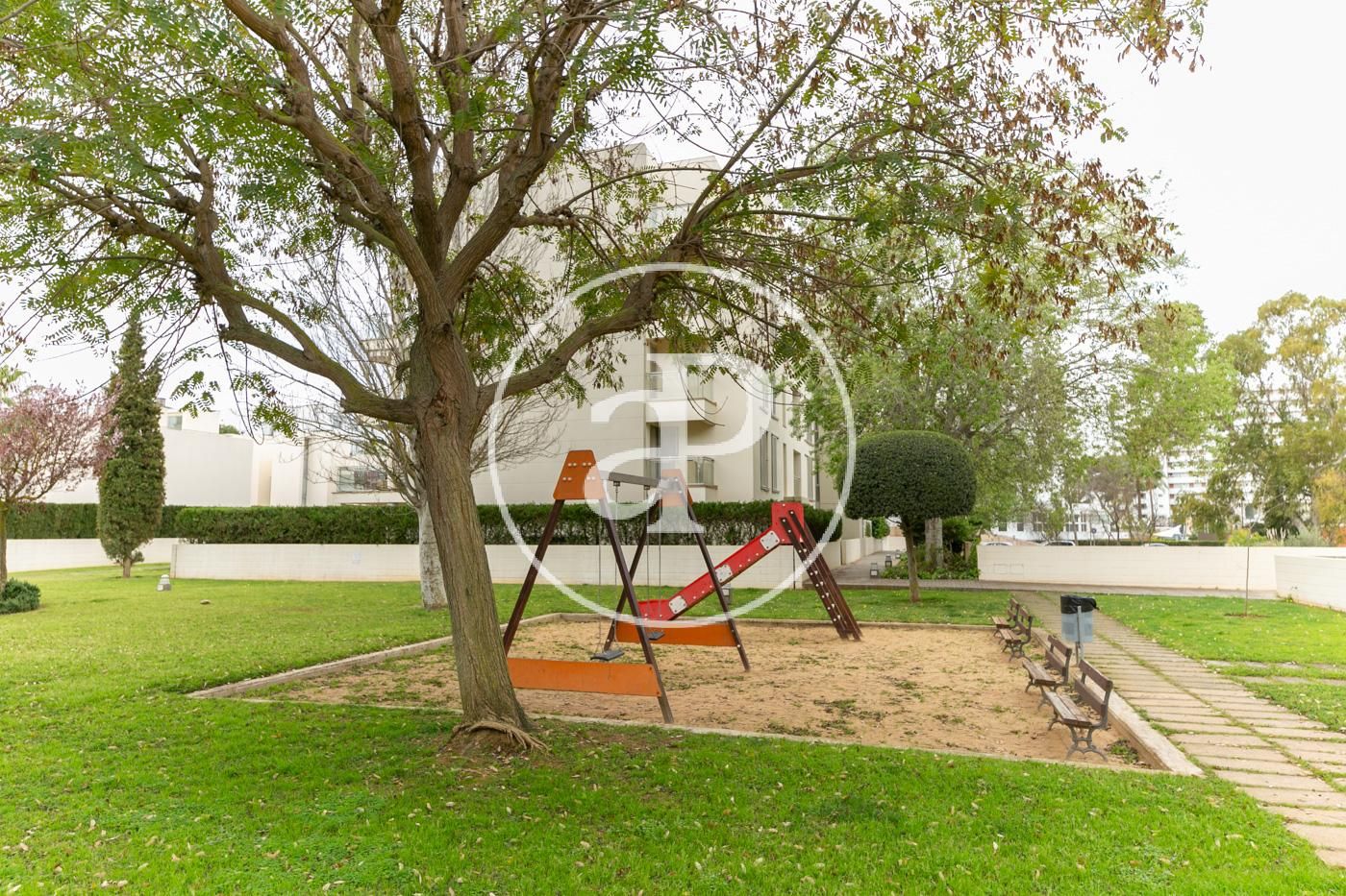 Hundert Meter vom Strand entfernt, in einem modernen Komplex mit Gartenanlagen und zwei Swimmingpools, finden wir diese AUSGEZEICHNETE ERDGESCHOSSWOHNUNG MIT VORGARTEN und einem praktischen Innenhof.