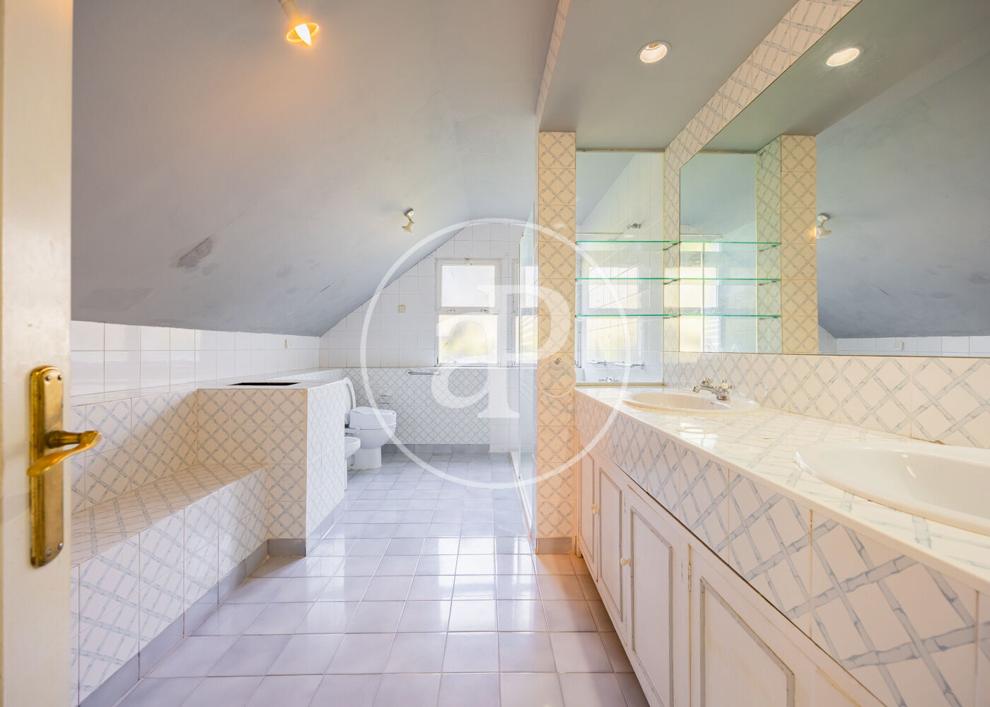 Die Immobilie hat 6 Zimmer, 5 Bäder, Pool, Kamin, 2 Parkplätze, Klimaanlage, Einbauschränke, Waschküche, Garten, Heizung und Abstellraum.