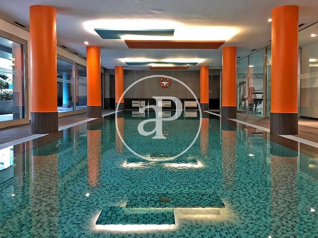 Zimmer, 1 Badezimmer, Pool, Fitnessstudio, 4 Parkplätze, Klimaanlage, Einbauschränke, Waschküche, Garten, Heizung, Pförtner und Abstellraum.