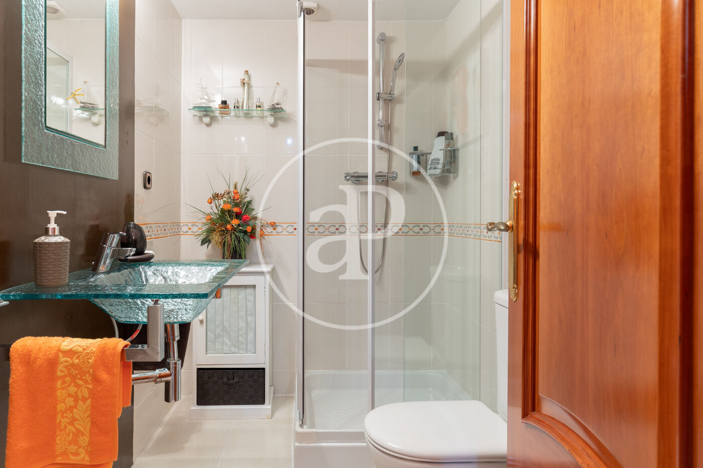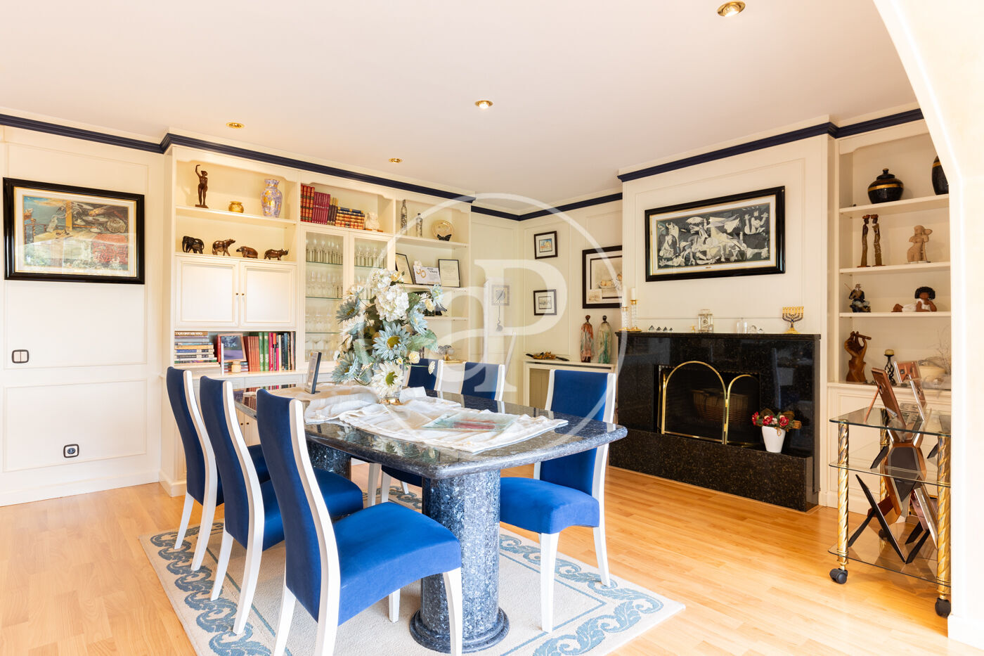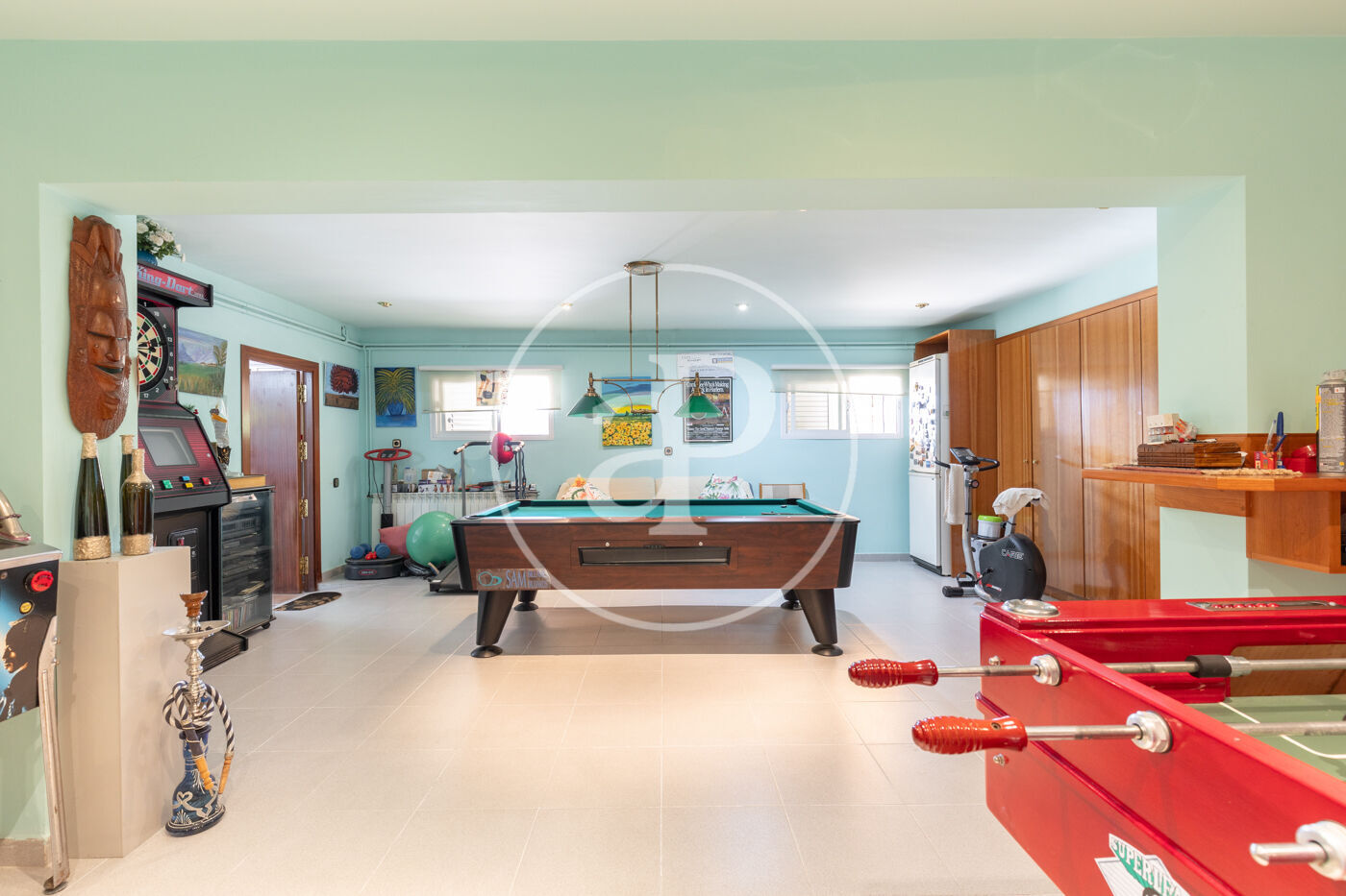 Die Immobilie hat 5 Zimmer, 4 Bäder, Pool, Kamin, Fitnessstudio, Parkplatz, Klimaanlage, Einbauschränke, Waschküche, Balkon, Garten, Heizung und Abstellraum.