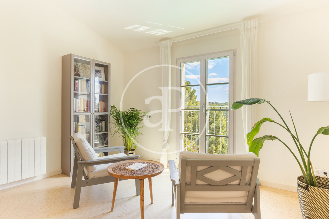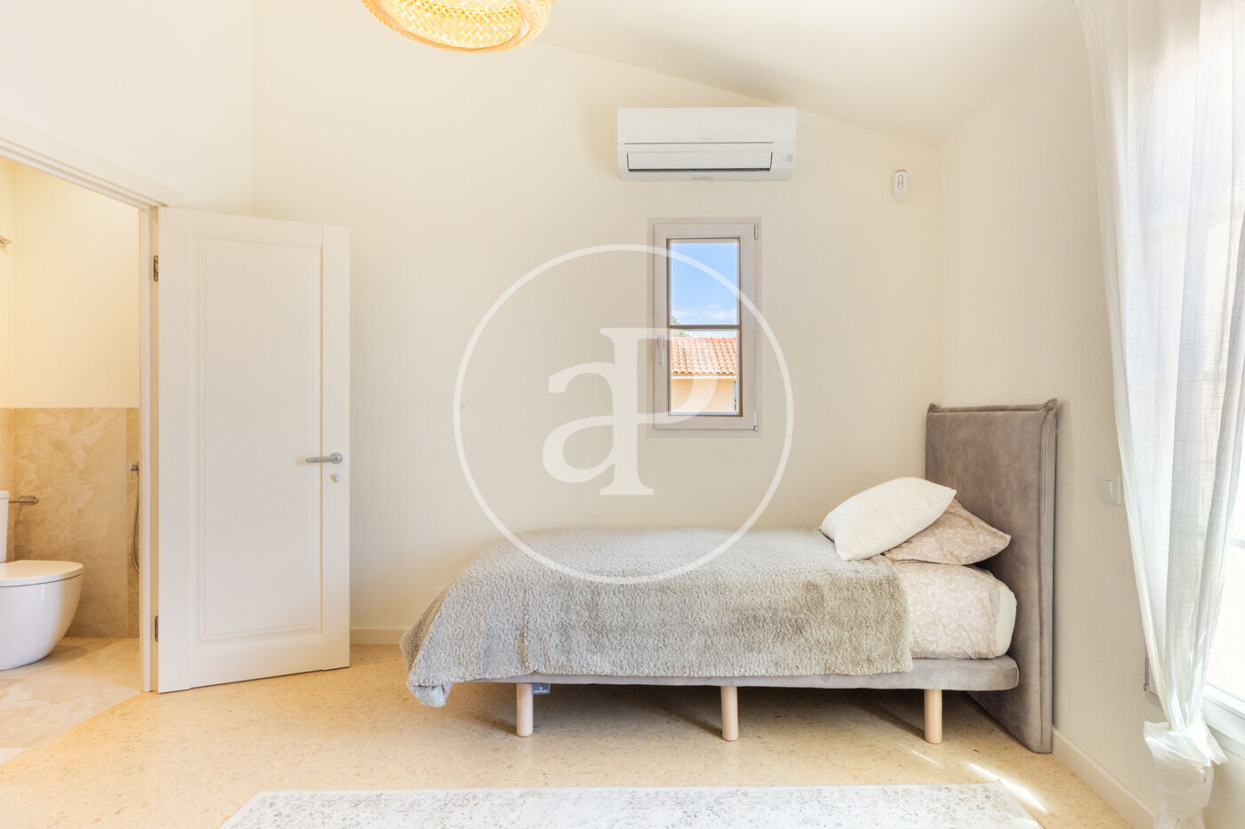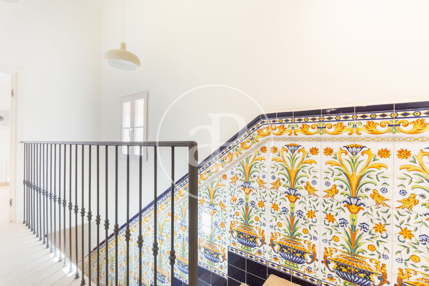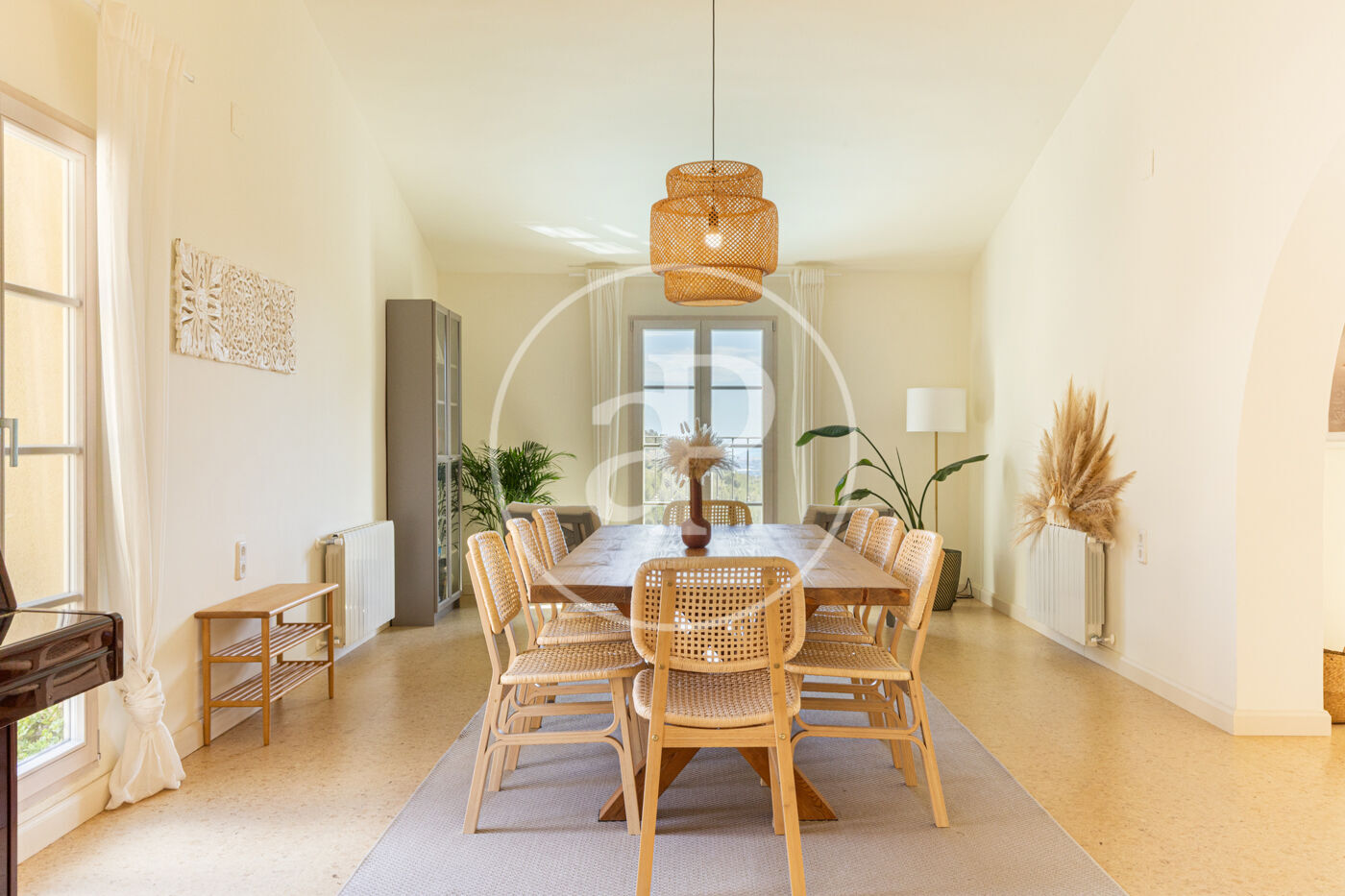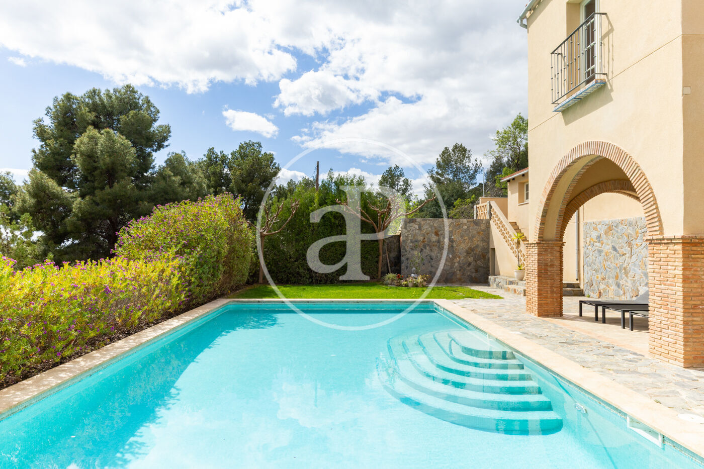Dieses prächtige Einfamilienhaus liegt in San Andrés de Llavaneras, in einer bergigen Gegend. Es verfügt über sieben Schlafzimmer, sechs Badezimmer, einen bezaubernden Swimmingpool, eine Reitarena und einen beeindruckenden Garten mit üppiger Vegetation und Panoramablick auf das Meer.  Das Anwesen umfasst ein weitläufiges Grundstück von 7.000m2, bestehend aus vier Gebäuden mit einer Gesamtfläche von ca. 785m2. Zu diesen Strukturen gehören der Hauptwohnsitz, ein Nebenhaus für Mieter oder Gäste, Stallungen und ein Umkleidebereich in der Nähe des Pools.  Die Hauptresidenz mit 636m2, verteilt auf drei Ebenen, zeichnet sich durch ihre Helligkeit aus, da sie vollständig nach außen gerichtet ist und durch ihre erhöhte Lage an einem sanften Hang, die eine privilegierte Aussicht bietet. Zahlreiche Terrassen bieten Ausblicke auf das Meer, den exquisiten Garten und den Pool. Im Erdgeschoss befindet sich eine geräumige Küche mit Bürobereich, ausgestattet mit einer großen Arbeitsplatte aus Edelstahl mit sechs Brennern und einem Bügeleisen, sowie ein großes Wohnzimmer von ca. 80m2 mit Kamin und viel Tageslicht in beiden Räumen, ideal für Treffen. Familiär und sozial. Das Haus beherbergt sieben Zimmer, darunter eine Suite im Erdgeschoss mit Wohnzimmer und erhöhtem Balkon, ein Einzelzimmer und zwei Doppelzimmer mit Gemeinschaftsbad. Im Obergeschoss teilen sich eine Master-Suite und eine zweite Dachgeschoss-Suite einen zweiten Kamin auf dem Treppenabsatz. Darüber hinaus verfügt es über einen großen Wäschebereich, der einen Serviceraum mit Wohnzimmer und Bad umfasst. Im Untergeschoss gibt es eine Garage mit Platz für zwei Fahrzeuge, eine große Speisekammer und eine komplette Küche mit Zugang zum Garten und Pool.  Das Nebenhaus mit ca. 95m2, gedacht für Mieter oder Gäste, ist eine gemütliche Zwei-Zimmer-Wohnung mit Bad und einem Wohn-Esszimmer mit Zugang zu einer Terrasse auf Gartenebene. Es verfügt außerdem über ein zusätzliches Zimmer mit separatem Eingang für verschiedene Nutzungen und ein geräumiges zweites Badezimmer.  Darüber hinaus gibt es einige alte Ställe, die derzeit nicht mehr genutzt werden, aber als Kinoraum, Veranstaltungsraum, Fitnessstudio oder Spielzimmer genutzt werden können.  Schließlich gibt es noch einen Studienraum und Umkleideräume von ca. 55 m², die den Badegästen zur Verfügung stehen.  Das 1945 erbaute Anwesen liegt in einer ruhigen Gegend und gleichzeitig nur 3 Autominuten vom Stadtzentrum entfernt.