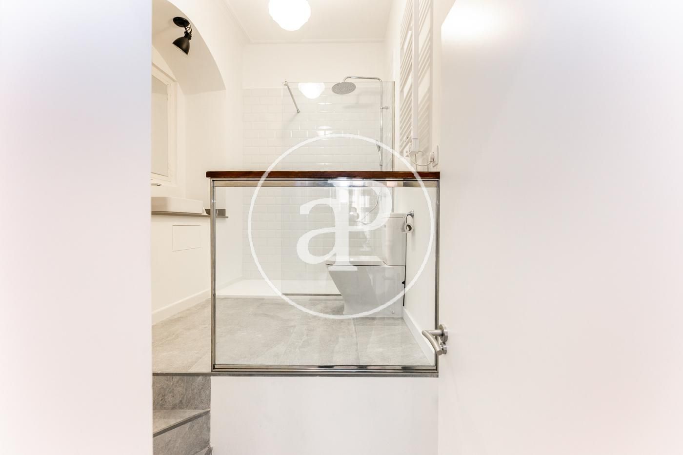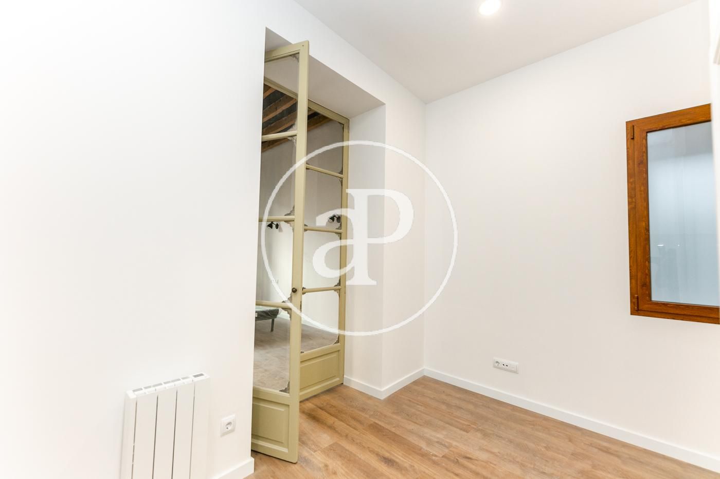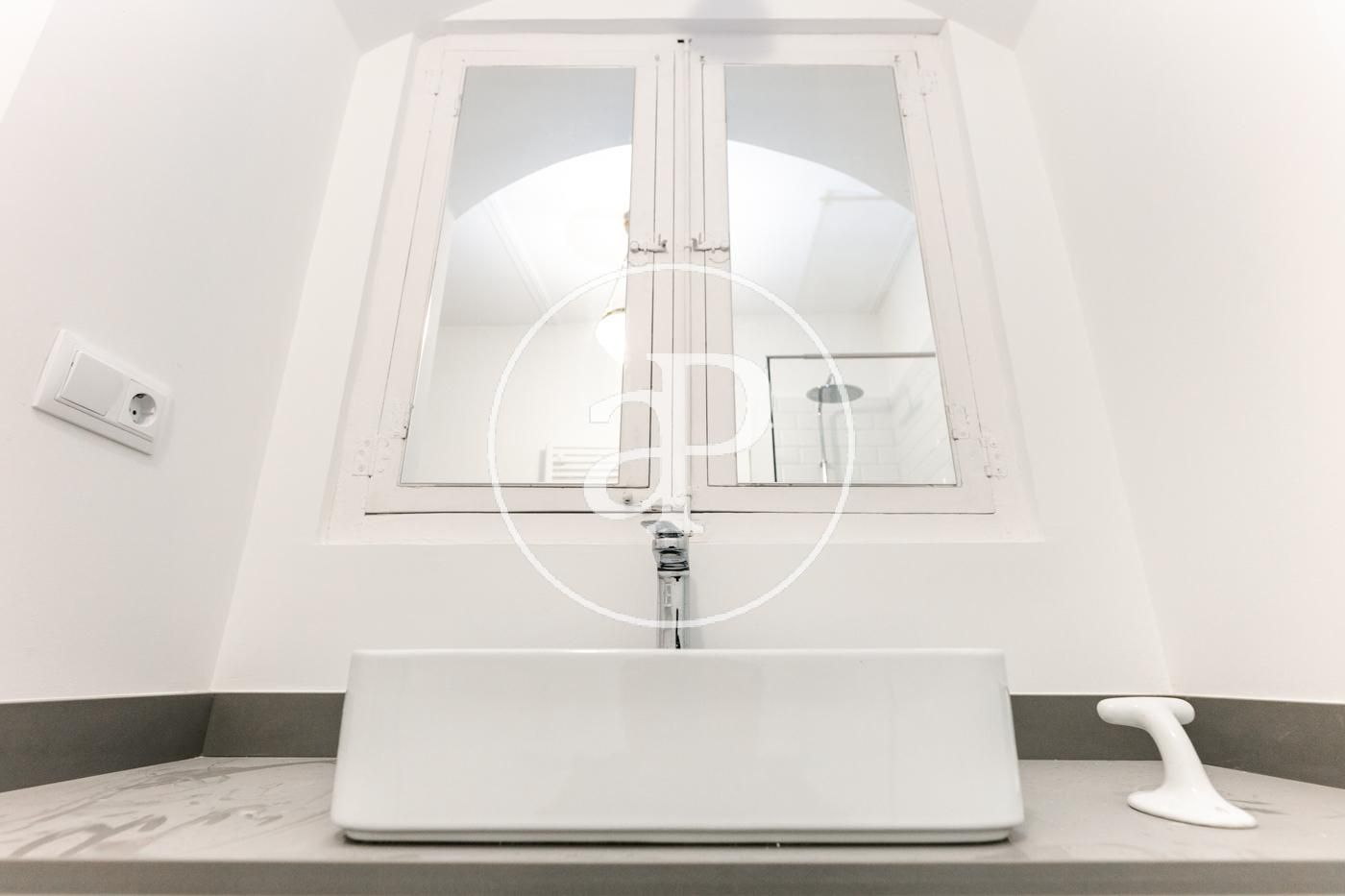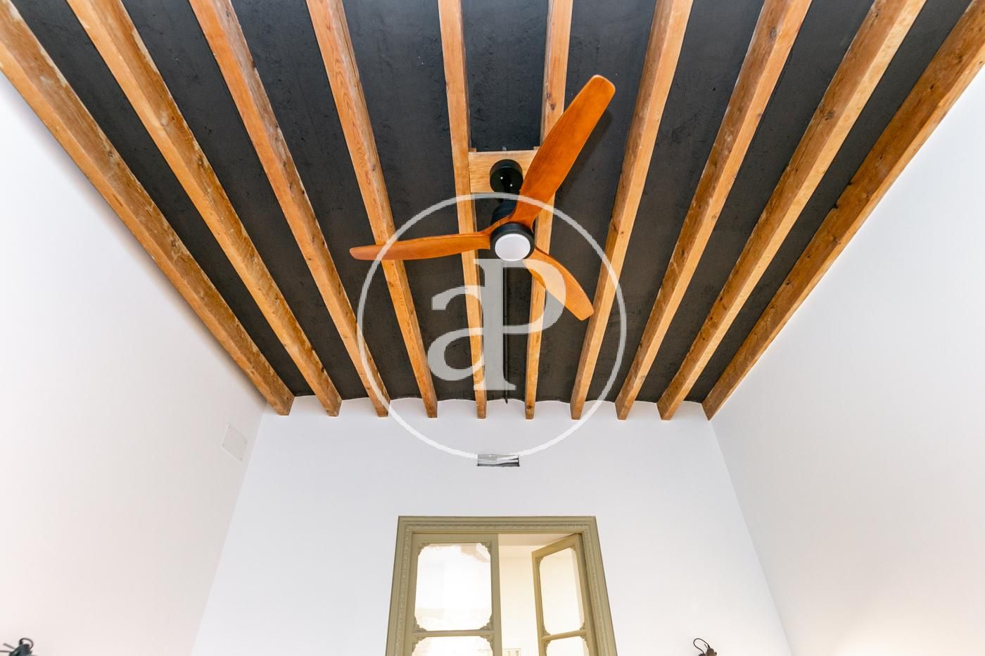 Kürzlich renovierte Loft-Wohnung mit einem Schlafzimmer in der Calle Apuntadors, nur wenige Meter von der Strandpromenade und dem Paseo del Borne entfernt, im Herzen der Stadt, umgeben von allen Arten von Geschäften, Freizeitzentren, Verkehrsmitteln und touristisch und kulturell interessanten Orten, finden wir diese exklusive, kürzlich renovierte Wohnung mit einem modernen Stil und einem industriellen Touch, der mit der Wiederherstellung der ursprünglichen Elemente der Immobilie spielt.
