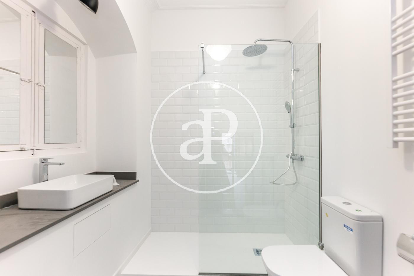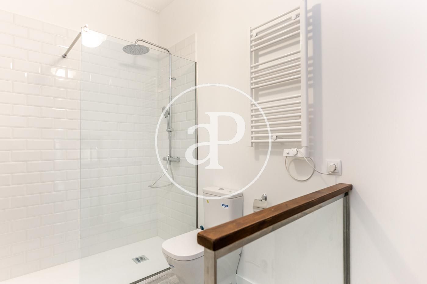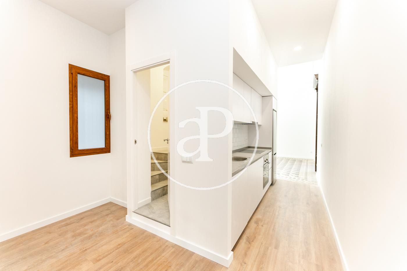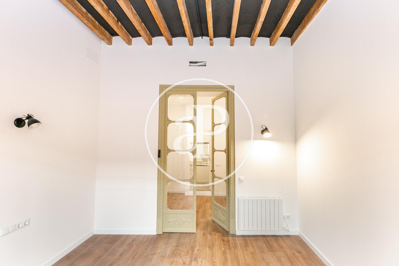 Kürzlich renovierte Loft-Wohnung mit einem Schlafzimmer in der Calle Apuntadors, nur wenige Meter von der Strandpromenade und dem Paseo del Borne entfernt, im Herzen der Stadt, umgeben von allen Arten von Geschäften, Freizeitzentren, Verkehrsmitteln und touristisch und kulturell interessanten Orten, finden wir diese exklusive, kürzlich renovierte Wohnung mit einem modernen Stil und einem industriellen Touch, der mit der Wiederherstellung der ursprünglichen Elemente der Immobilie spielt.