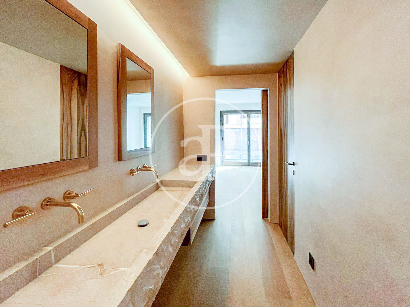 Die Ausstattung ist von höchster Qualität und vereint Design, Funktionalität und Komfort: Eichenparkettböden, Armaturen der renommierten Marke Dornbracht, hochwertige Außenschreinerei, Fußbodenheizung, zentralisierte Klimaanlage mit individueller Steuerung, energieeffizientes Lüftungssystem mit Luftaustausch (Aerothermie) sowie Smart-Home-System.