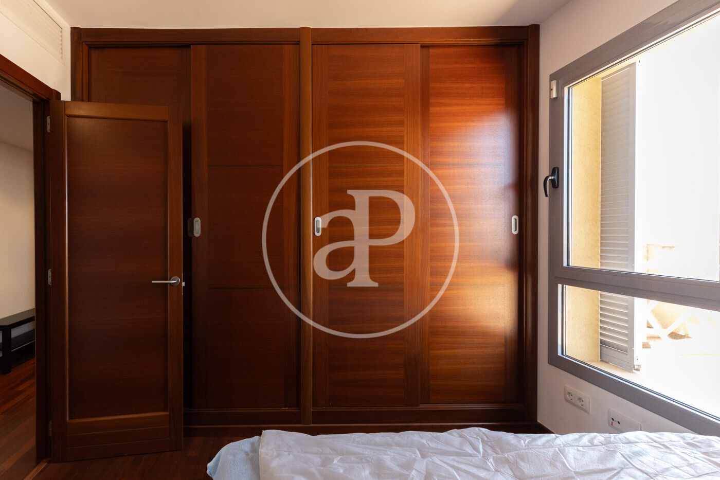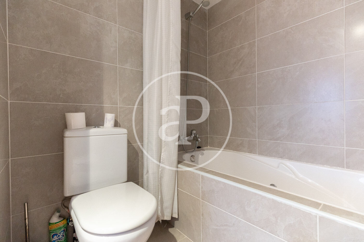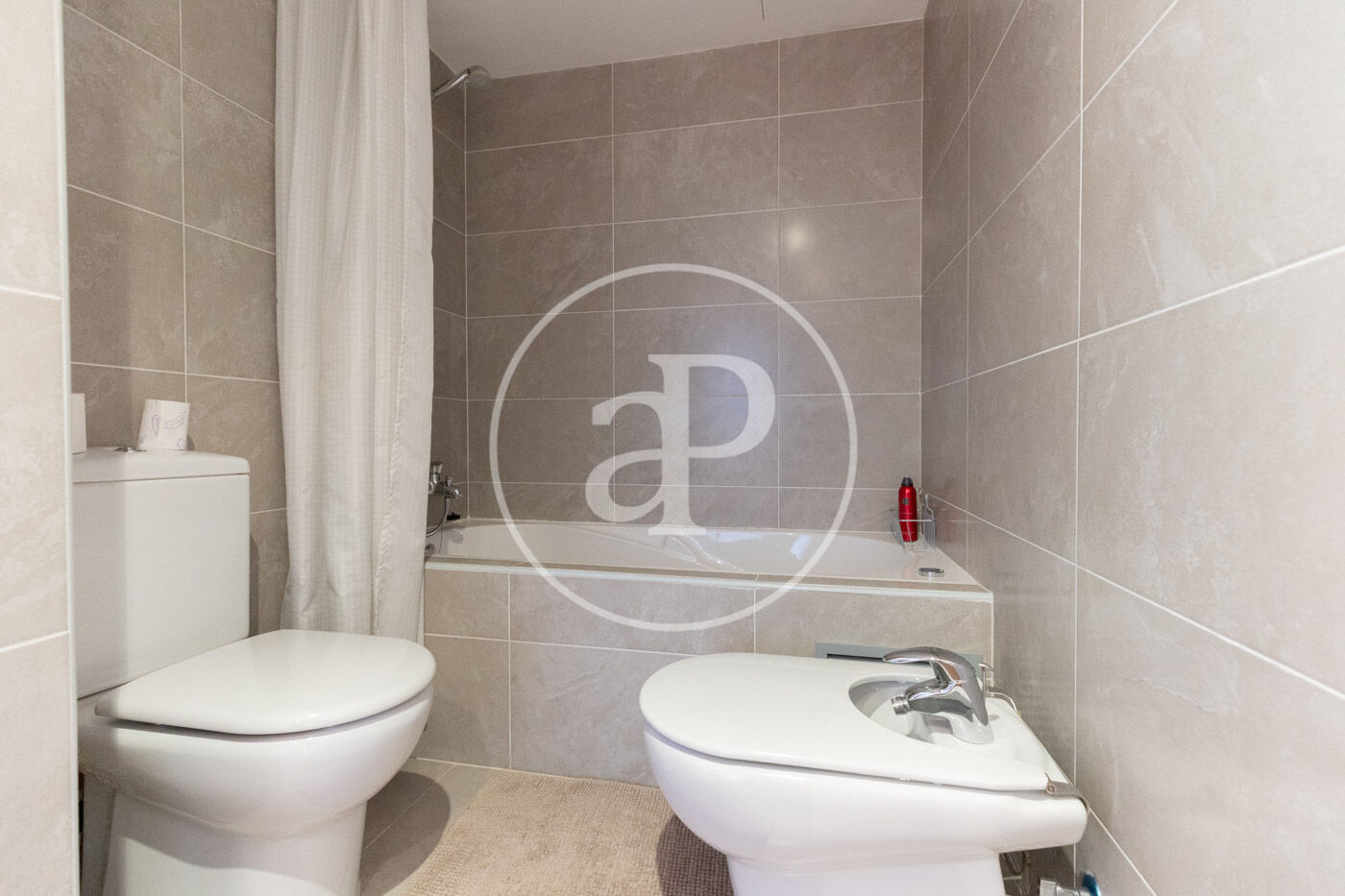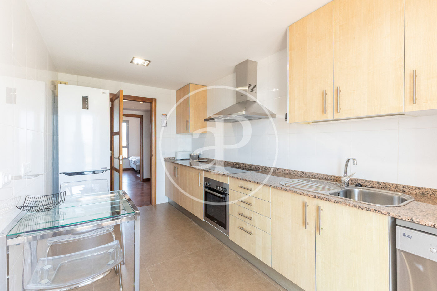 Durch den Eingang der Wohnung, der durch den Flur führt, gelangt man rechter Hand in die voll ausgestattete Küche, neben der sich ein Hauswirtschaftsraum befindet. Über den Balkon gelangt man auch in das schöne und moderne Wohnzimmer und dann in den Flur. Es gibt auch zwei Schlafzimmer in der Wohnung: ein Hauptschlafzimmer mit eigenem Bad mit Badewanne und Ausgang zu einem zweiten Balkon, von dem aus wir die Aussicht auf die Berge bewundern können, und ein zweites zusätzliches Schlafzimmer. Außerdem haben wir Zugang zu einem Badezimmer mit Dusche und einem Parkplatz.