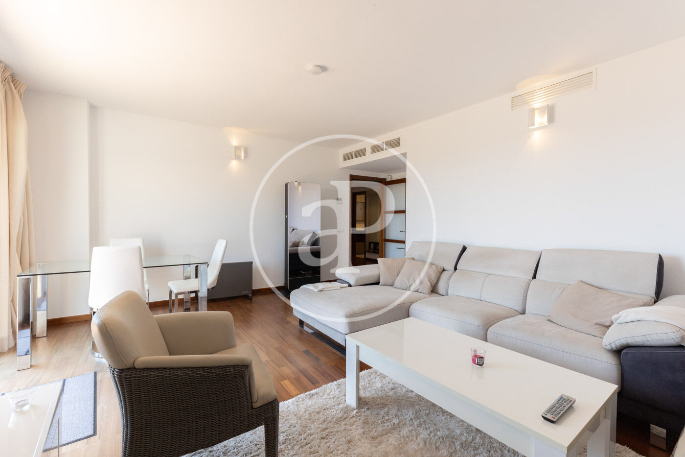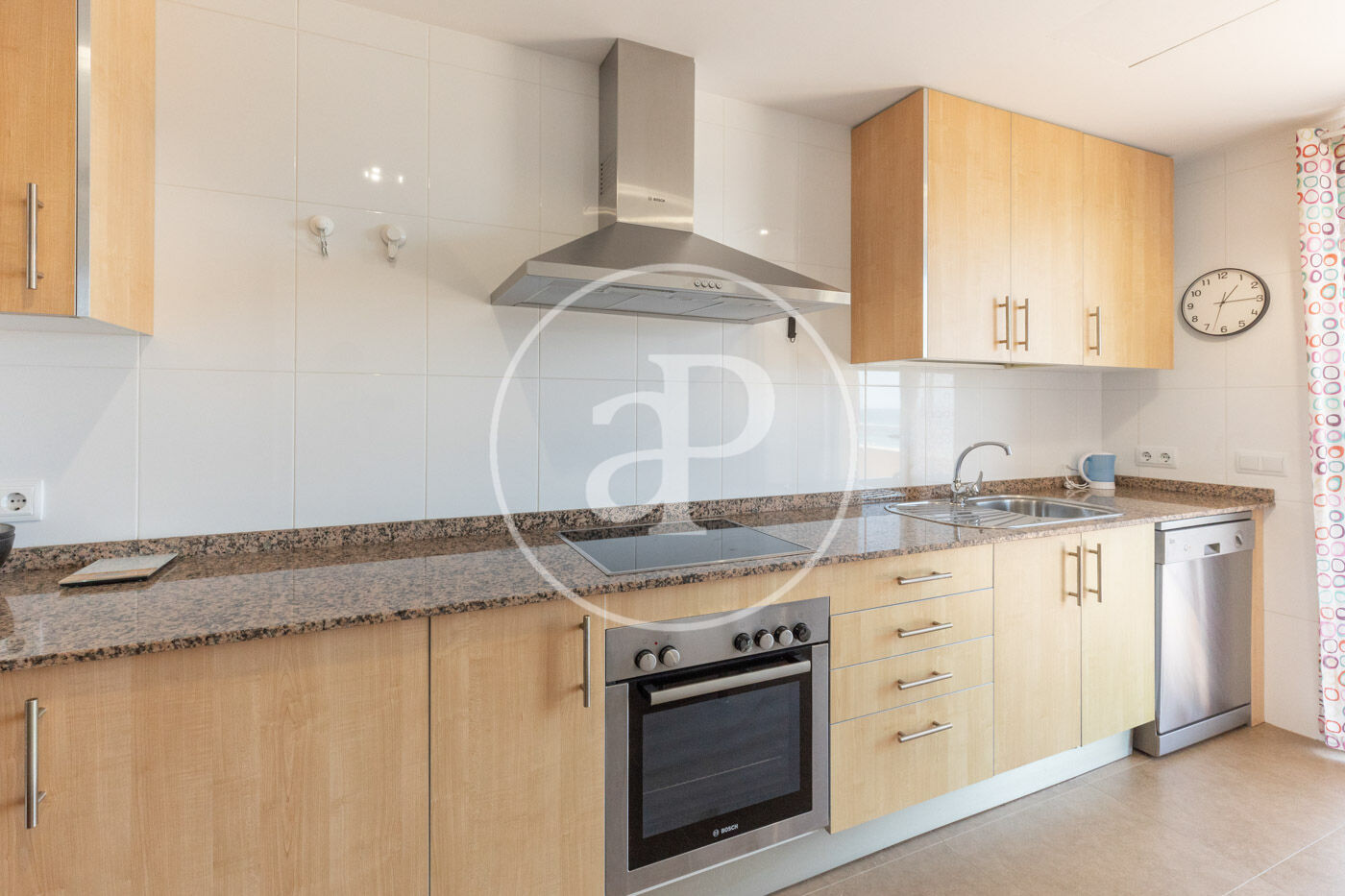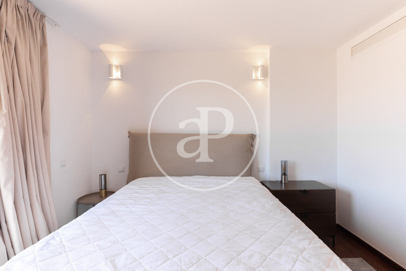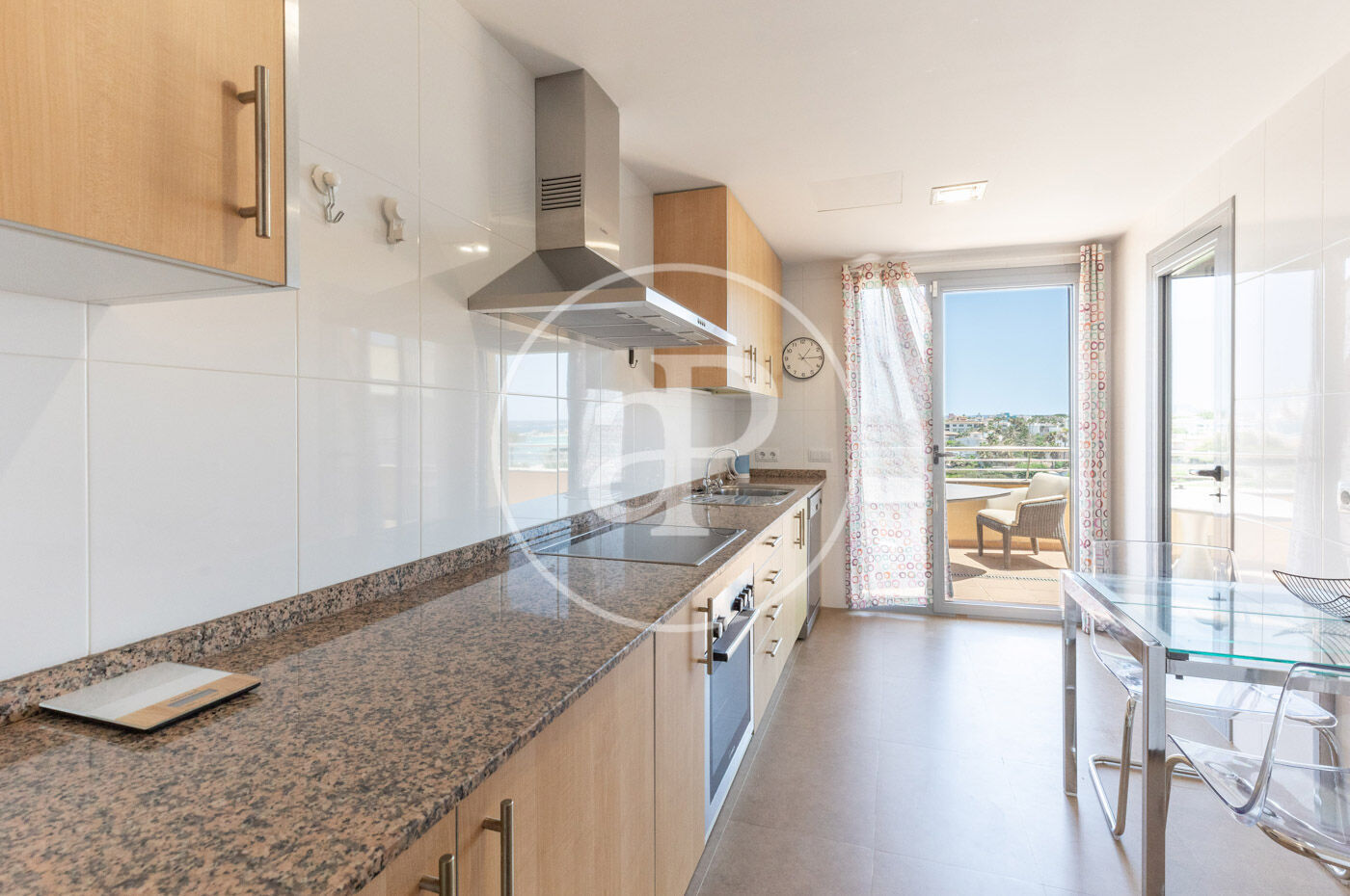 Durch den Eingang der Wohnung, der durch den Flur führt, gelangt man rechter Hand in die voll ausgestattete Küche, neben der sich ein Hauswirtschaftsraum befindet. Über den Balkon gelangt man auch in das schöne und moderne Wohnzimmer und dann in den Flur. Es gibt auch zwei Schlafzimmer in der Wohnung: ein Hauptschlafzimmer mit eigenem Bad mit Badewanne und Ausgang zu einem zweiten Balkon, von dem aus wir die Aussicht auf die Berge bewundern können, und ein zweites zusätzliches Schlafzimmer. Außerdem haben wir Zugang zu einem Badezimmer mit Dusche und einem Parkplatz.