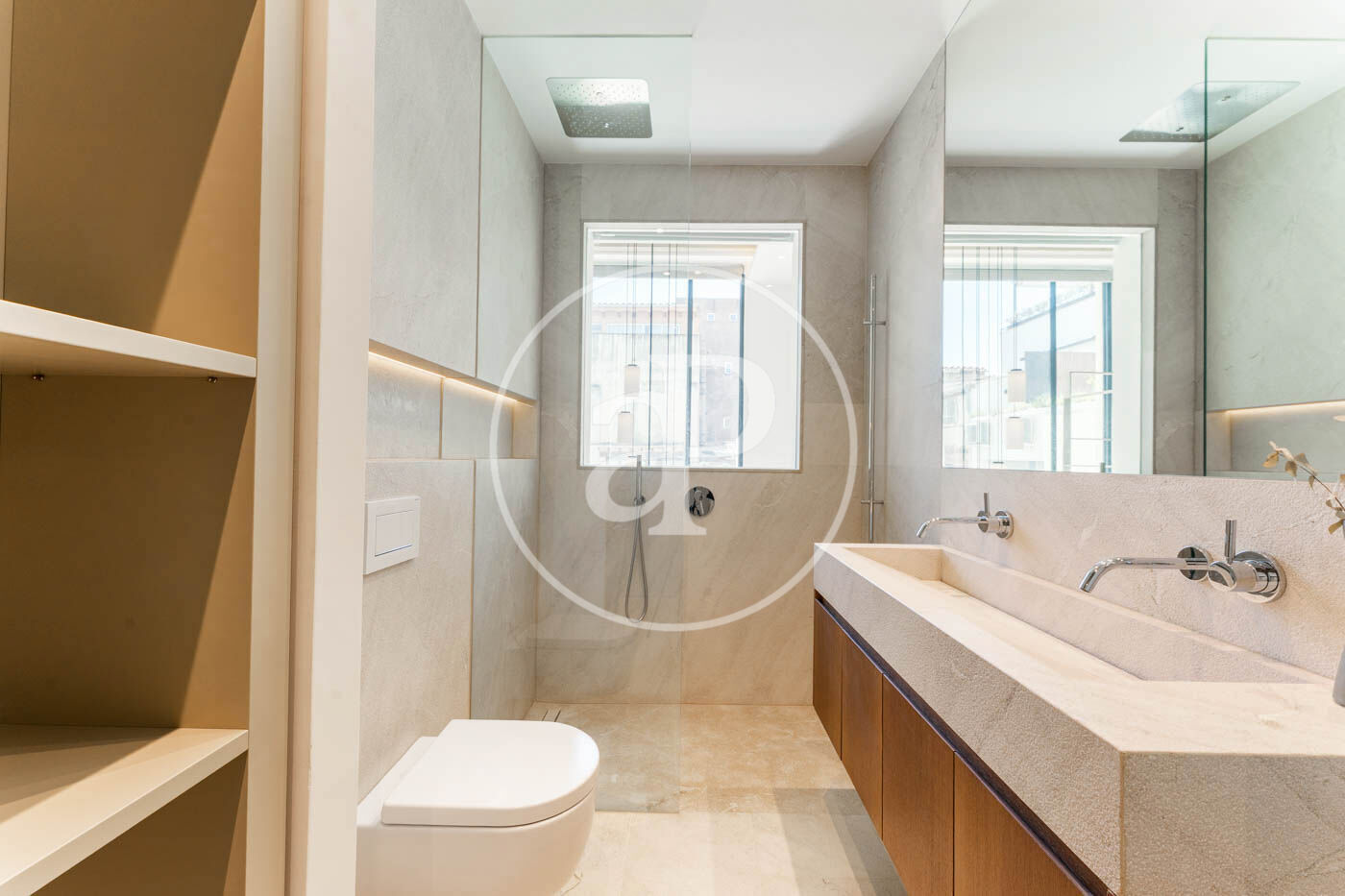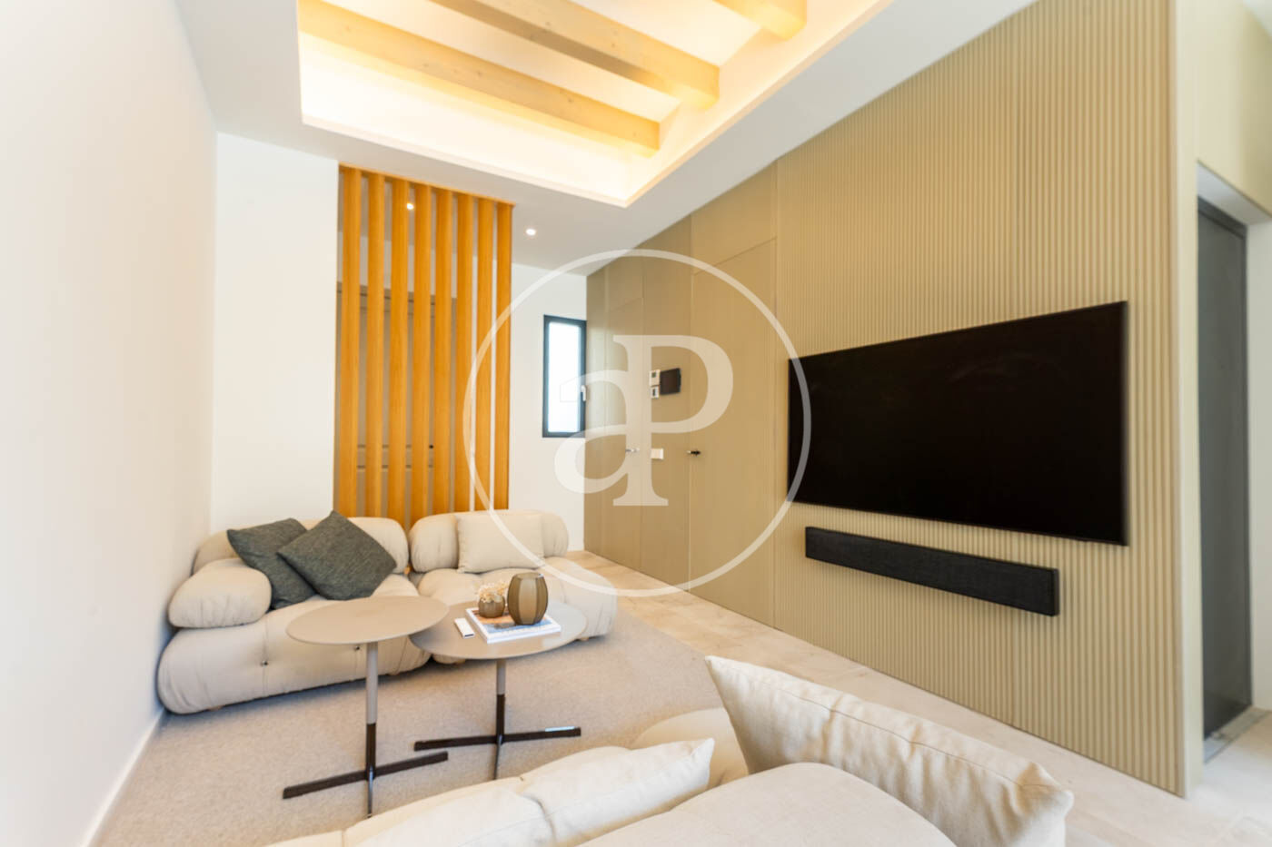 Hochwertige Ausstattungen und Technologien erhöhen das Wohnerlebnis hier, darunter Parkett aus Natureiche (Pergo), Daikin-Klimaanlagen, Fußbodenheizung, ein Fibaro-Hausautomatisierungssystem und ein Bang & Olufsen / Architectura Sonora-Soundsystem. Darüber hinaus zeugen Details wie eine Wasseraufbereitungsanlage, maßgeschneiderte Beleuchtung und Fenster von Cortizo - Alusteel von der Qualität und der Liebe zum Detail in jedem Winkel des Hauses.