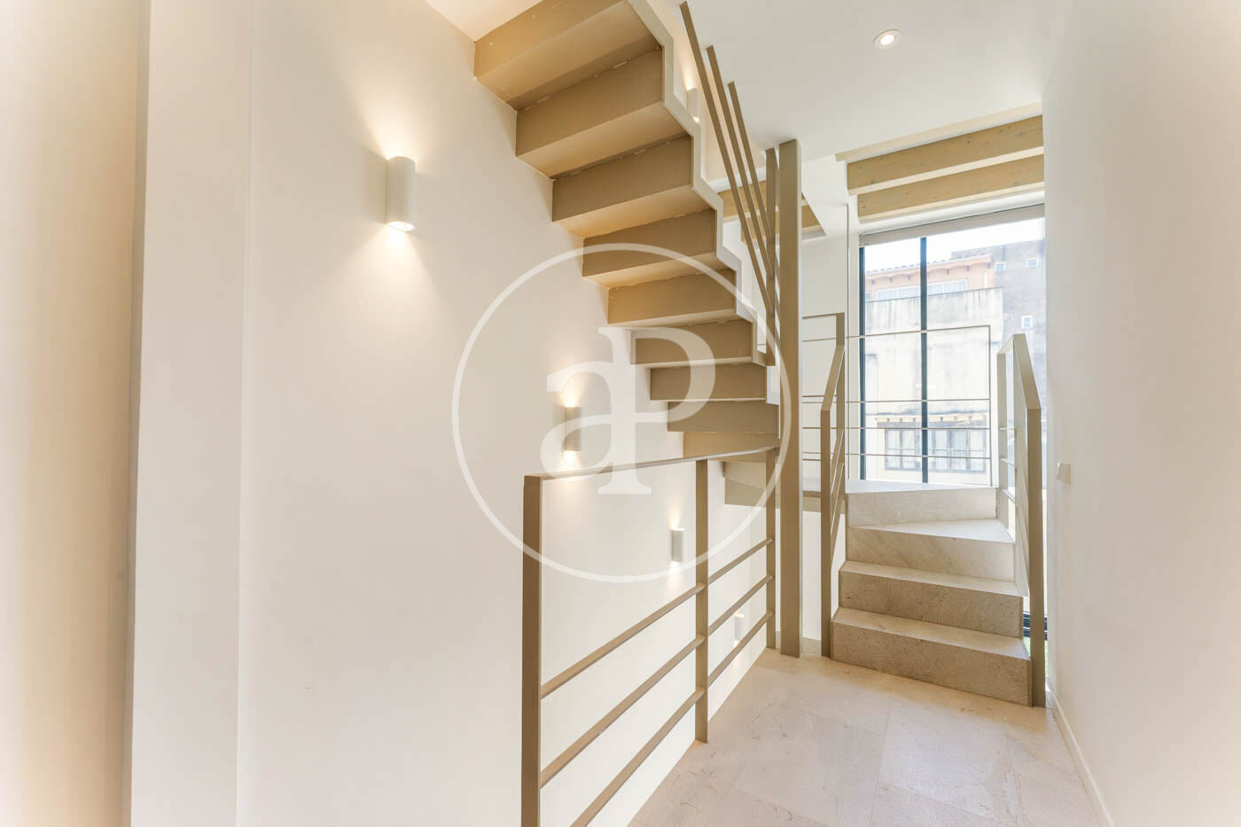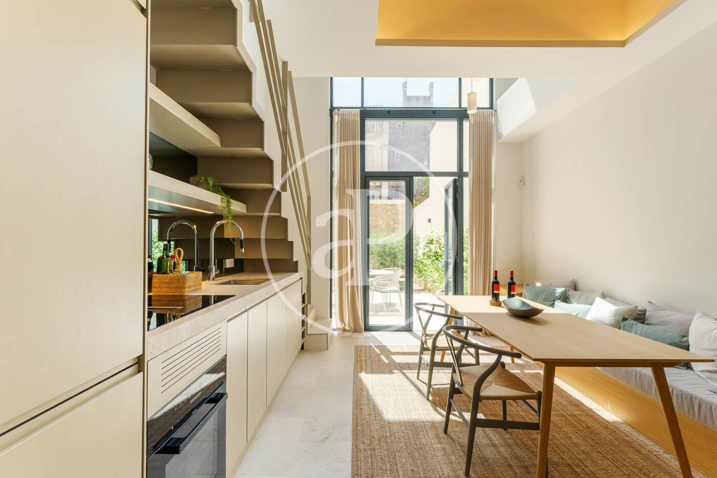 Die Immobilie bietet 138 m² Innenfläche, einen 40 m² großen Privatgarten mit Salzwasserpool, eine 40 m² große Dachterrasse und einen nur 100 m entfernten Privatparkplatz. Der Grundriss wurde sorgfältig durchdacht, um auf drei Ebenen Privatsphäre und Funktionalität zu bieten.
