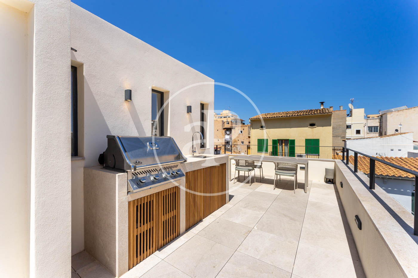 Auf der Dachterrasse finden Sie einen wahren Zufluchtsort in der Stadt. Sie ist über eine Treppe erreichbar und verfügt über einen Chill-out-Bereich, eine Außendusche und einen Blick über die Dächer von Santa Catalina mit einem Blick auf das Meer - der ideale Ort, um Sonnenuntergänge oder ruhige Morgenstunden zu genießen.