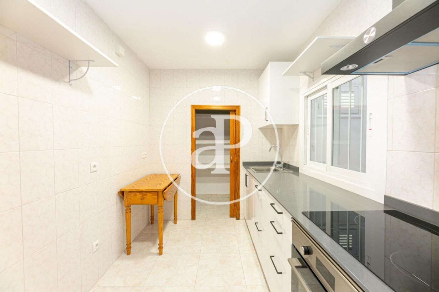 Die Küche ist komplett renoviert und mit Cerankochfeld, Backofen und Dunstabzugshaube ausgestattet. Im Inneren der Küche befindet sich eine große Speisekammer.