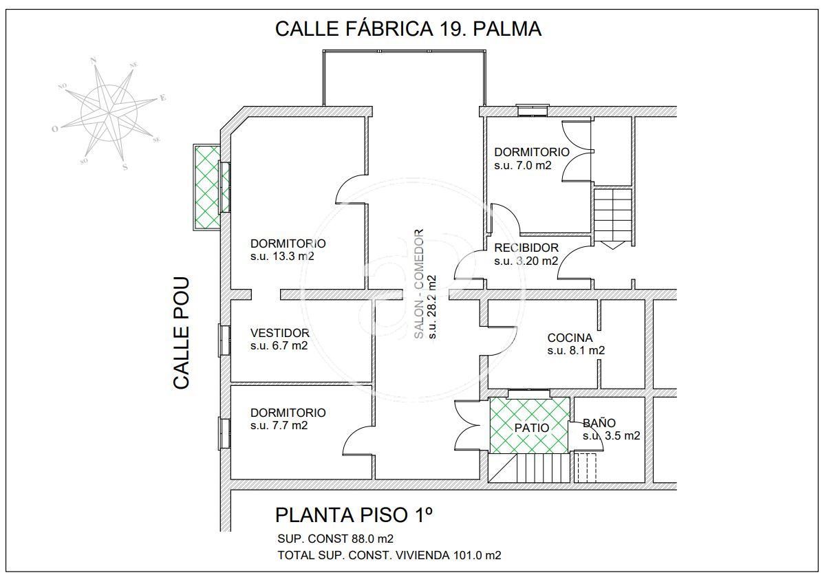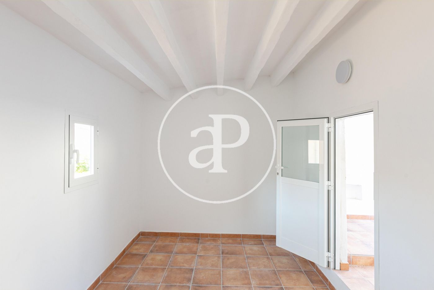 Das Anwesen verfügt über ein komplettes Badezimmer im Freien, in der alten mallorquinischen Stil, mit Zugang von der Tür der Terrasse. Vom Innenhof aus führt eine Treppe in das Obergeschoss, wo sich eine kleine Terrasse und ein großer zusätzlicher Raum mit Möglichkeiten für ein Wohn- und Esszimmer, ein Büro, einen Fitnessraum usw. befinden.