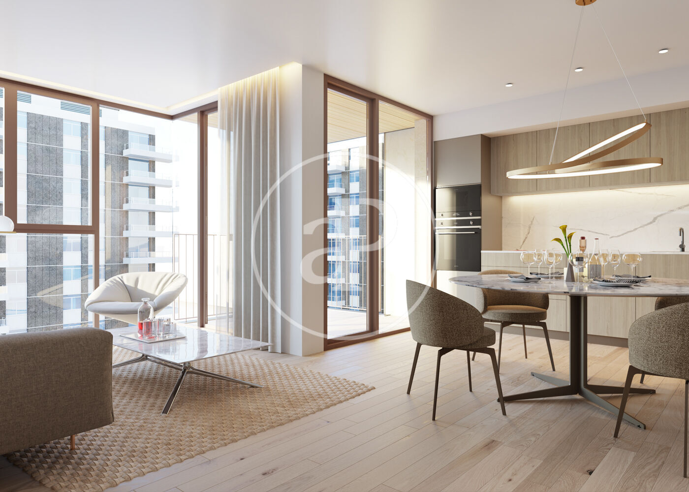 Jede Wohnung ist offen und funktional gestaltet, mit großen Fenstern, die die Räume mit natürlichem Licht durchfluten, und hochwertigen Oberflächen, die in drei Einrichtungsstilen erhältlich sind. Im Erdgeschoss stehen den Bewohnern exklusive Gemeinschaftsbereiche zur Verfügung, darunter ein angelegter Garten, ein Gemeinschaftsschwimmbad und ein voll ausgestatteter Fitnessraum, die eine ruhige Umgebung im Herzen der Stadt schaffen. Darüber hinaus verfügt das Gebäude über ausreichend Parkmöglichkeiten, eine sehr geschätzte Annehmlichkeit in dieser zentralen Lage.
