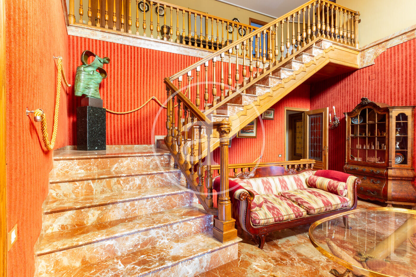 Die Immobilie hat 8 Zimmer, 5 Bäder, Pool, Kamin, 2 Parkplätze, Einbauschränke, Waschküche, Garten, Heizung, Pförtner und Abstellraum.
