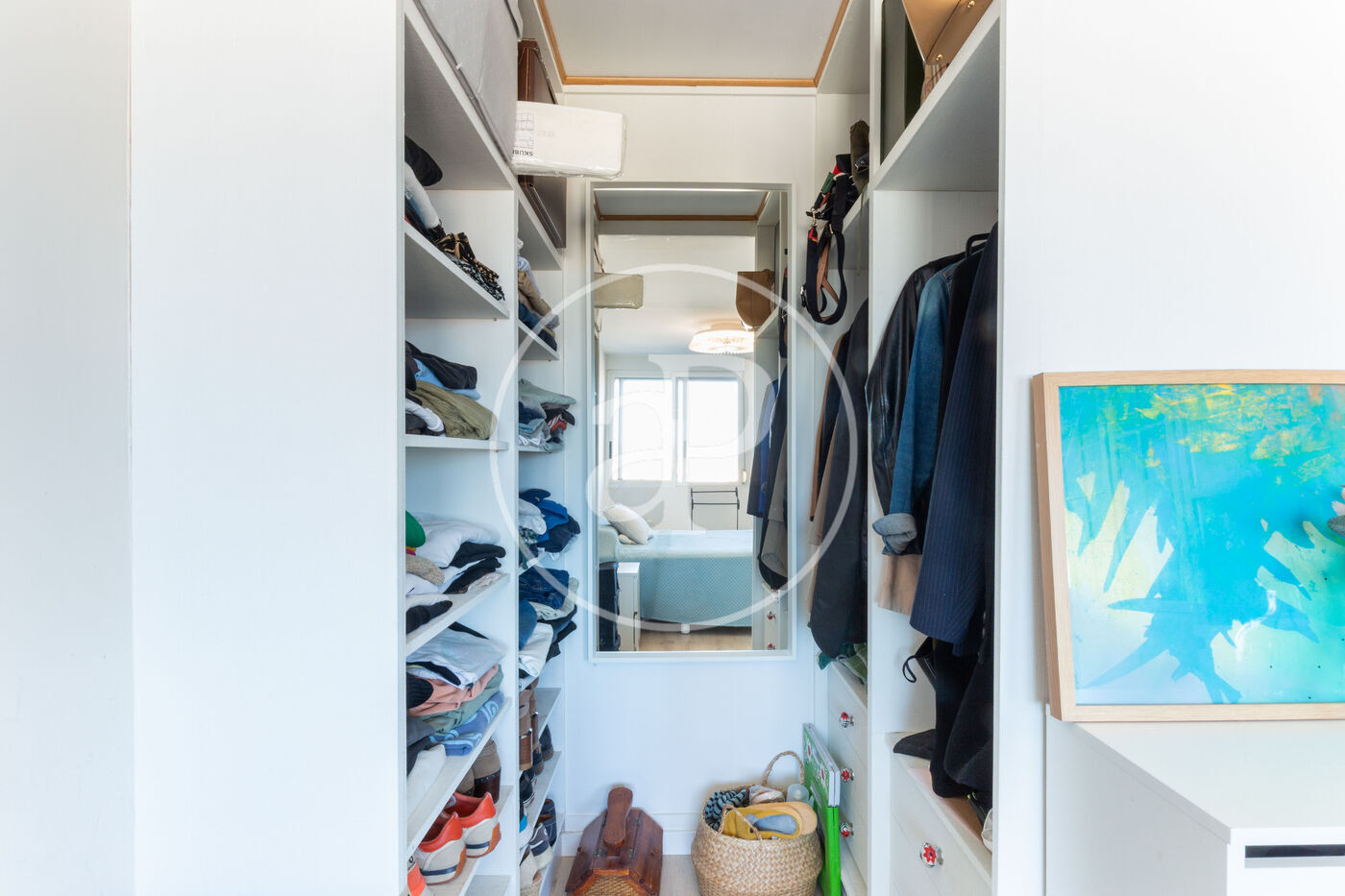 Die Küche ist vollständig renoviert und ausgestattet, mit Belüftung zum Innenhof. Die Wohnung verfügt über ein komplettes Badezimmer mit großzügiger Dusche, ein Einzelzimmer und ein großes Hauptschlafzimmer mit begehbarem Kleiderschrank und Fenster mit Meerblick.