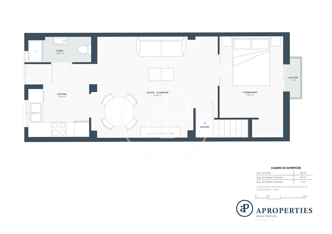 aProperties freut sich, diese Ferienwohnung mit Tourismuslizenz und einer Fläche von 38,55 m² laut Kataster im Stadtteil Zaidía zu präsentieren. Eine ideale Option sowohl als rentable Investition als auch für diejenigen, die ein funktionales Zuhause suchen. Mit einem gemütlichen Design, das Komfort und Funktionalität vereint, verteilt sich der Raum auf ein Wohnzimmer mit integrierter Küche, zwei Schlafzimmer und ein komplettes Badezimmer – und bietet höchsten Wohnkomfort in einer ruhigen und gut angebundenen Umgebung. In strategisch günstiger Lage ermöglicht diese Wohnung, die Ruhe abseits des Stadtzentrums zu genießen, ohne auf eine hervorragende Anbindung an die wichtigsten Punkte der Stadt zu verzichten. Nur wenige Gehminuten von der Straßenbahn entfernt und mit schnellem Zugang zu den Hauptverkehrswegen verbindet diese Immobilie Praktikabilität und Lebensqualität perfekt. Zu den Ausstattungsmerkmalen gehören Keramikböden in Parkettoptik, hochwertige Fenster und sorgfältig ausgewählte Designermöbel. Die Immobilie wird vollständig bezugsfertig übergeben – ideal zum Einziehen oder zur sofortigen Vermietung. Gelegen in einem etablierten Viertel mit allen Annehmlichkeiten in der Nähe —Geschäfte, öffentliche Verkehrsmittel, Grünflächen und mehr— ist dies eine außergewöhnliche Gelegenheit für alle, die Stil, Komfort und eine hervorragende Anbindung in der ganzen Stadt schätzen. Wenn Sie an dieser Immobilie interessiert sind, zögern Sie nicht, uns für weitere Informationen oder zur Vereinbarung eines Besichtigungstermins zu kontaktieren.
