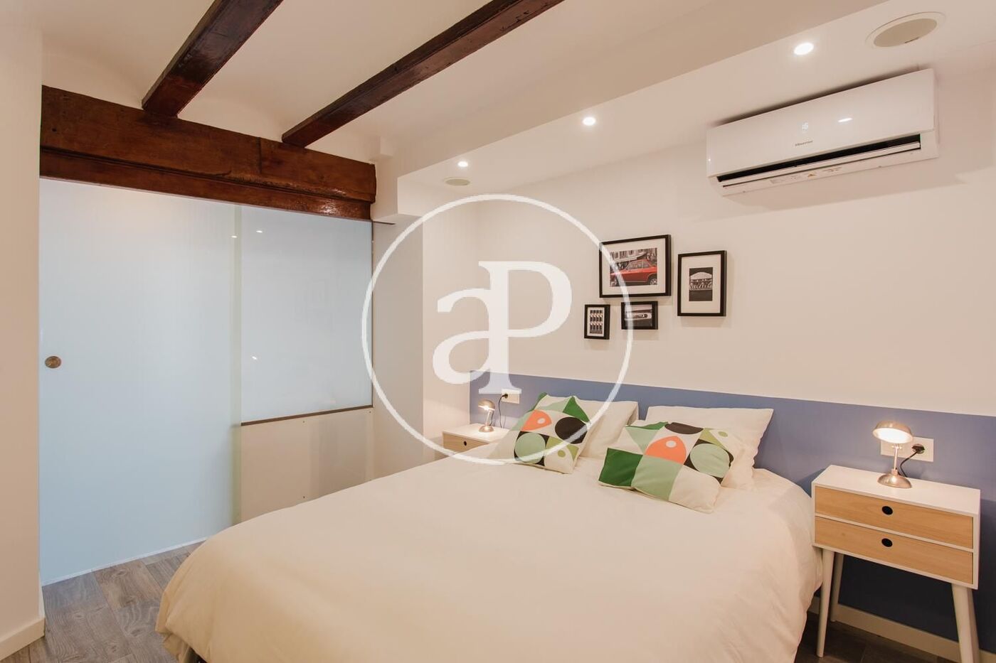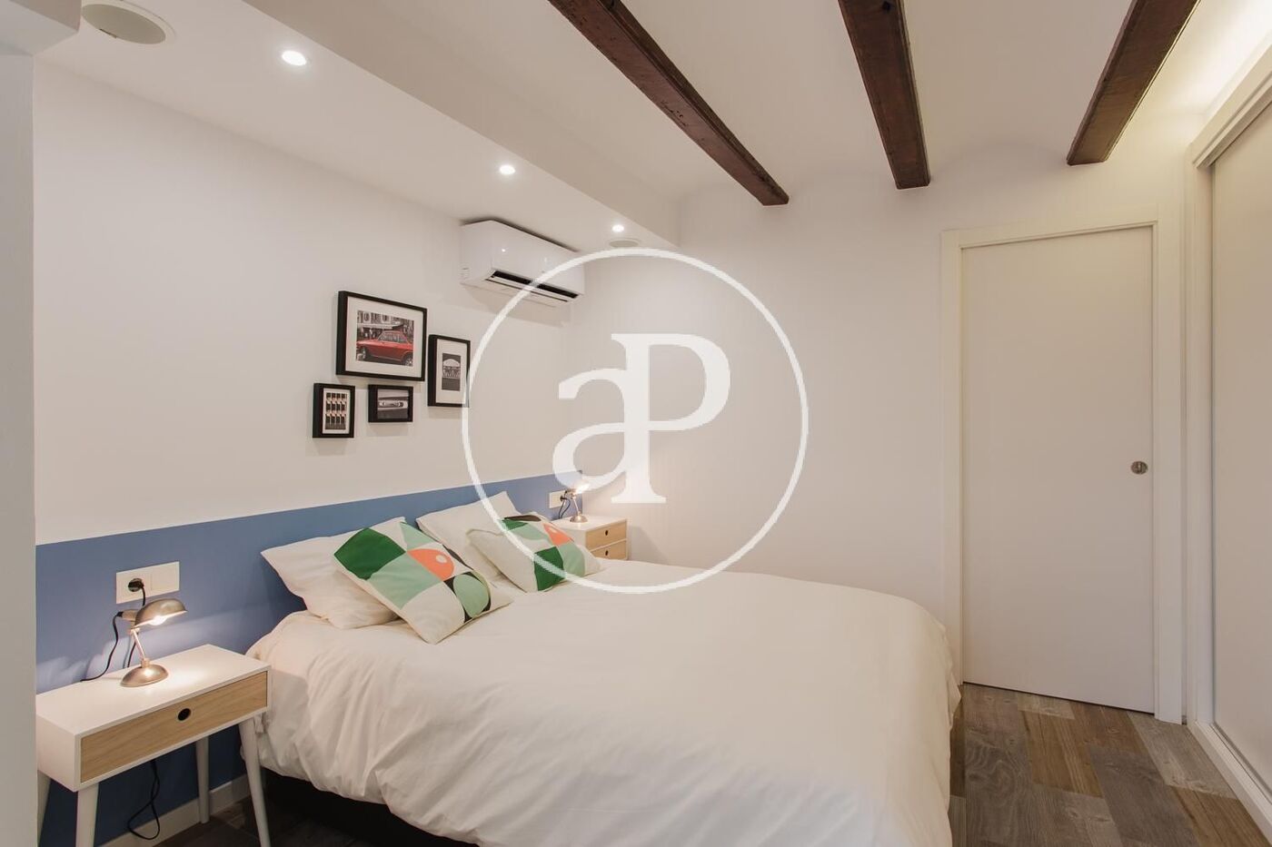 Zimmer, 1 Badezimmer, Klimaanlage, Einbauschränke, Balkon und Heizung.