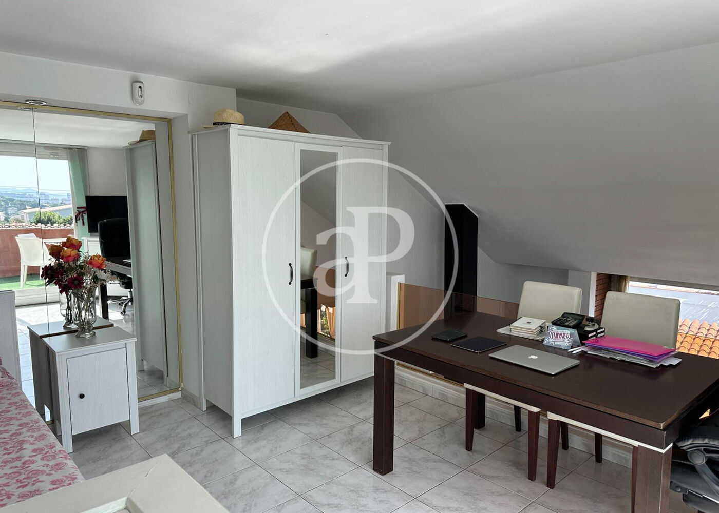 La planta superior alberga un espacio multifuncional con salida a una terraza panorámica, ideal para relajarse contemplando el mar y Barcelona.