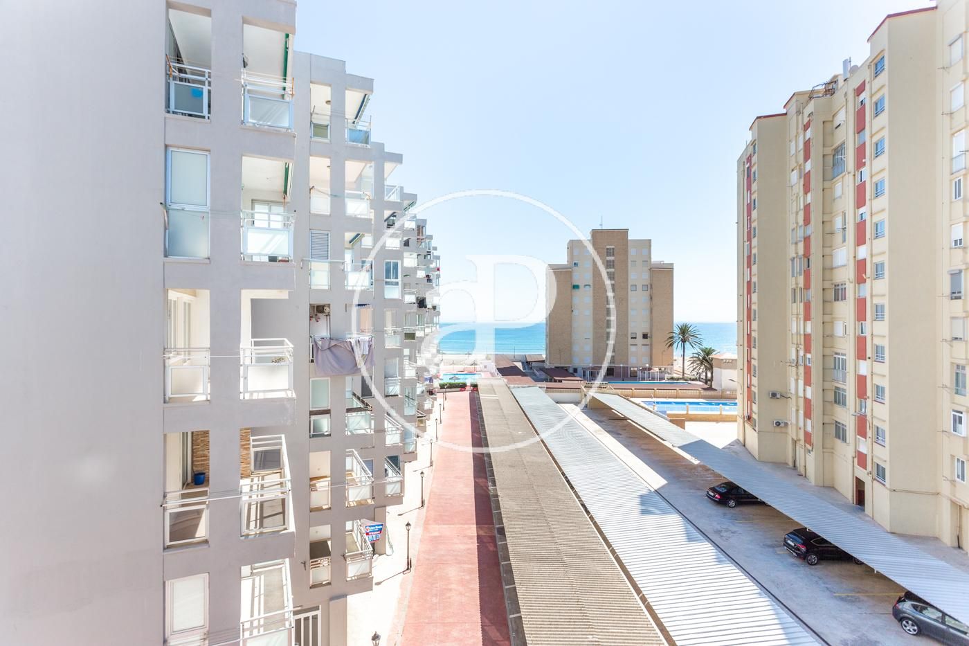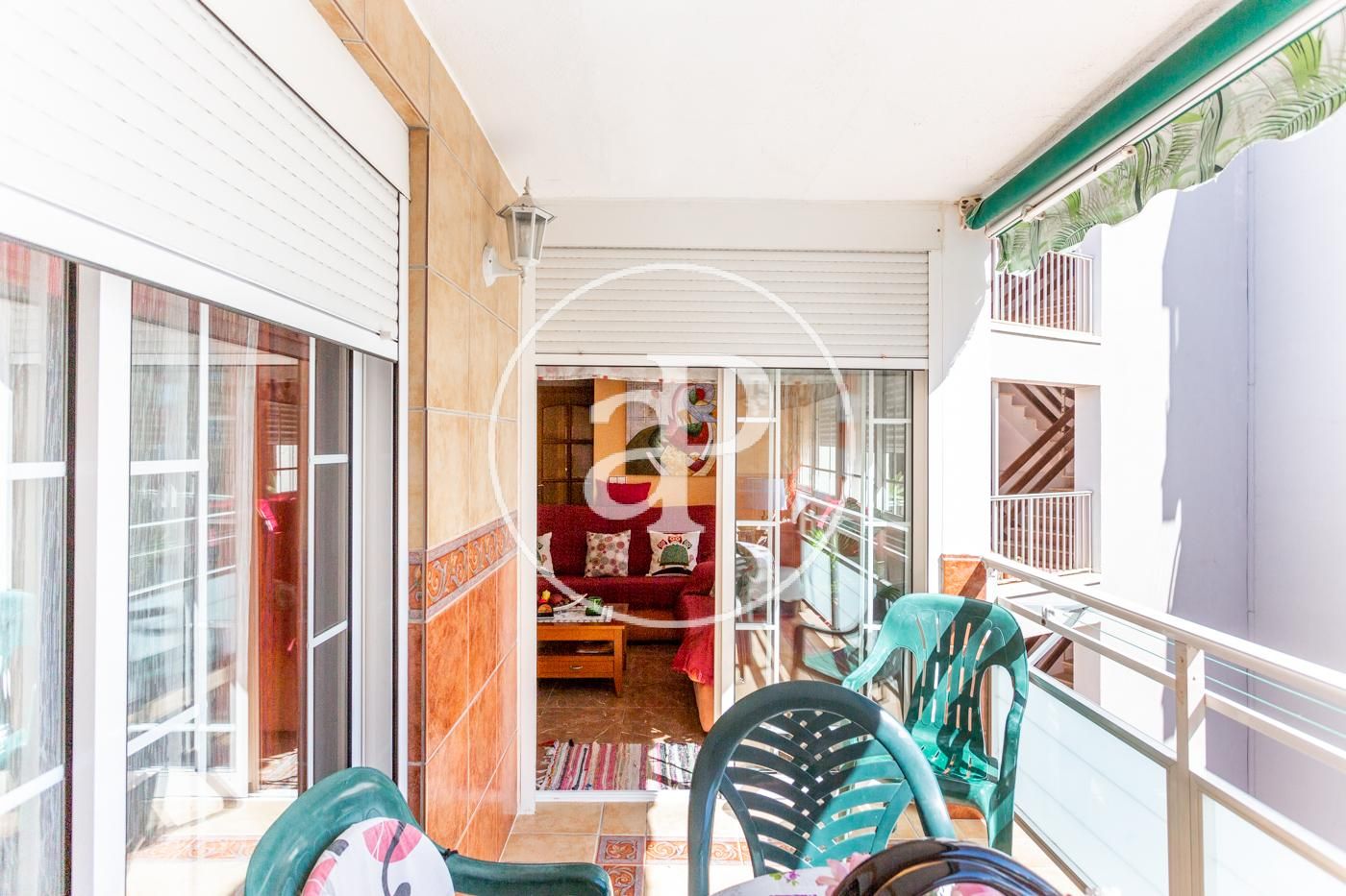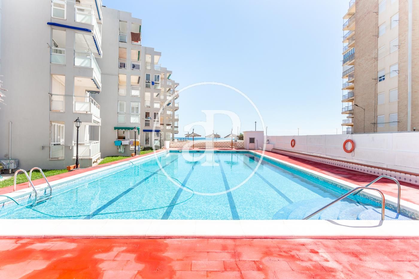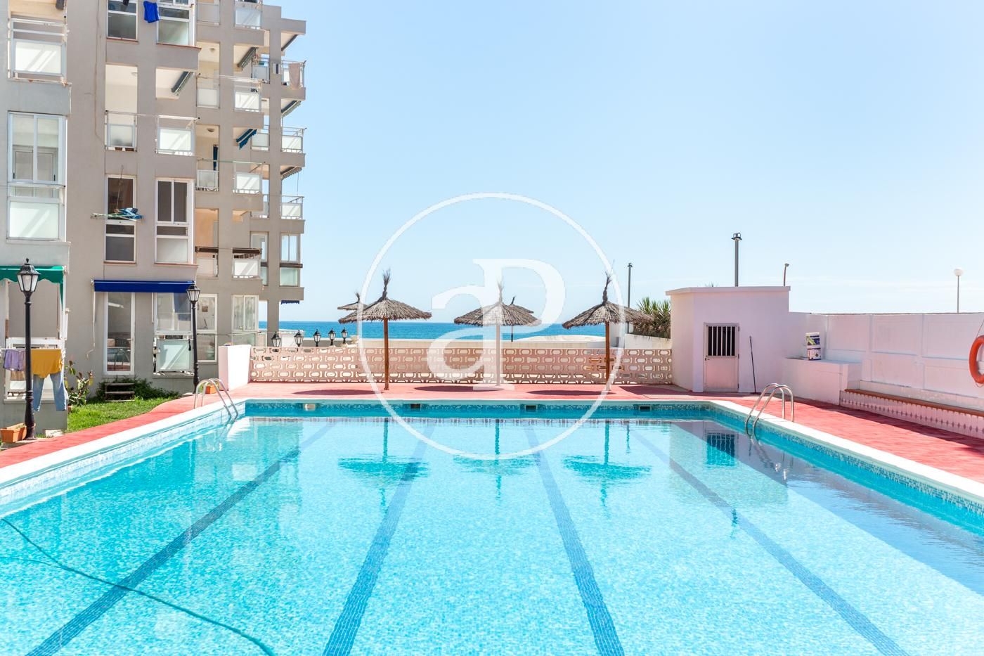 Ubicado en residencial con piscina y cuenta con plaza de garaje. Cuenta también con club social y bar dentro del recinto cerrado y tiene salida directa a la playa.