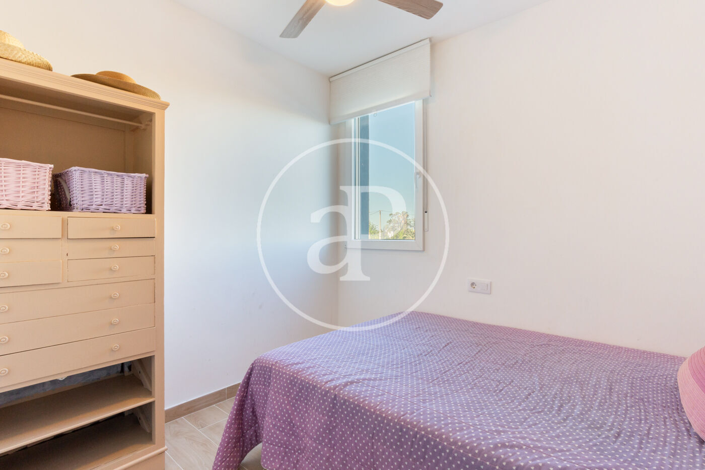 Este magnífico apartamento se encuentra en primera línea de playa, permitiéndole disfrutar del sonido de las olas y las brisas marinas en todo momento. Además, está a solo 5 minutos a pie del pintoresco pueblo del Perelló, donde encontrará tiendas, restaurantes y todo lo que necesite. El transporte público se encuentra a solo 50 metros de distancia, facilitando tus desplazamientos a Valencia y otras zonas cercanas.