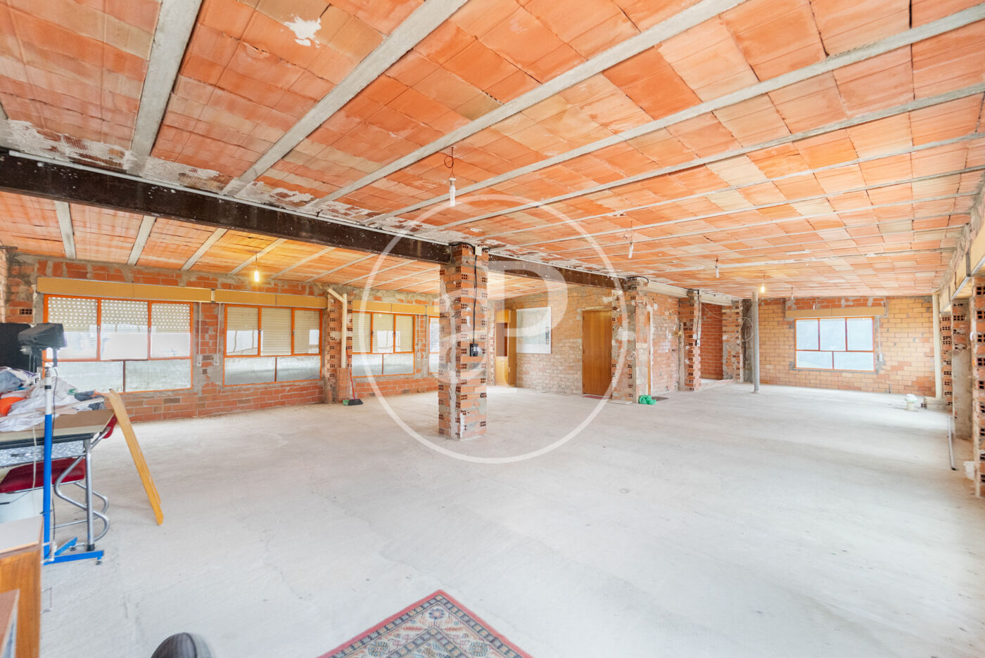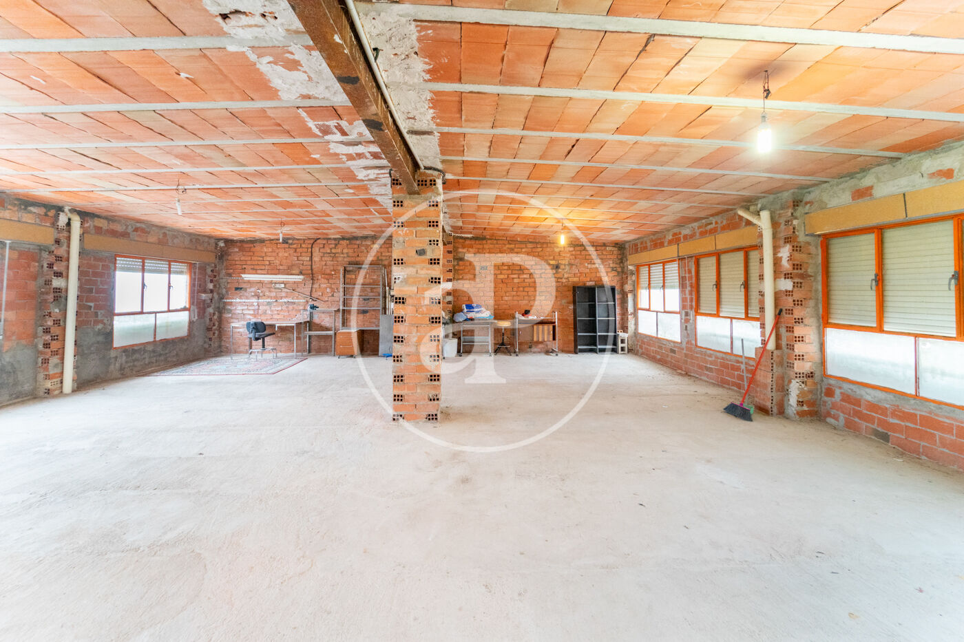 The property currently features one finished floor with five bedrooms and two bathrooms, with spacious rooms notable for their brightness and redistribution possibilities. Built in 1975 and in good condition, it includes hot/cold heat pump heating, built-in wardrobes, a storage room, and large areas suitable for conversion into garages or additional complementary spaces.