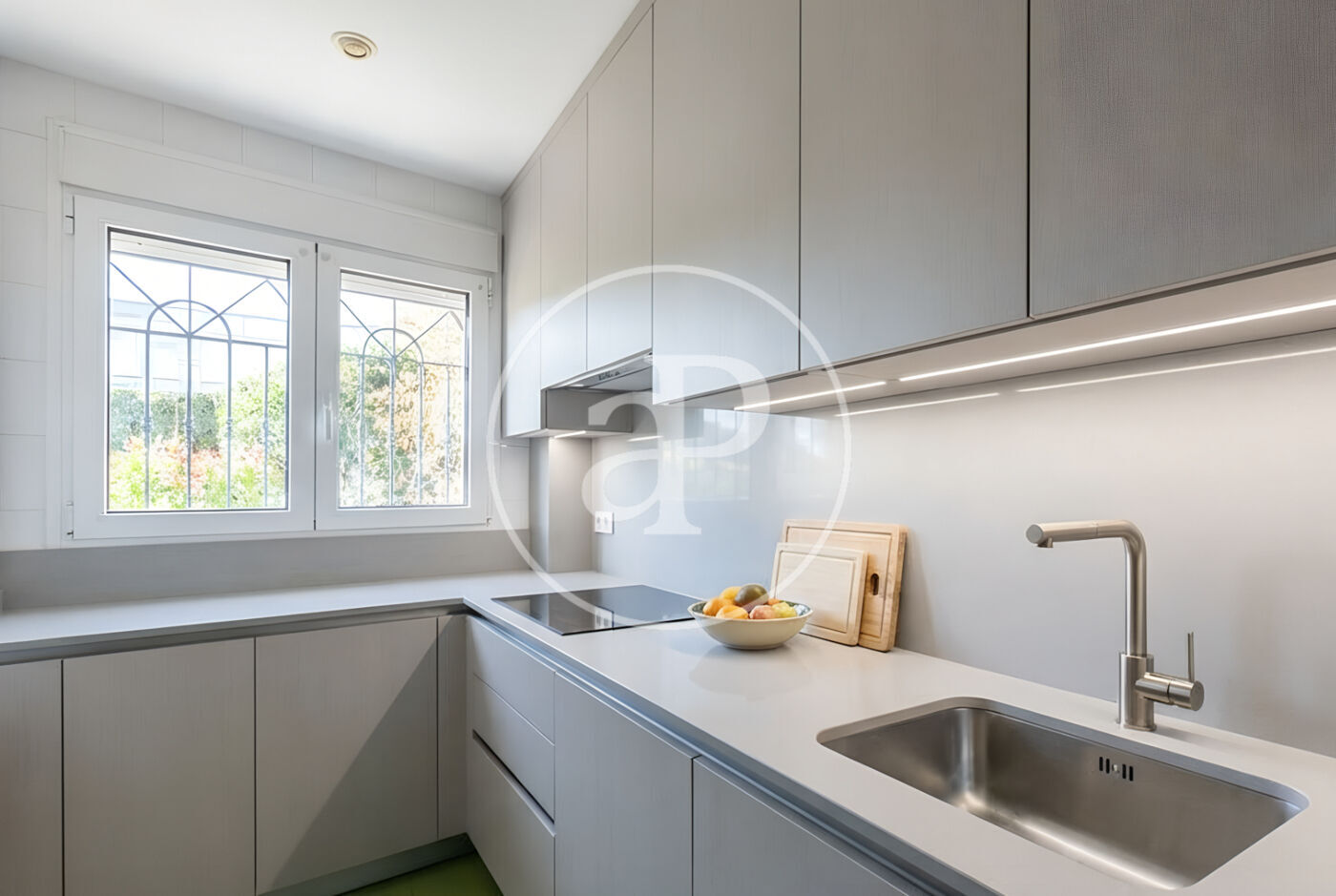From the living room there is direct access to a private garden of approximately 70 m 2, on the same level, with direct access to a park, which provides an extraordinary feeling of privacy, light and connection with nature.