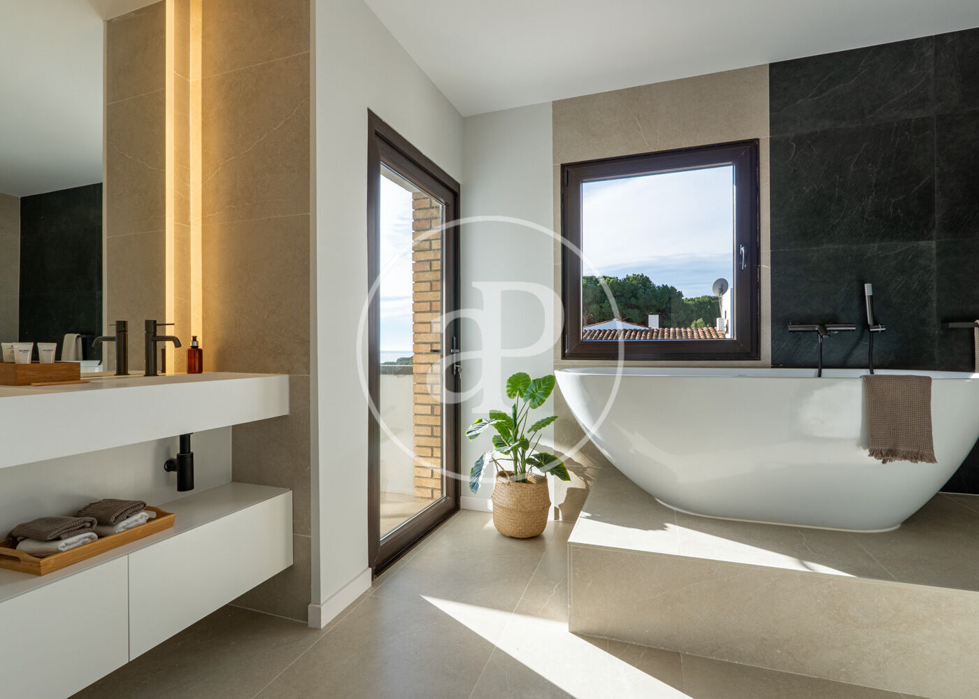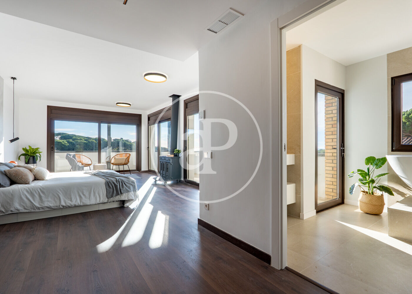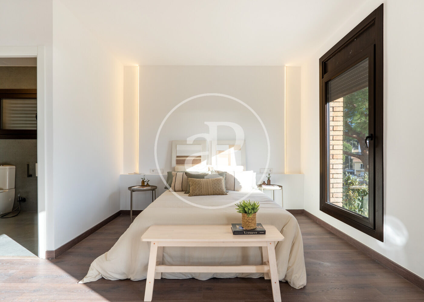 Outside, the private garden becomes a true oasis with an elegant infinity pool, green areas, and an outdoor dining area perfect for enjoying Mediterranean evenings. Covered parking adds extra convenience, and every corner of the house is designed to enjoy the surroundings with privacy and style.