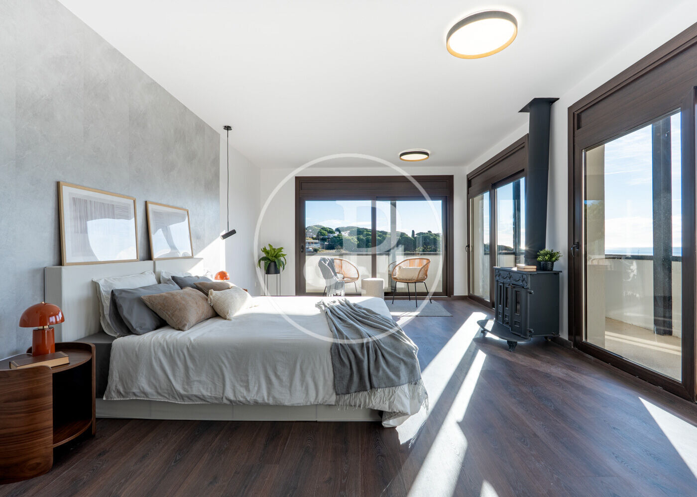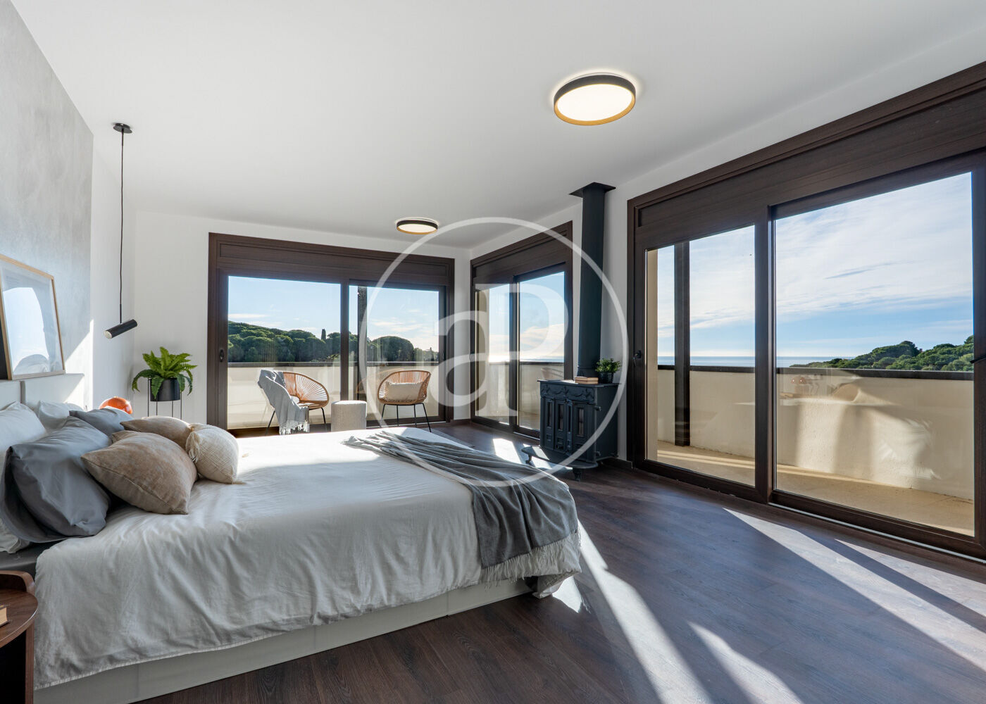 Fully renovated, the house features 4 bedrooms and 4 full bathrooms, including a luxurious master suite with a private terrace and breathtaking sea views. Parquet floors, a fireplace in the living room, and large windows fill the spaces with warmth and natural light.