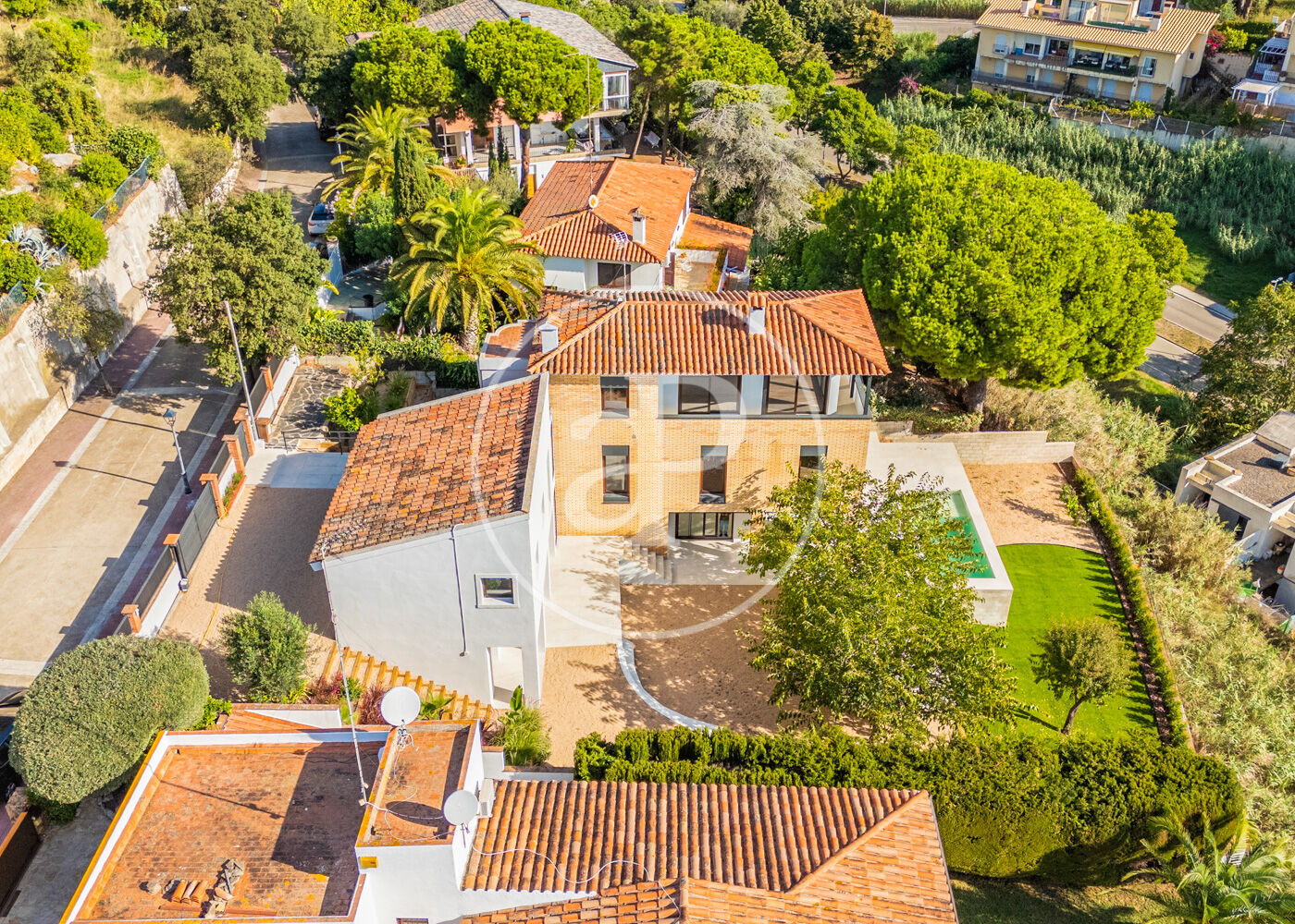 This magnificent single-family residence is located in Sant Andreu de Llavaneres, in a mountainous area. It has seven bedrooms, six bathrooms, a charming swimming pool, a horse-riding track and an impressive garden with lush vegetation and panoramic sea views.  The property covers an extensive plot of 7,000m2, comprising four buildings with a total surface area of approximately 785m2. These structures include the main residence, a secondary house for masseurs or guests, stables and a changing area near the swimming pool.  The main residence, with 636m2 distributed over three levels, is characterised by its luminosity as it is completely exterior and its elevated position on a gentle slope which gives it a privileged view. Numerous terraces offer views of the sea, the exquisite garden and the swimming pool. On the main floor, a spacious kitchen with office area, equipped with a large stainless steel worktop with six hobs and griddle, next to a large living-dining room of approximately 80m2 with fireplace and abundant natural light in both rooms, ideal for family and social gatherings. The house has seven bedrooms, including a ground floor suite with living room and elevated balcony, a single bedroom and two double bedrooms with shared bathroom. Upstairs, a master suite and a second attic suite share a second fireplace on the landing. In addition, there is a large laundry area, including a maid's room with sitting area and bathroom. In the basement, there is a garage with capacity for two vehicles, an extensive pantry and a complete kitchen with access to the garden and swimming pool.  The secondary house, with approximately 95m2, intended for masoveros or guests, is a cosy two-bedroom flat with a bathroom and a living-dining room with access to a terrace at garden level. It also has an additional room with a separate entrance for various uses and a second spacious bathroom.  Furthermore, there are some old stables, currently in disuse, but adaptable as a cinema room, event space, gymnasium or games room.  Finally, there is a study room and changing rooms of approximately 55m2 for the use and enjoyment of bathers.  Built in 1945, this property is located in a serene area and, at the same time, just 3 minutes drive from the centre of the village.