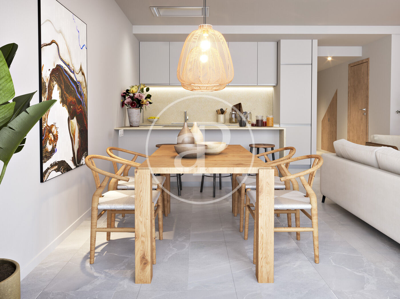 Open-plan, bright living-dining area
