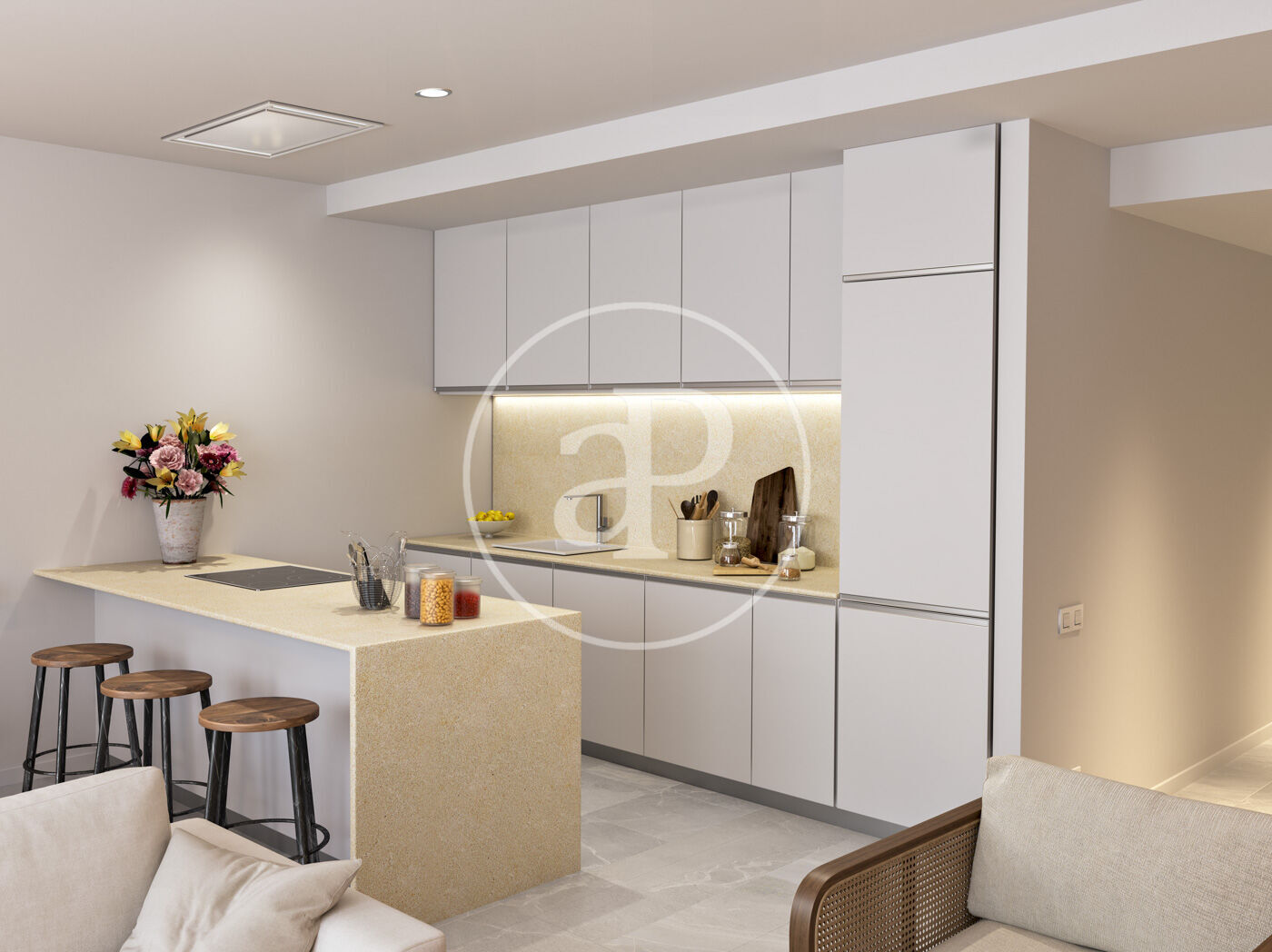 Fully equipped kitchen with Siemens appliances (oven, induction hob and extractor hood)