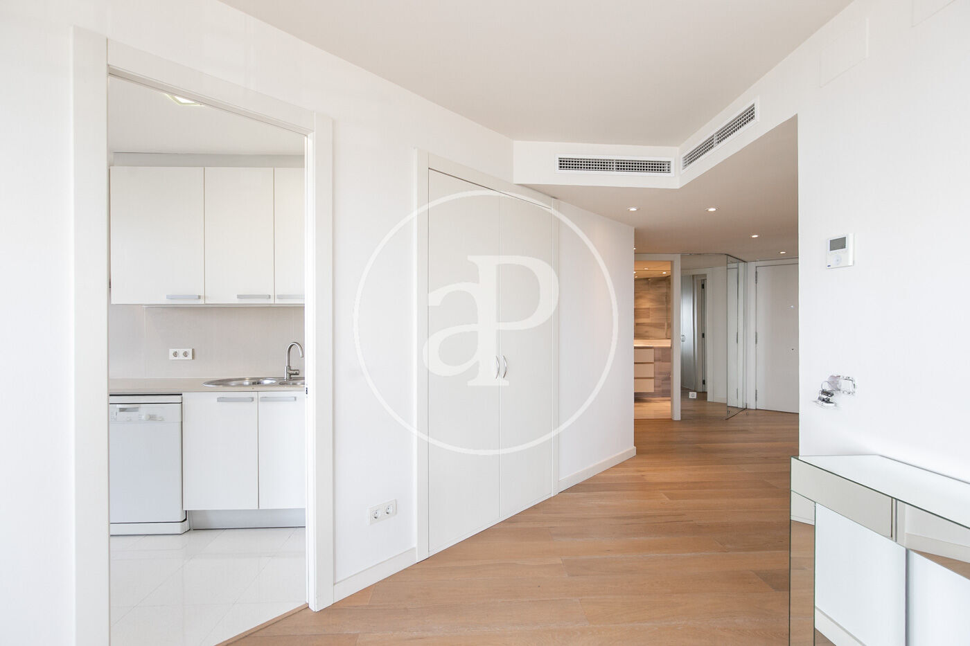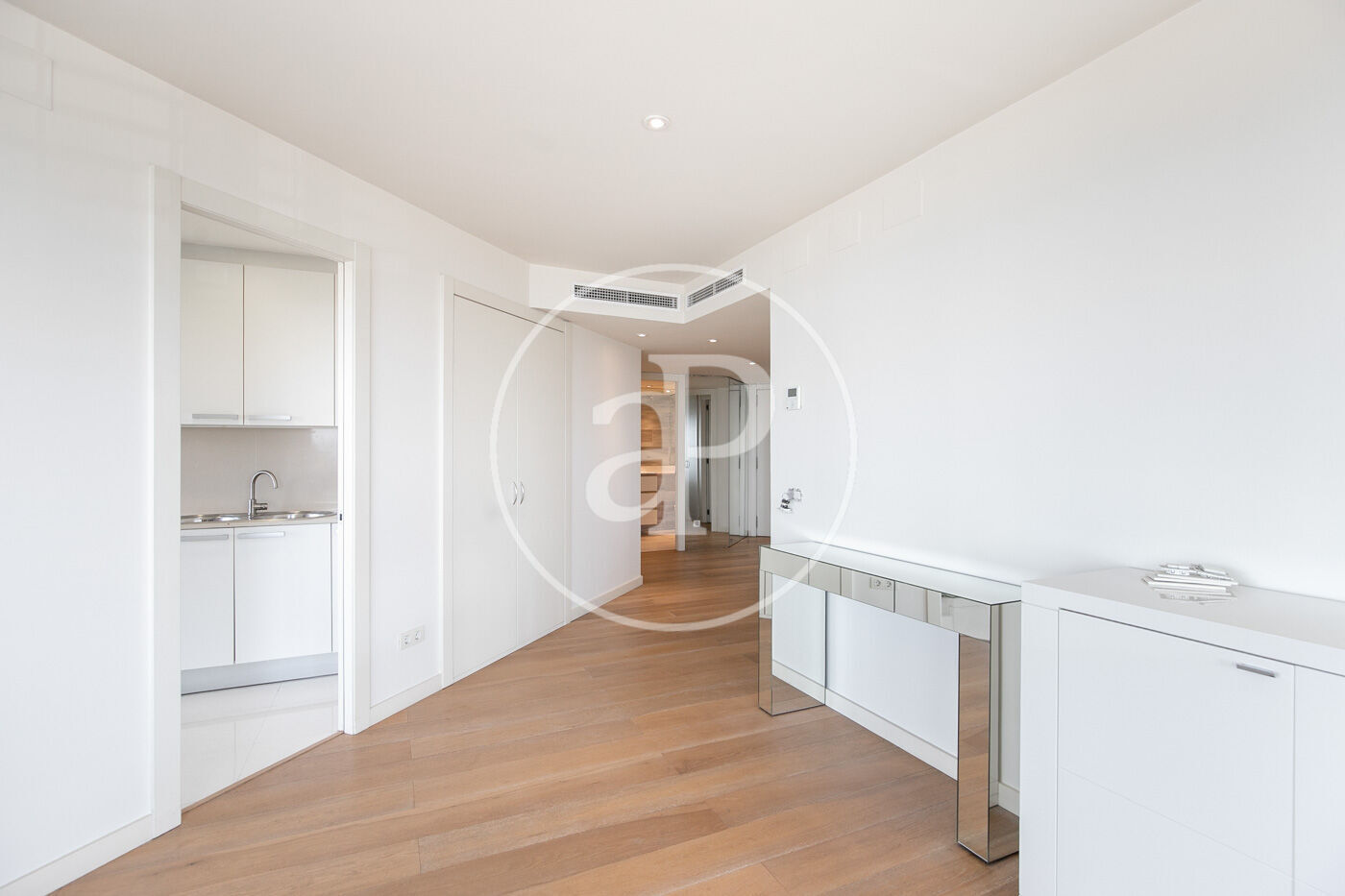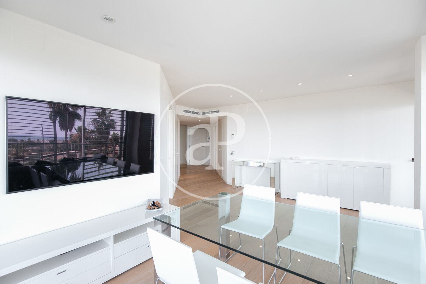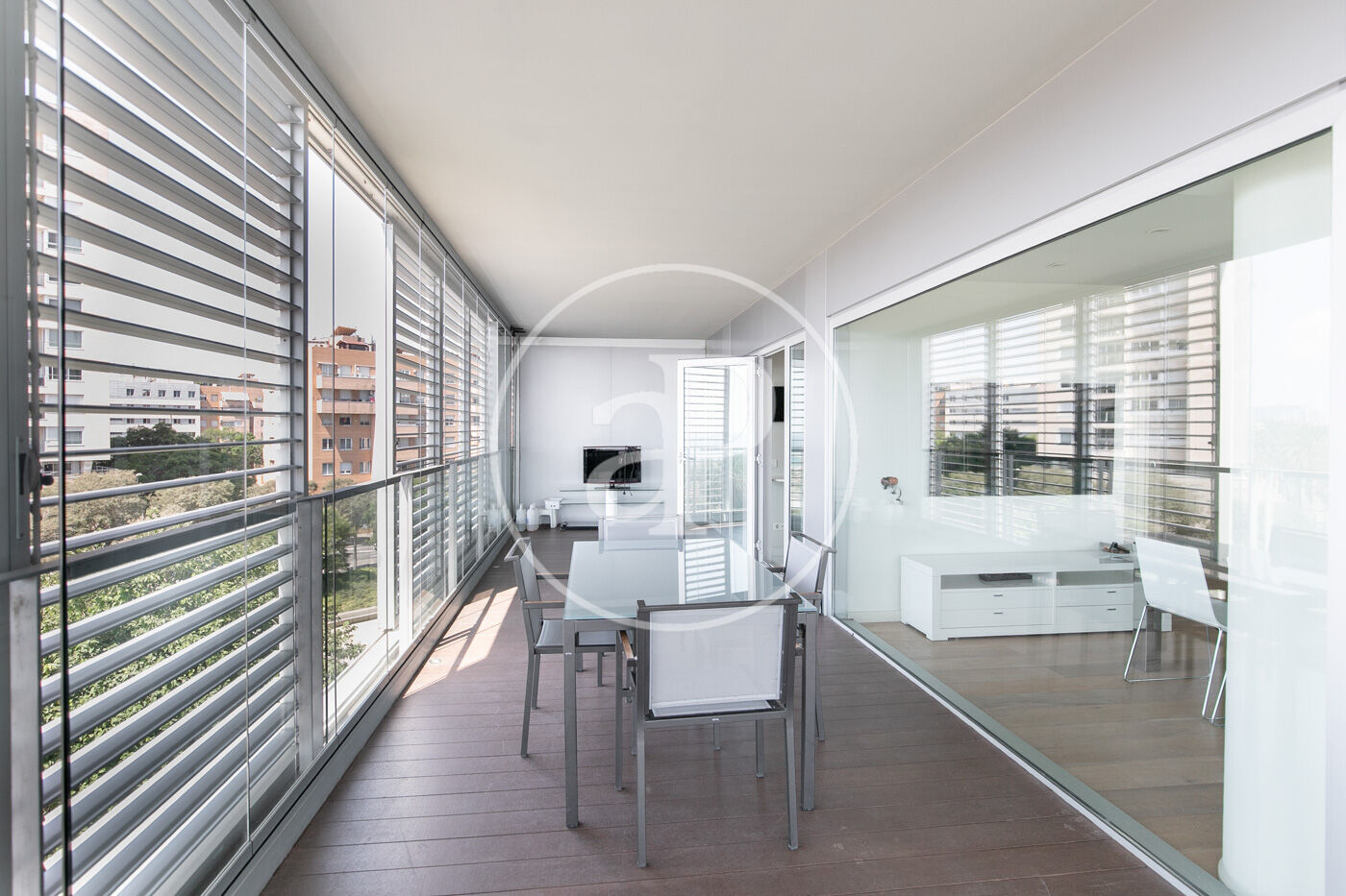 In the prestigious Illa de la Llum building, winner of a FAD architecture award, we find this spectacular renovated apartment in impeccable condition, fully furnished, with a glazed terrace offering sea views from every room.